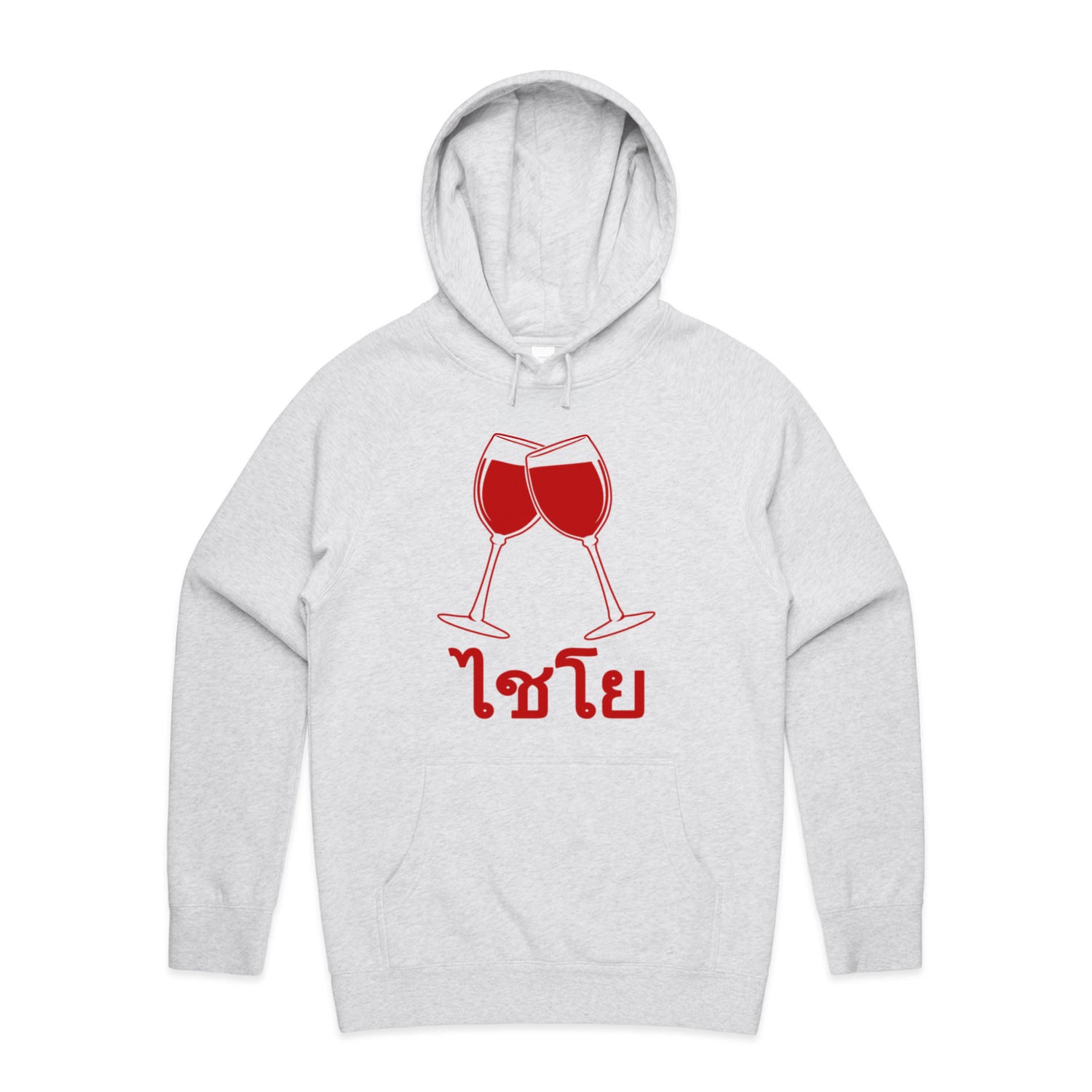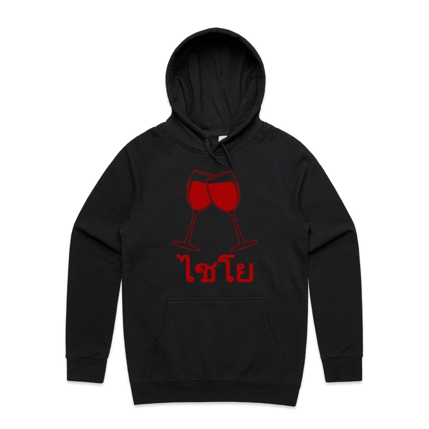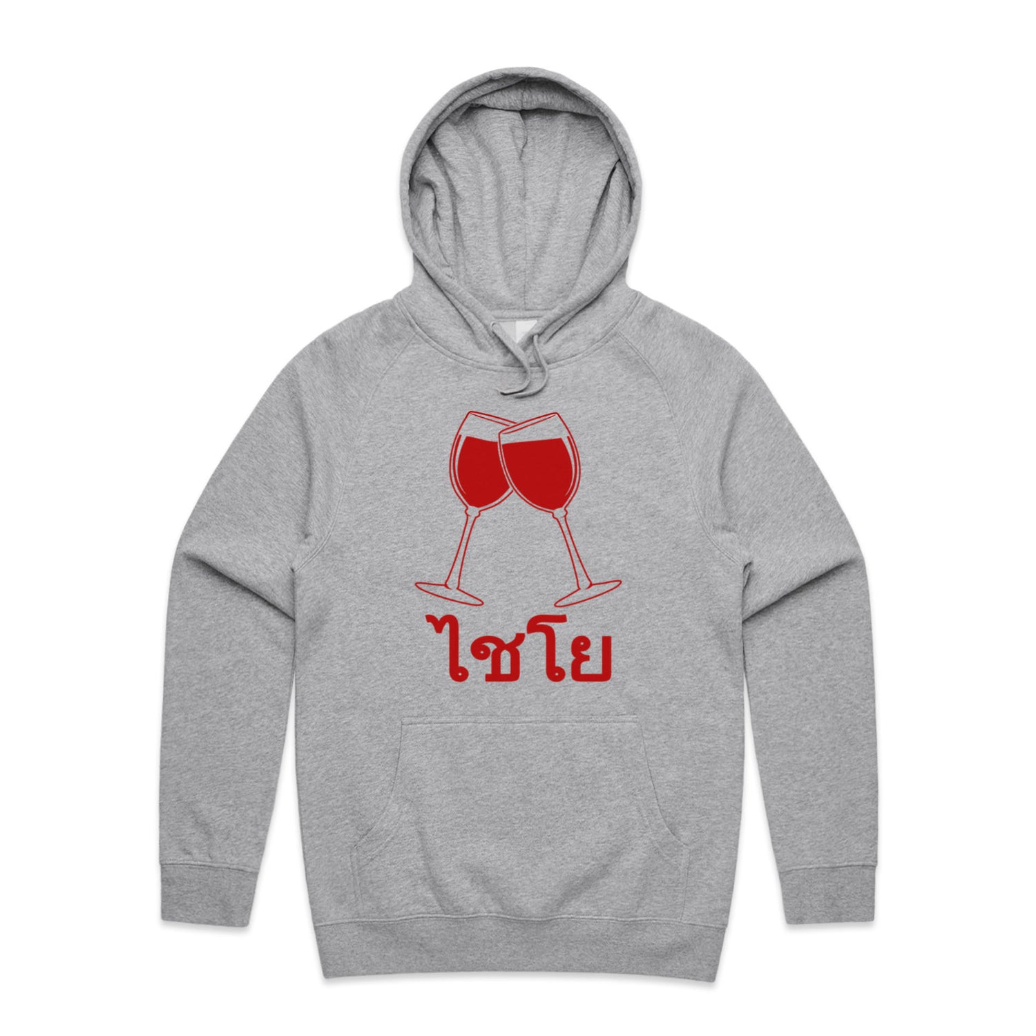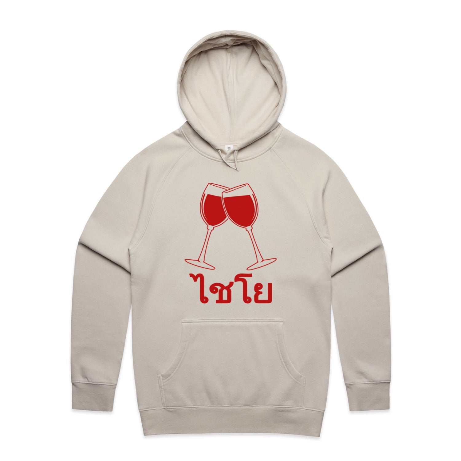 The Hoodies Wine Glass Thai Cheers – Men's Hooded Sweatshirt is a high-quality men's hooded sweatshirt, printed with red ink on the trusted AS Colour Supply Hood 5101. With a regular fit and mid-weight feel, it's crafted from a premium blend of 80% cotton and 20% polyester anti-pill fleece, making it a durable and comfortable staple for any wardrobe. The pullover design features raglan sleeves, a lined hood with tonal drawcord, ribbed sleeve cuffs, and a roomy kangaroo pocket — all designed to keep you warm while looking effortlessly sharp.