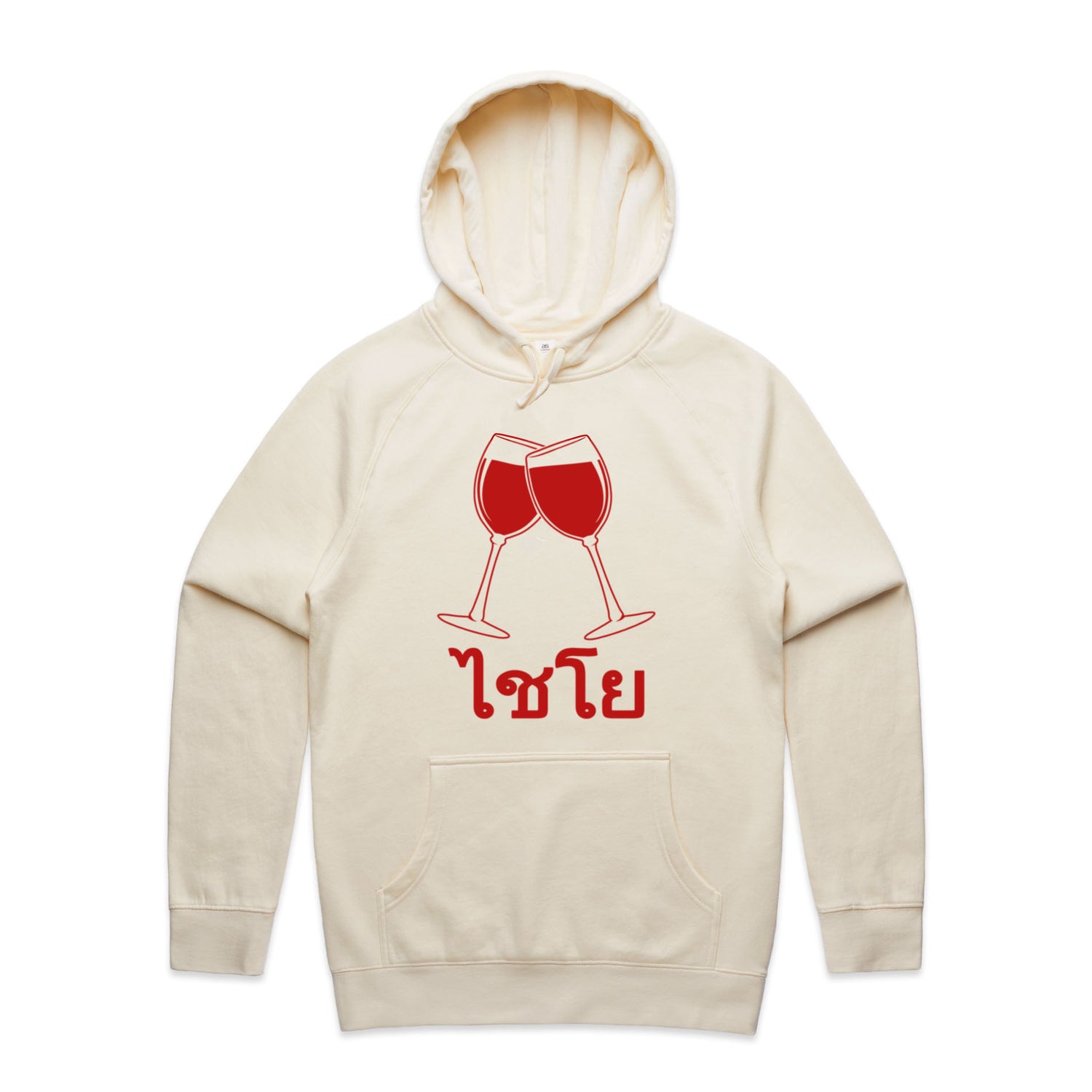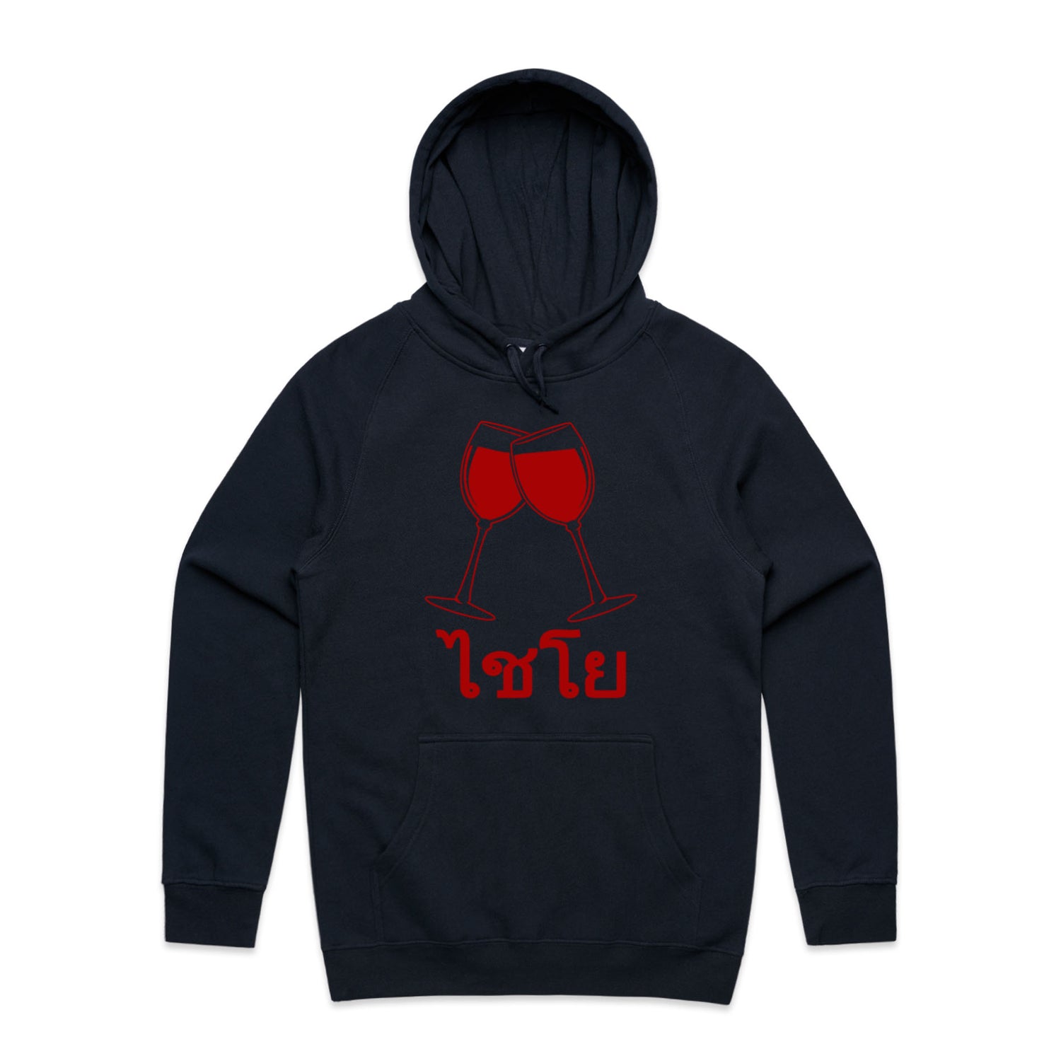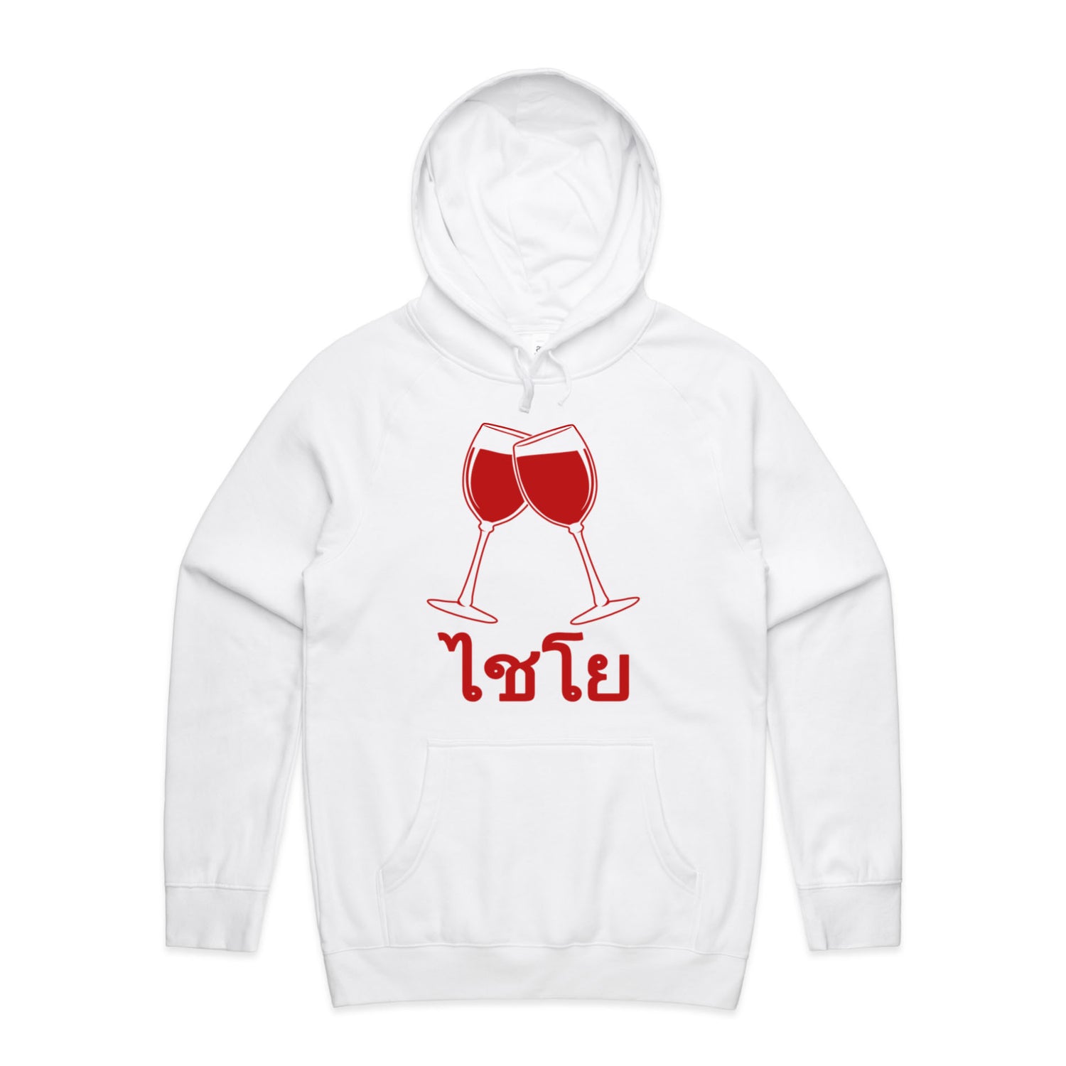 The Hoodies Wine Glass Thai Cheers – Men's Hooded Sweatshirt is a high-quality men's hooded sweatshirt, printed with red ink on the trusted AS Colour Supply Hood 5101. With a regular fit and mid-weight feel, it's crafted from a premium blend of 80% cotton and 20% polyester anti-pill fleece, making it a durable and comfortable staple for any wardrobe. The pullover design features raglan sleeves, a lined hood with tonal drawcord, ribbed sleeve cuffs, and a roomy kangaroo pocket — all designed to keep you warm while looking effortlessly sharp.