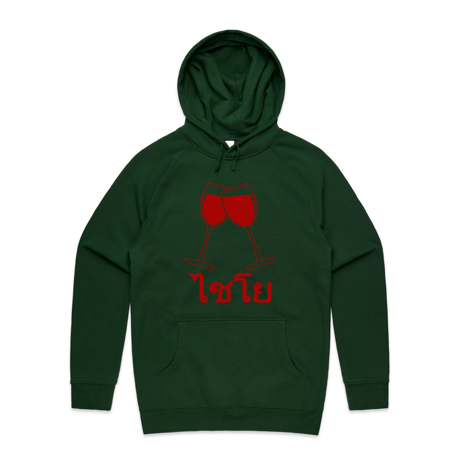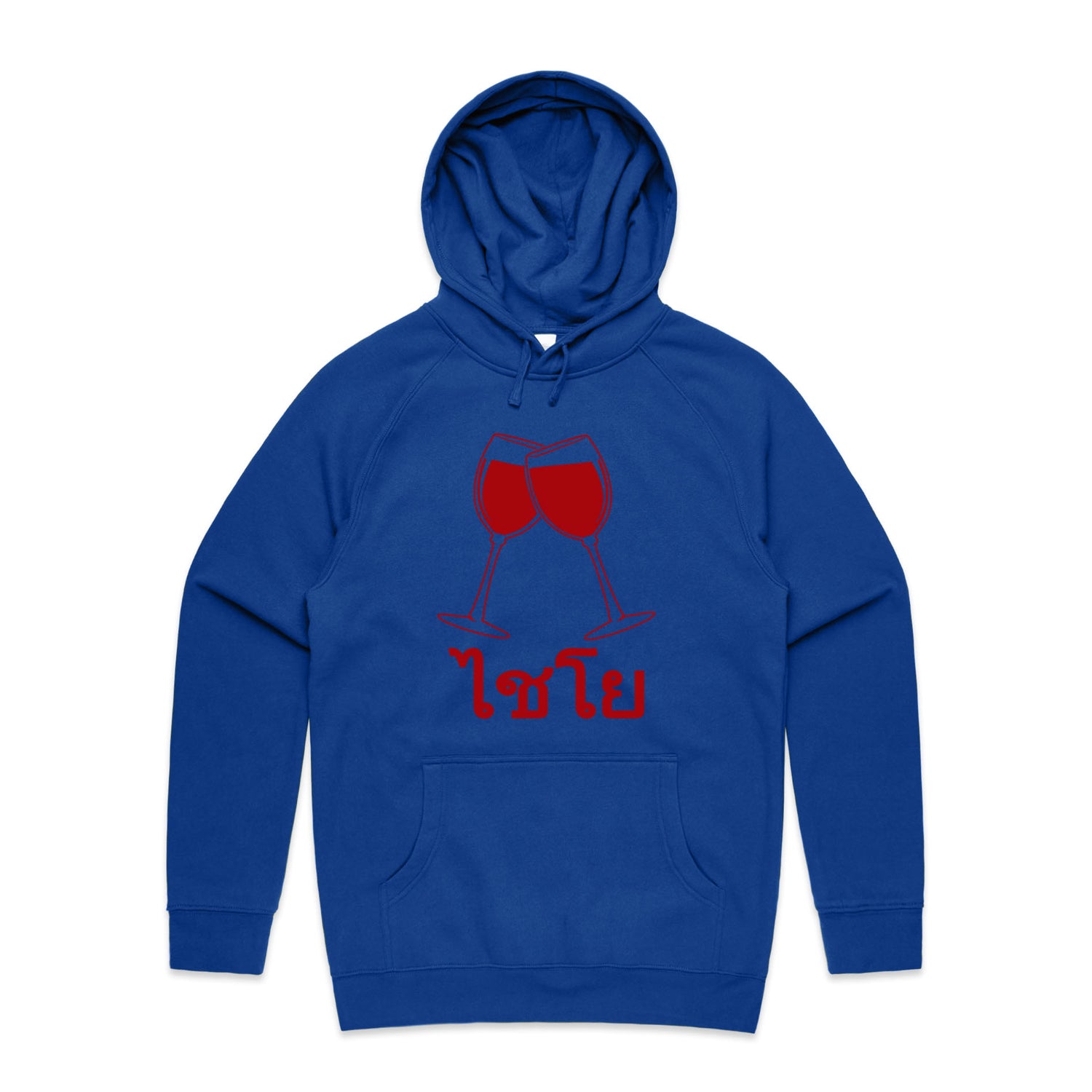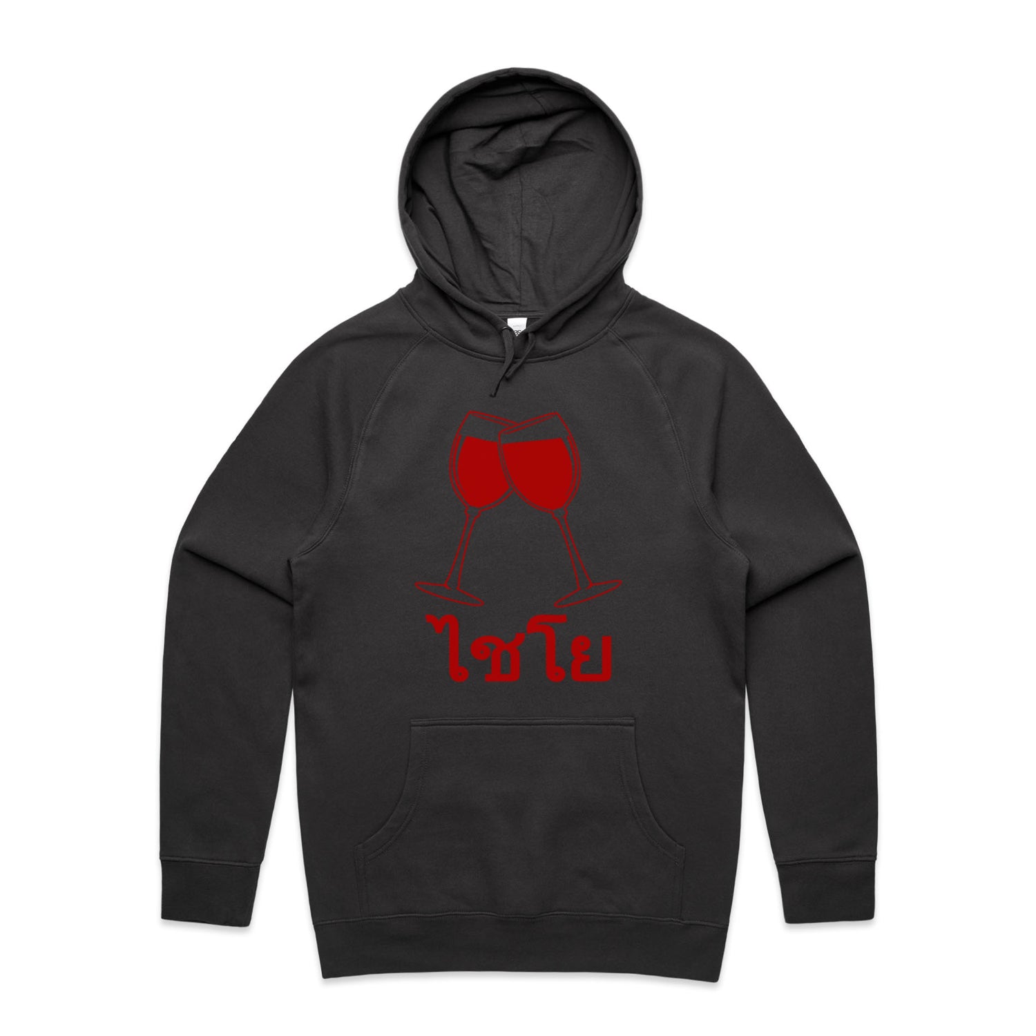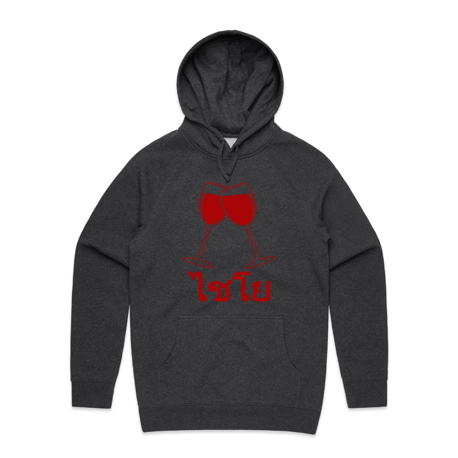 The Hoodies Wine Glass Thai Cheers – Men's Hooded Sweatshirt is a high-quality men's hooded sweatshirt, printed with red ink on the trusted AS Colour Supply Hood 5101. With a regular fit and mid-weight feel, it's crafted from a premium blend of 80% cotton and 20% polyester anti-pill fleece, making it a durable and comfortable staple for any wardrobe. The pullover design features raglan sleeves, a lined hood with tonal drawcord, ribbed sleeve cuffs, and a roomy kangaroo pocket — all designed to keep you warm while looking effortlessly sharp.