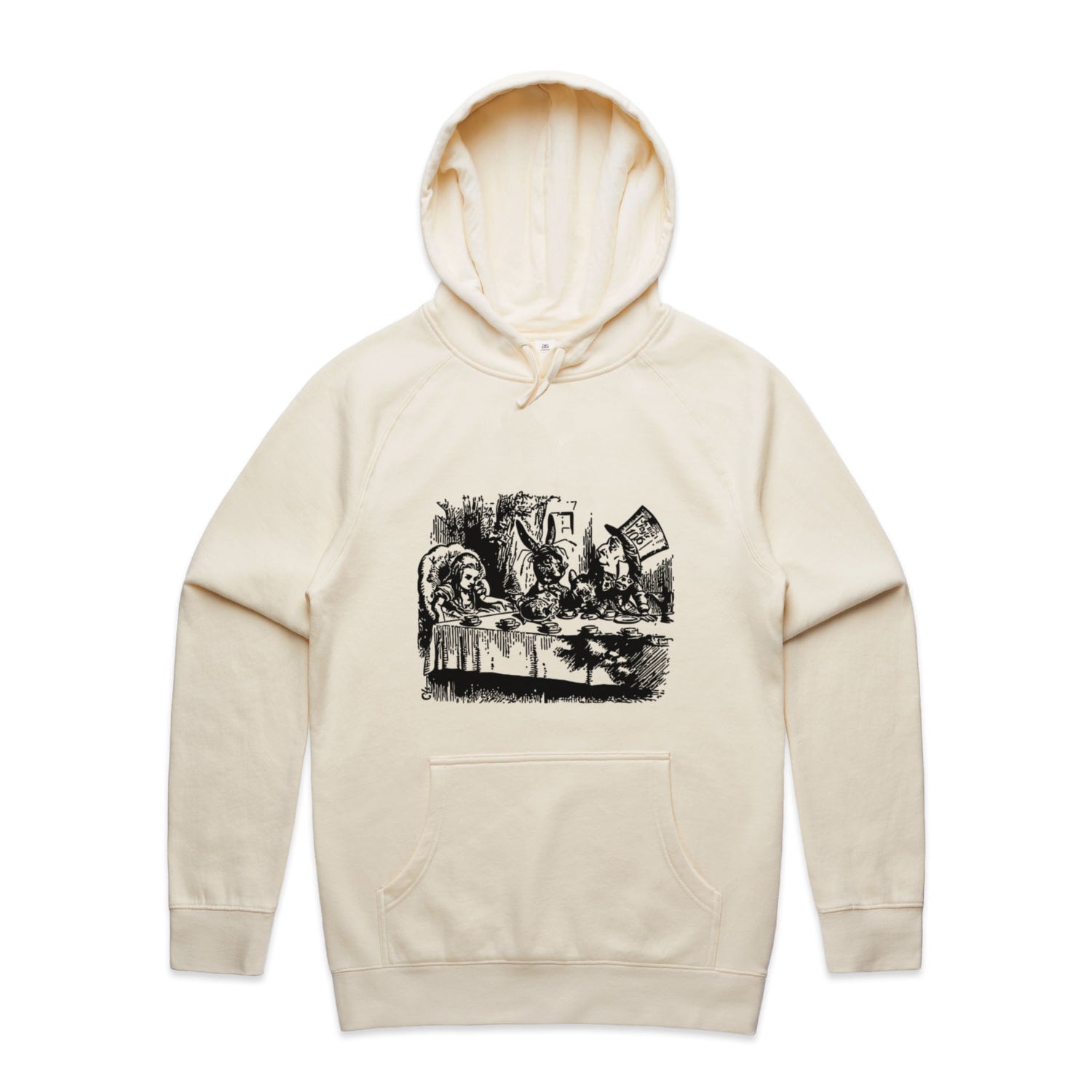The Hoodies Alice in Wonderland – Men's Hooded Sweatshirt is a high-quality men's hooded sweatshirt, printed with black ink on the trusted AS Colour Supply Hood 5101. With a regular fit and mid-weight feel, it's crafted from a premium blend of 80% cotton and 20% polyester anti-pill fleece, making it a durable and comfortable staple for any wardrobe. The pullover design features raglan sleeves, a lined hood with tonal drawcord, ribbed sleeve cuffs, and a roomy kangaroo pocket — all designed to keep you warm while looking effortlessly sharp.