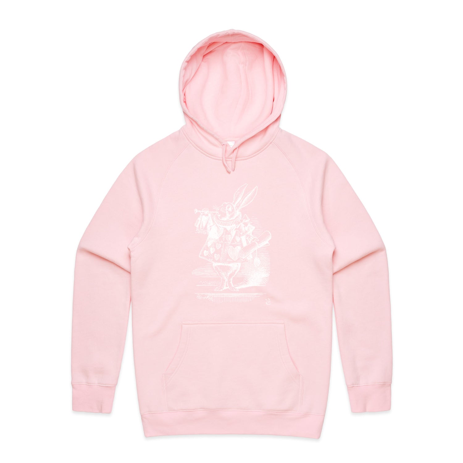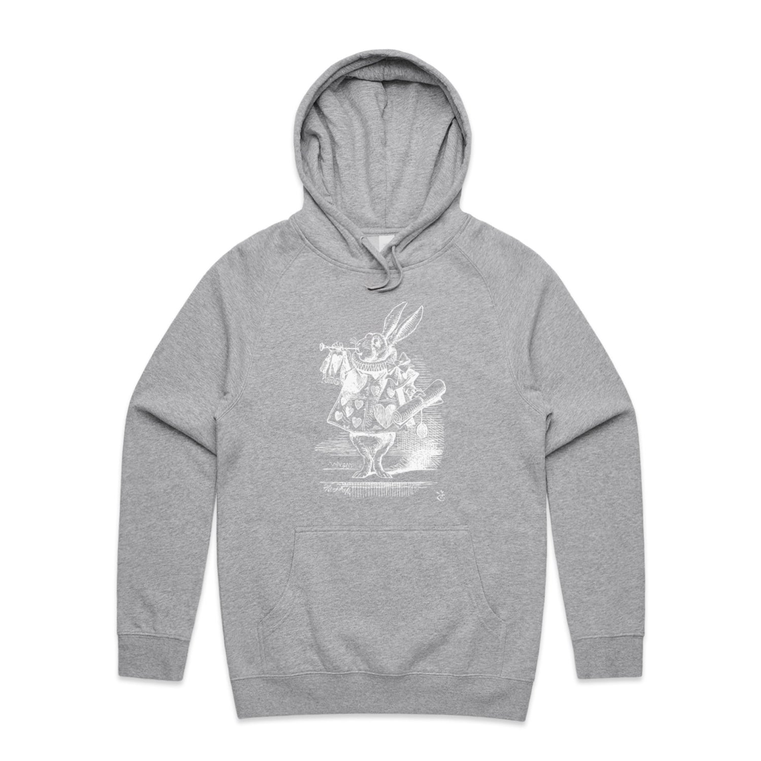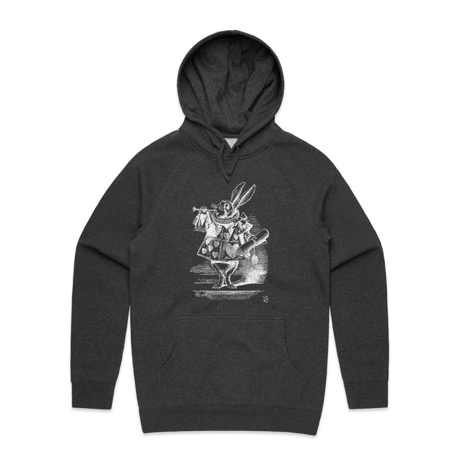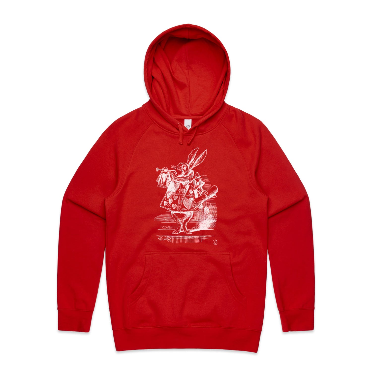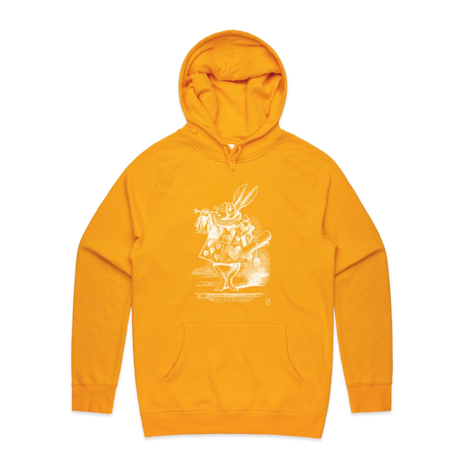 The Hoodies Alice in Wonderland - The White Rabbit Herald – Men's Hooded Sweatshirt is a high-quality men's hooded sweatshirt, printed with white ink on the trusted AS Colour Supply Hood 5101. With a regular fit and mid-weight feel, it's crafted from a premium blend of 80% cotton and 20% polyester anti-pill fleece, making it a durable and comfortable staple for any wardrobe. The pullover design features raglan sleeves, a lined hood with tonal drawcord, ribbed sleeve cuffs, and a roomy kangaroo pocket — all designed to keep you warm while looking effortlessly sharp.
