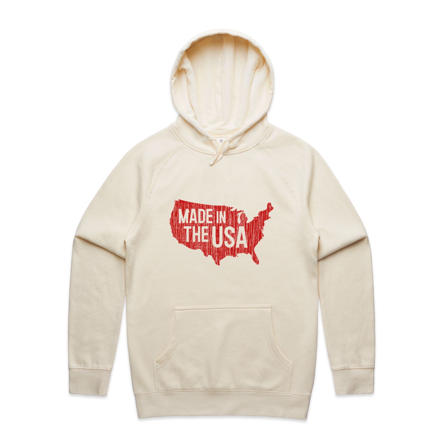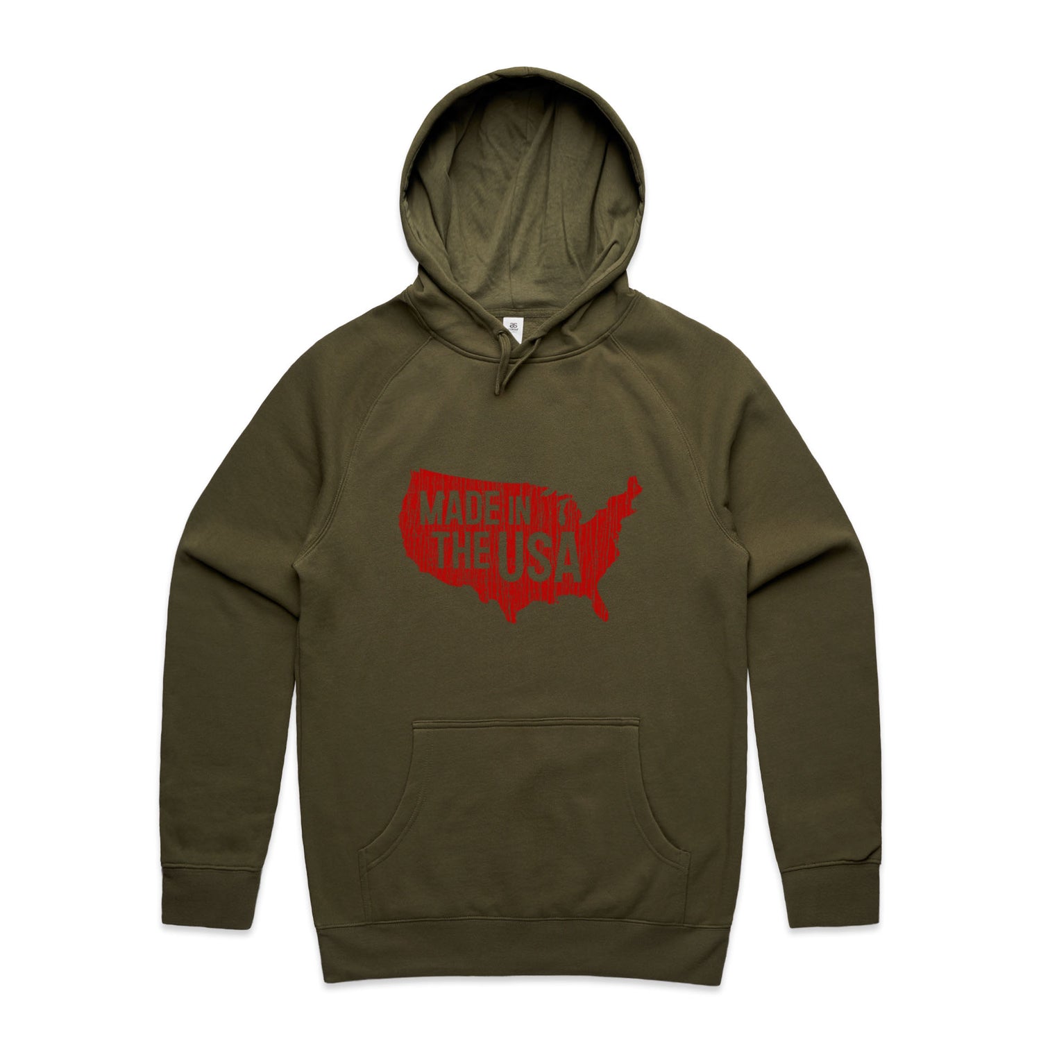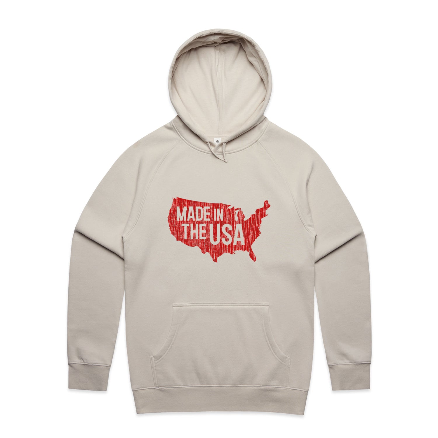 The Hoodies Made in America – Men's Hooded Sweatshirt is a high-quality men's hooded sweatshirt, printed with red ink on the trusted AS Colour Supply Hood 5101. With a regular fit and mid-weight feel, it's crafted from a premium blend of 80% cotton and 20% polyester anti-pill fleece, making it a durable and comfortable staple for any wardrobe. The pullover design features raglan sleeves, a lined hood with tonal drawcord, ribbed sleeve cuffs, and a roomy kangaroo pocket — all designed to keep you warm while looking effortlessly sharp.