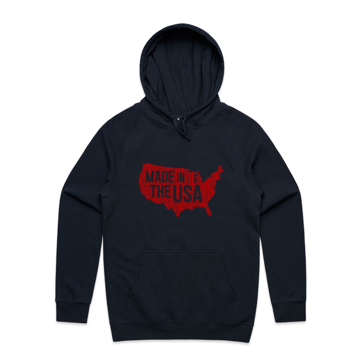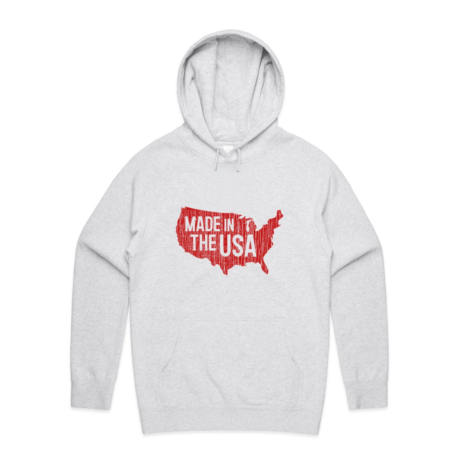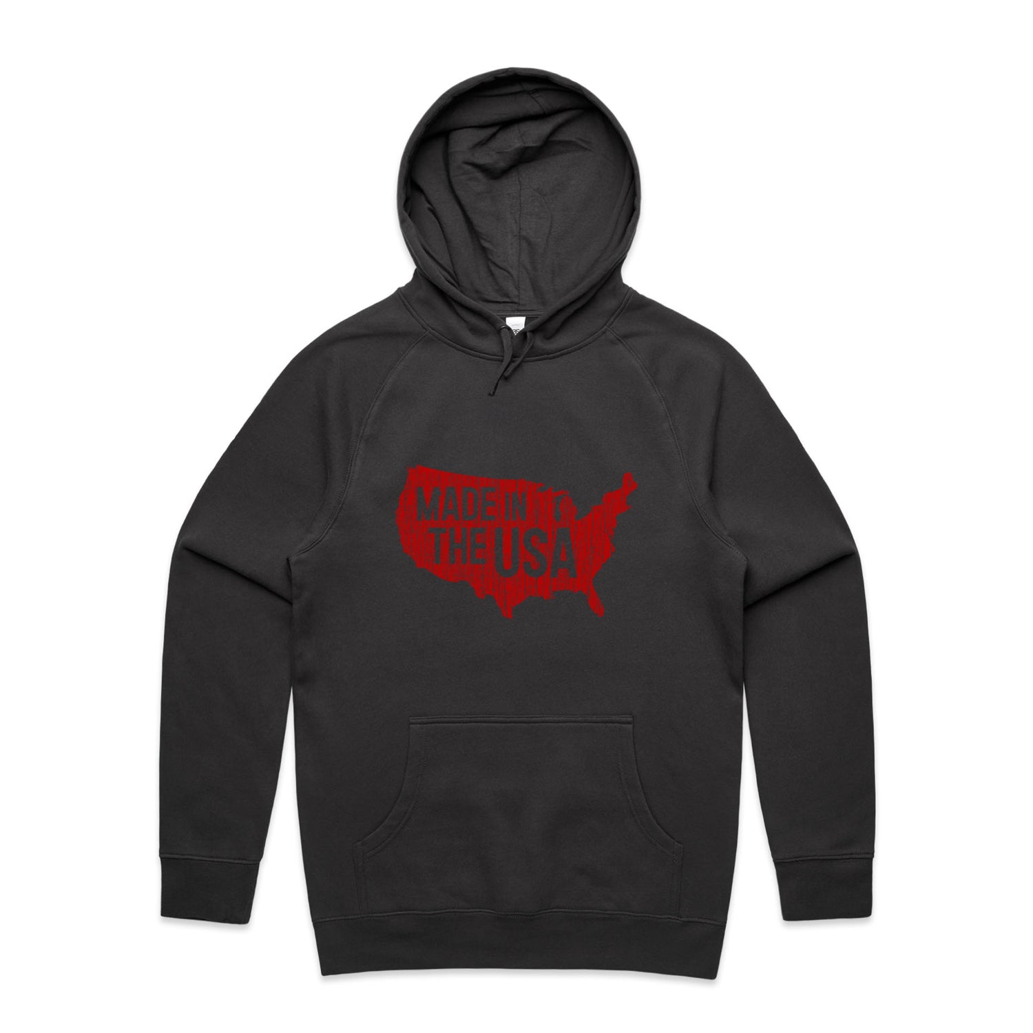The Hoodies Made in America – Men's Hooded Sweatshirt is a high-quality men's hooded sweatshirt, printed with red ink on the trusted AS Colour Supply Hood 5101. With a regular fit and mid-weight feel, it's crafted from a premium blend of 80% cotton and 20% polyester anti-pill fleece, making it a durable and comfortable staple for any wardrobe. The pullover design features raglan sleeves, a lined hood with tonal drawcord, ribbed sleeve cuffs, and a roomy kangaroo pocket — all designed to keep you warm while looking effortlessly sharp.
