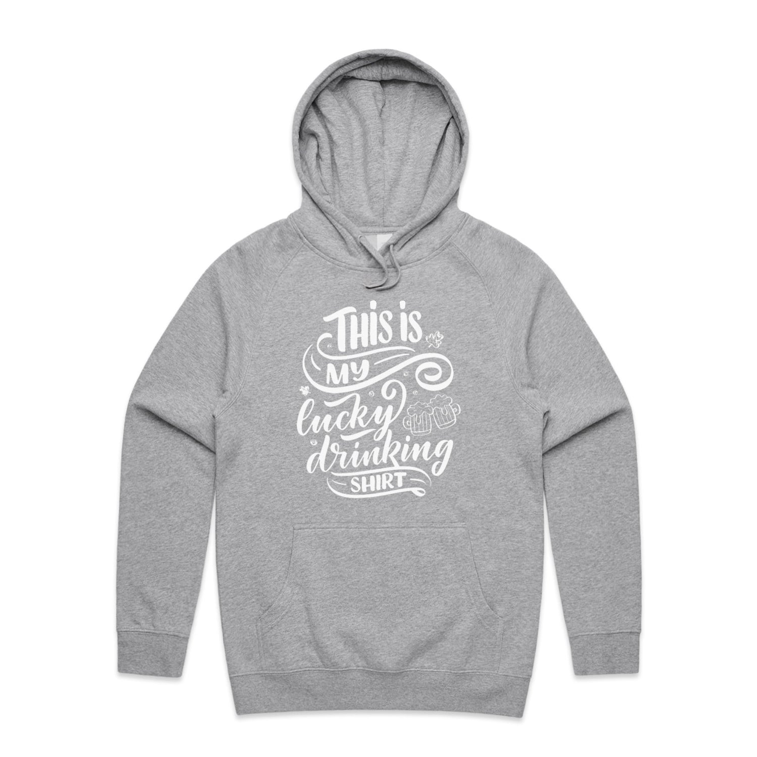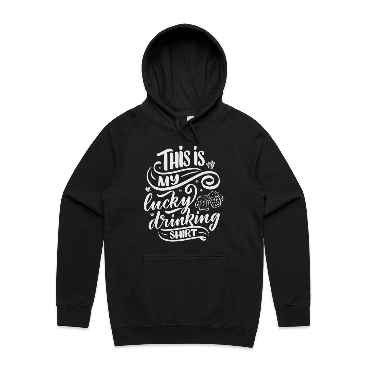 The Hoodies Lucky Drinking Shirt – Men's Hooded Sweatshirt is a high-quality men's hooded sweatshirt, printed with white ink on the trusted AS Colour Supply Hood 5101. With a regular fit and mid-weight feel, it's crafted from a premium blend of 80% cotton and 20% polyester anti-pill fleece, making it a durable and comfortable staple for any wardrobe. The pullover design features raglan sleeves, a lined hood with tonal drawcord, ribbed sleeve cuffs, and a roomy kangaroo pocket — all designed to keep you warm while looking effortlessly sharp.