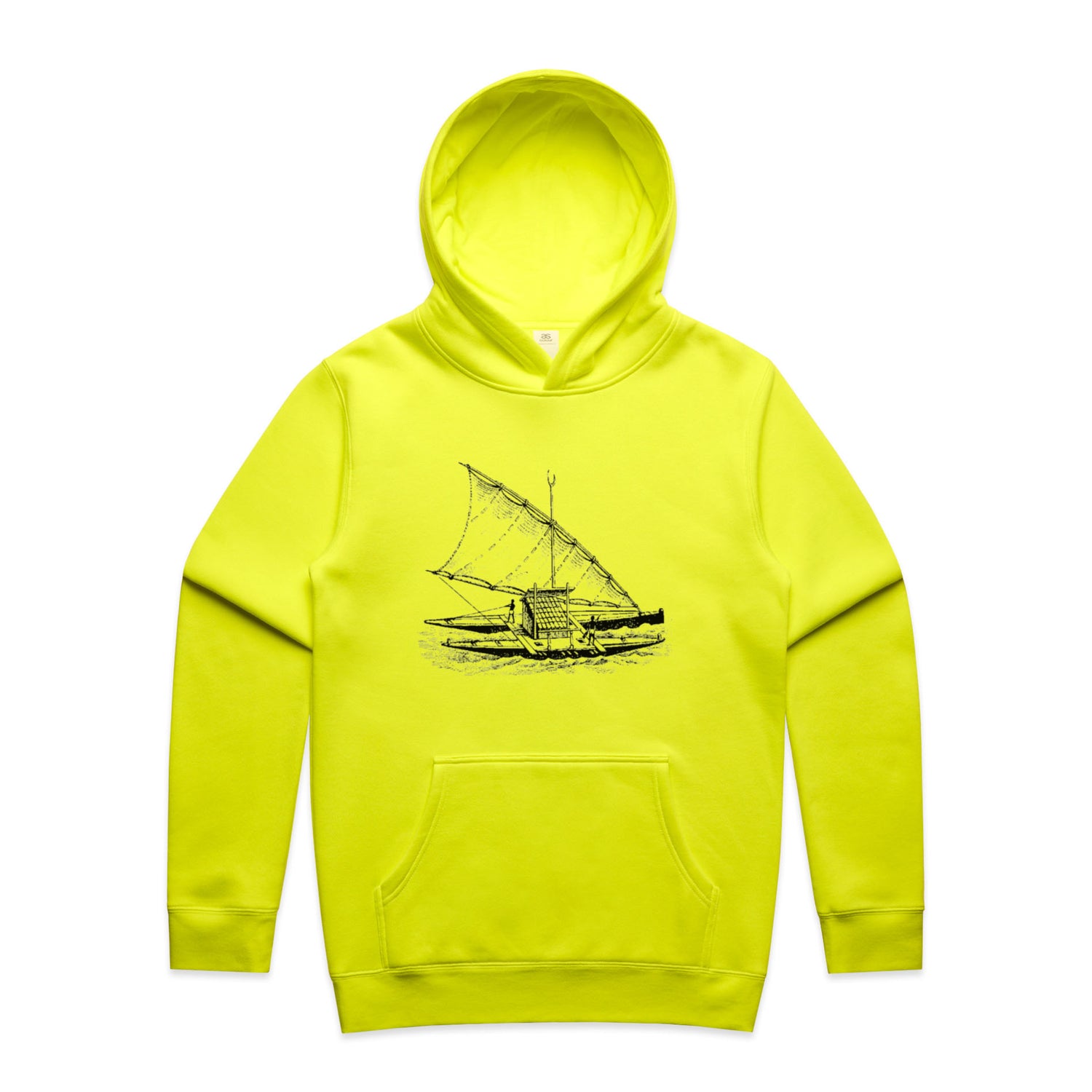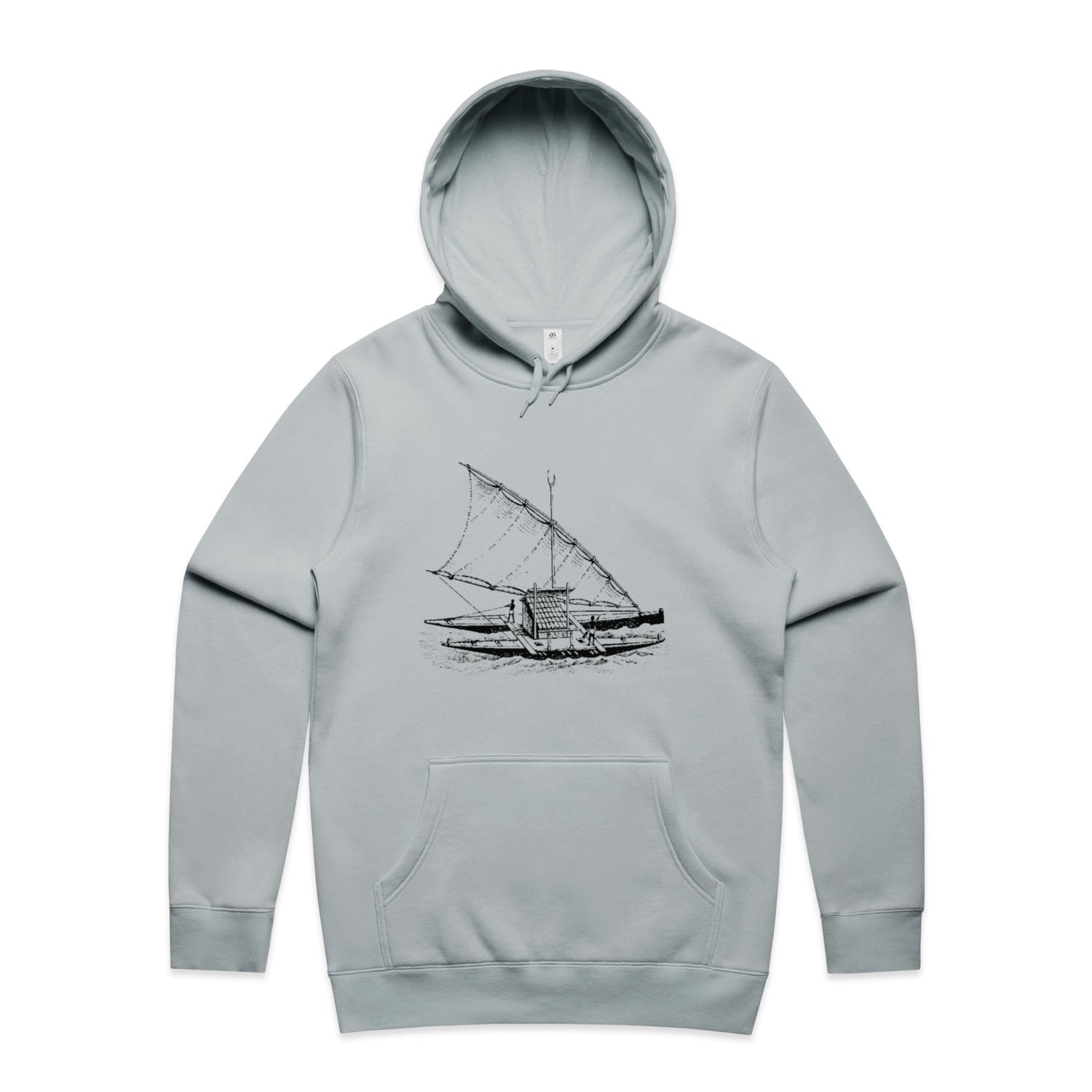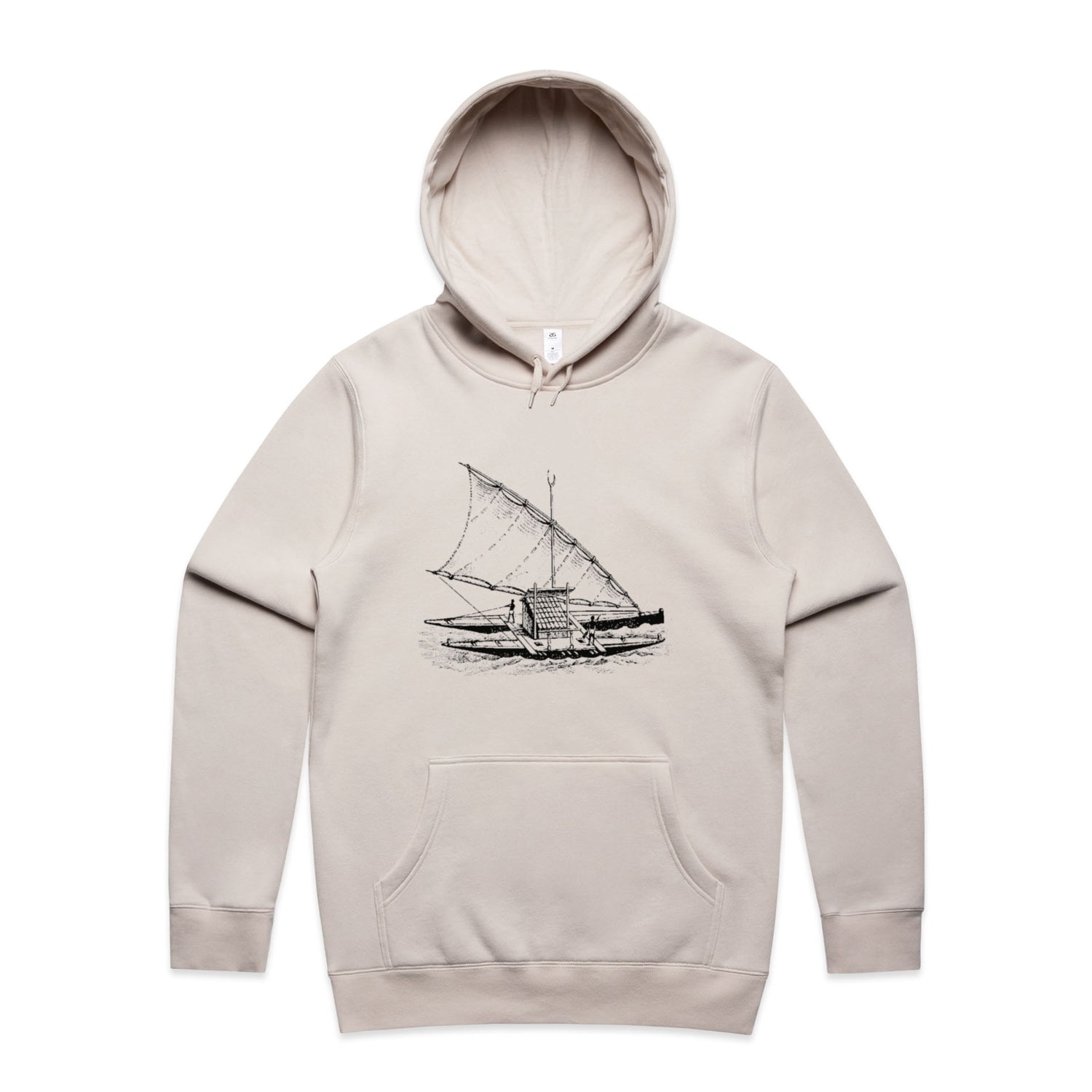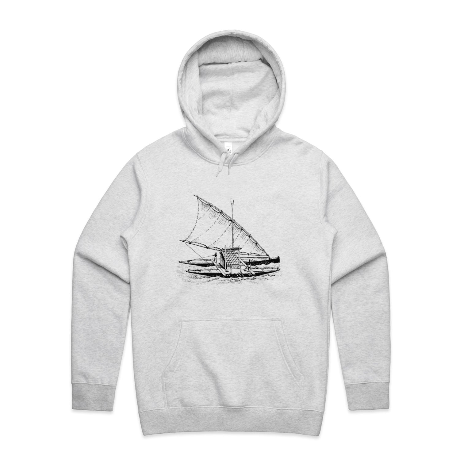 With a regular fit that'll keep you looking effortlessly rad, it features a classic pullover hood, kangaroo pocket for all your essentials (or maybe just your hands), and a lined hood ready to shield you from unexpected weather tantrums. And let's not forget those clean, black ink boat prints, making sure you stand out in just the right way—like a stealth captain navigating through the bustling streets.