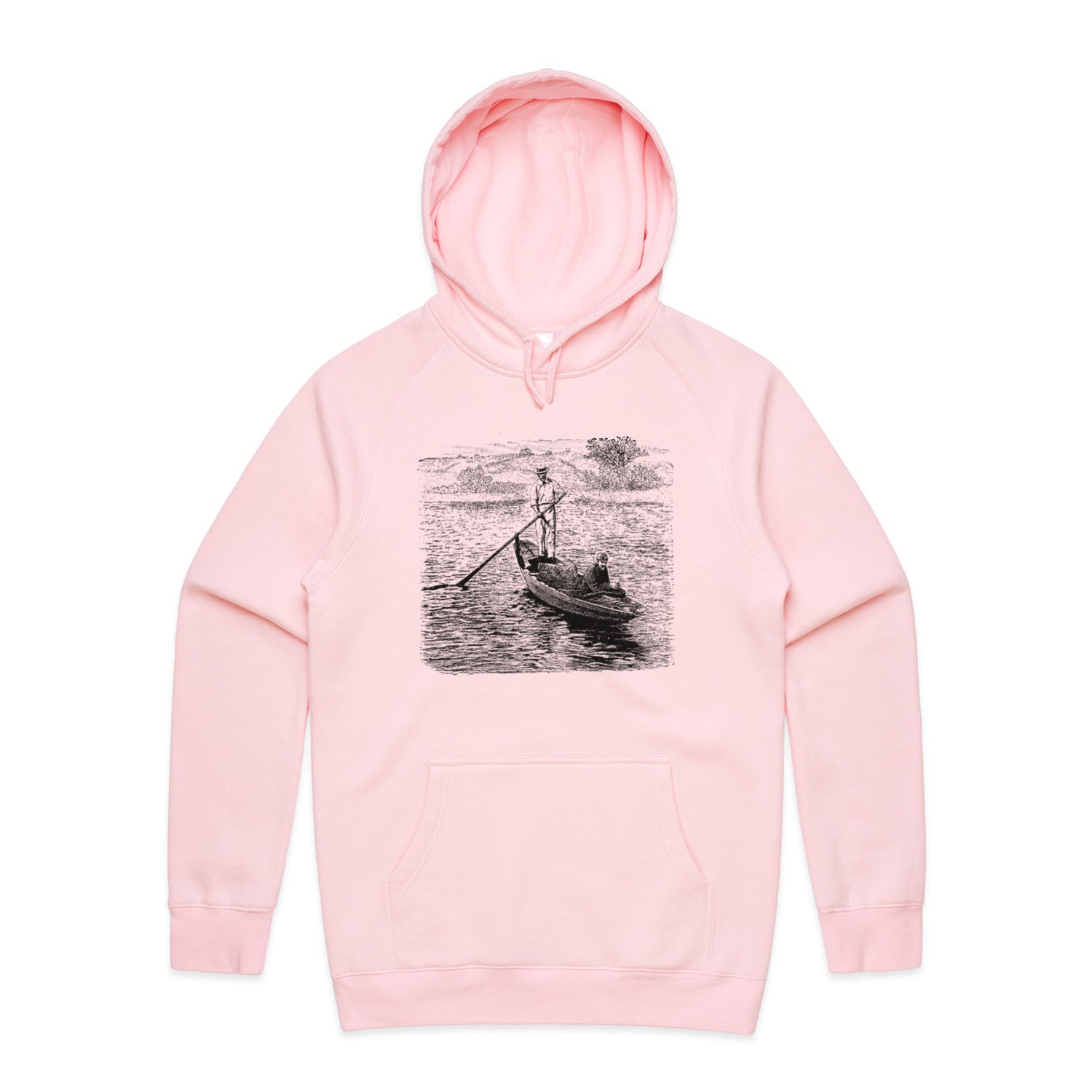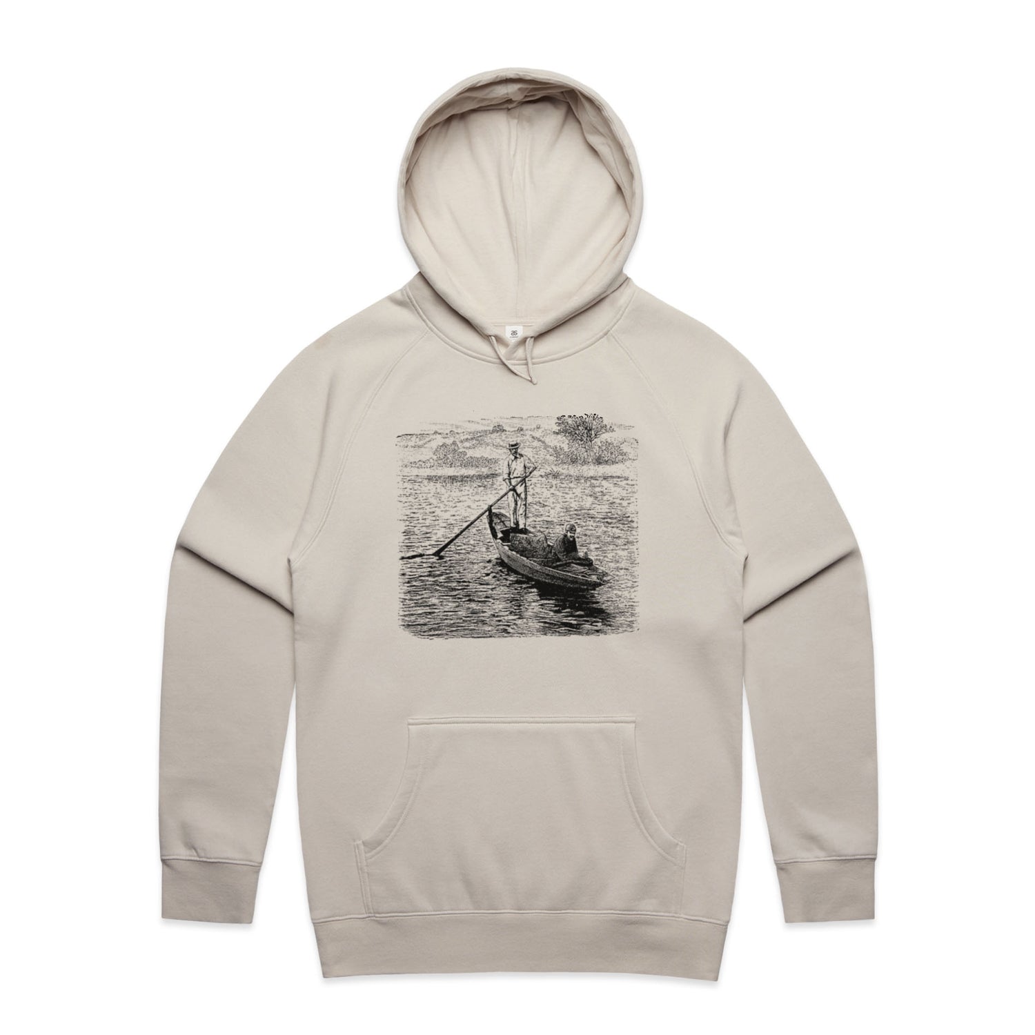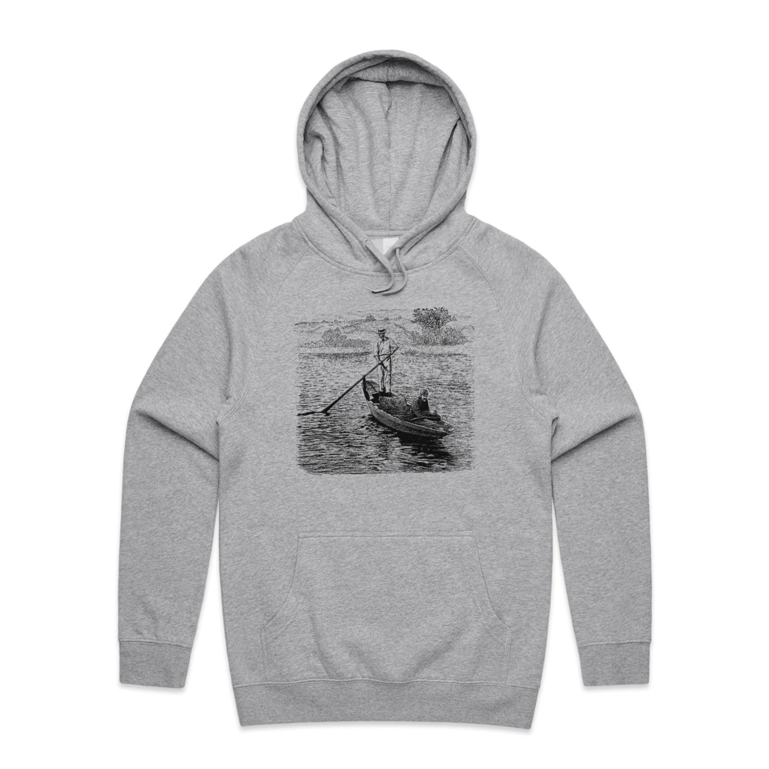 The Hoodies River Gondola – Men's Hooded Sweatshirt is a high-quality men's hooded sweatshirt, printed with black ink on the trusted AS Colour Supply Hood 5101. With a regular fit and mid-weight feel, it's crafted from a premium blend of 80% cotton and 20% polyester anti-pill fleece, making it a durable and comfortable staple for any wardrobe. The pullover design features raglan sleeves, a lined hood with tonal drawcord, ribbed sleeve cuffs, and a roomy kangaroo pocket — all designed to keep you warm while looking effortlessly sharp.