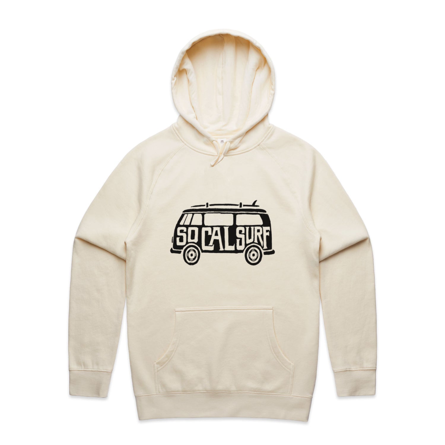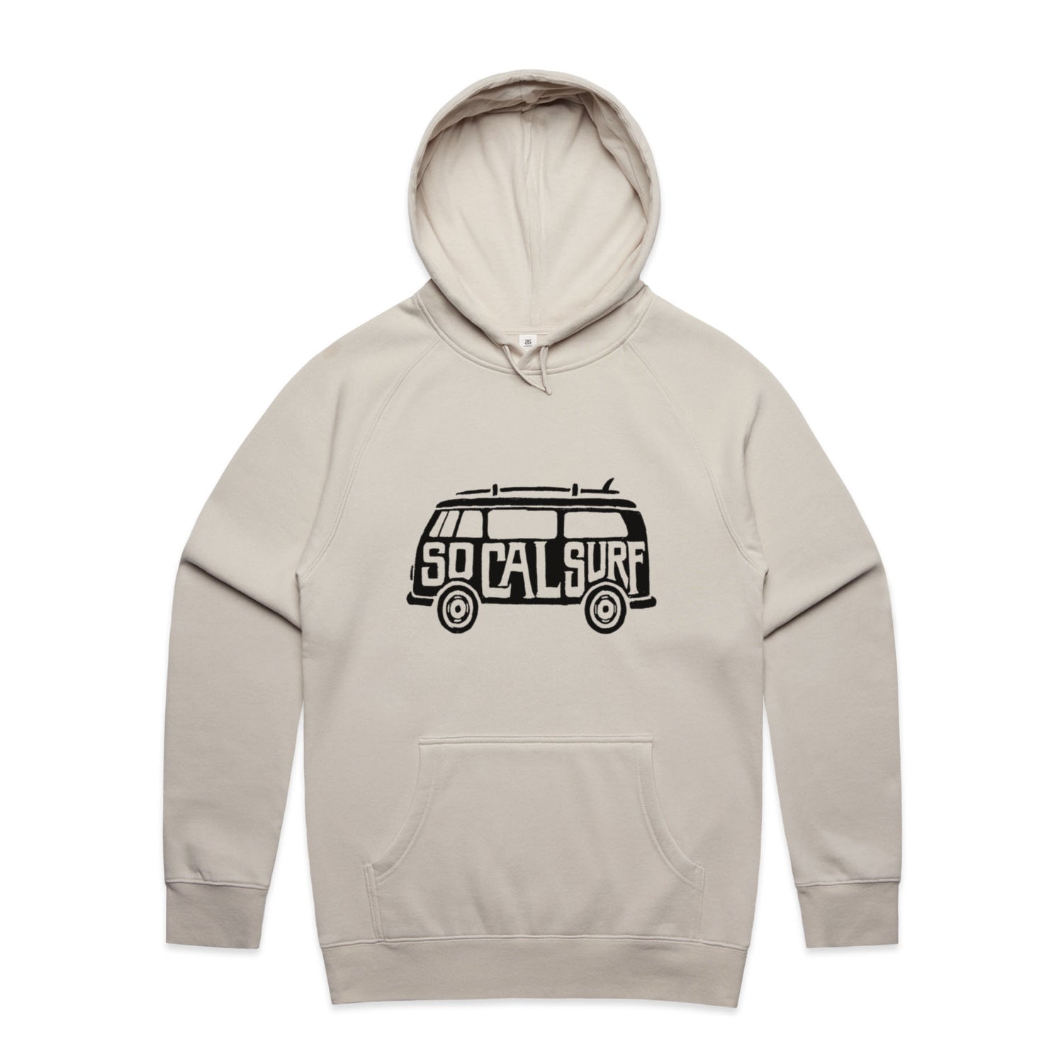 The Hoodies SoCal Surf Van – Men's Hooded Sweatshirt is a high-quality men's hooded sweatshirt, printed with black ink on the trusted AS Colour Supply Hood 5101. With a regular fit and mid-weight feel, it's crafted from a premium blend of 80% cotton and 20% polyester anti-pill fleece, making it a durable and comfortable staple for any wardrobe. The pullover design features raglan sleeves, a lined hood with tonal drawcord, ribbed sleeve cuffs, and a roomy kangaroo pocket — all designed to keep you warm while looking effortlessly sharp.