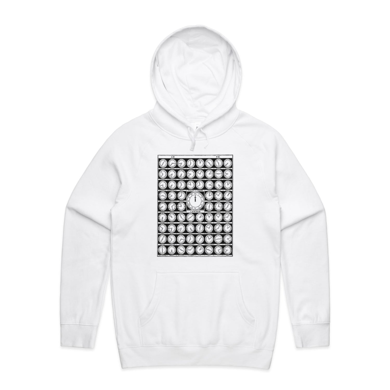 The Hoodies Wall of Clocks – Men's Hooded Sweatshirt is a high-quality men's hooded sweatshirt, printed with black ink on the trusted AS Colour Supply Hood 5101. With a regular fit and mid-weight feel, it's crafted from a premium blend of 80% cotton and 20% polyester anti-pill fleece, making it a durable and comfortable staple for any wardrobe. The pullover design features raglan sleeves, a lined hood with tonal drawcord, ribbed sleeve cuffs, and a roomy kangaroo pocket — all designed to keep you warm while looking effortlessly sharp.