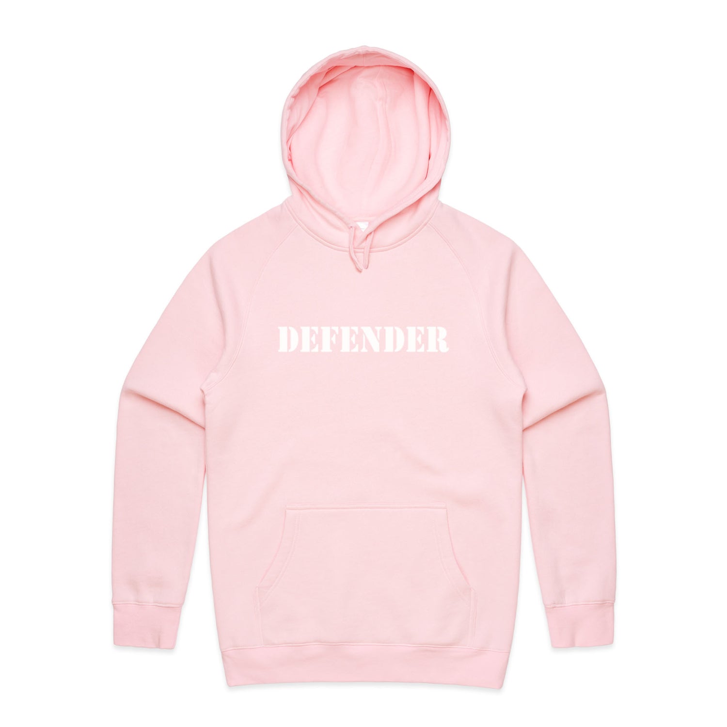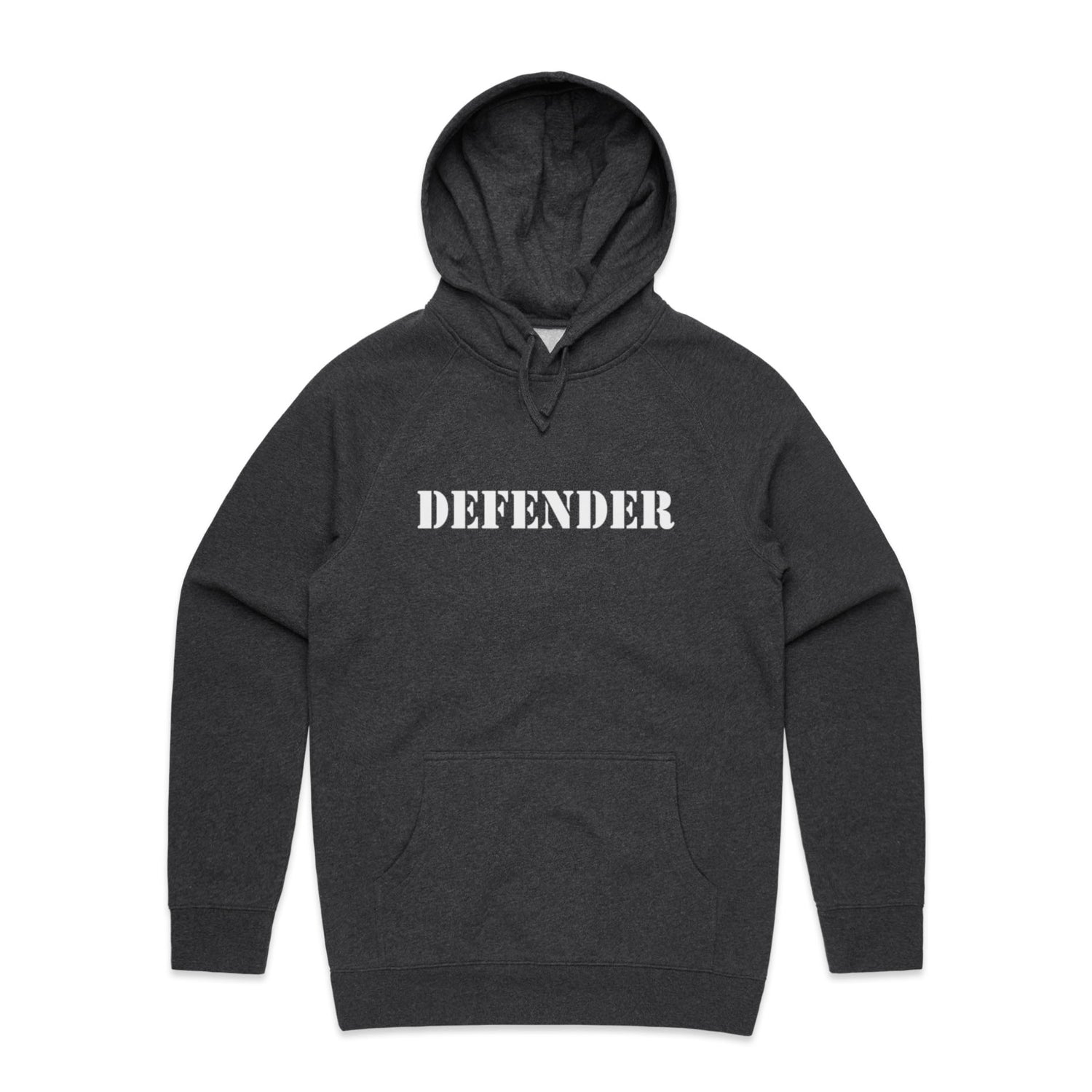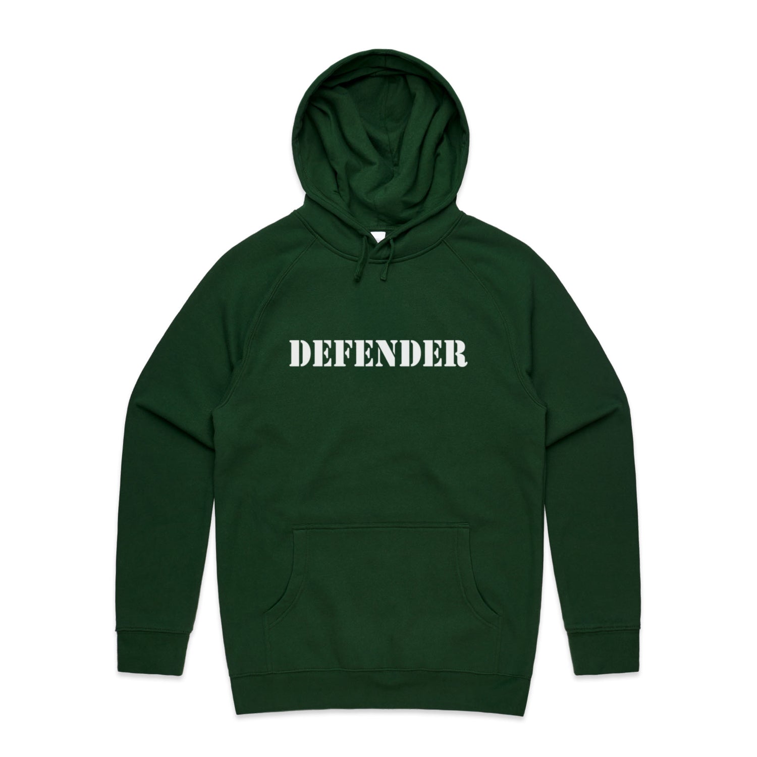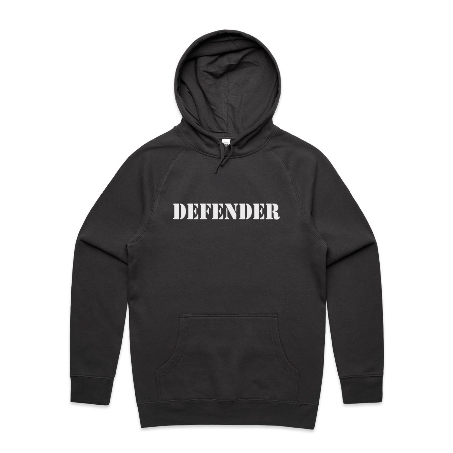 The Hoodies DEFENDER Stencil – Men's Hooded Sweatshirt is a high-quality men's hooded sweatshirt, printed with white ink on the trusted AS Colour Supply Hood 5101. With a regular fit and mid-weight feel, it's crafted from a premium blend of 80% cotton and 20% polyester anti-pill fleece, making it a durable and comfortable staple for any wardrobe. The pullover design features raglan sleeves, a lined hood with tonal drawcord, ribbed sleeve cuffs, and a roomy kangaroo pocket — all designed to keep you warm while looking effortlessly sharp.