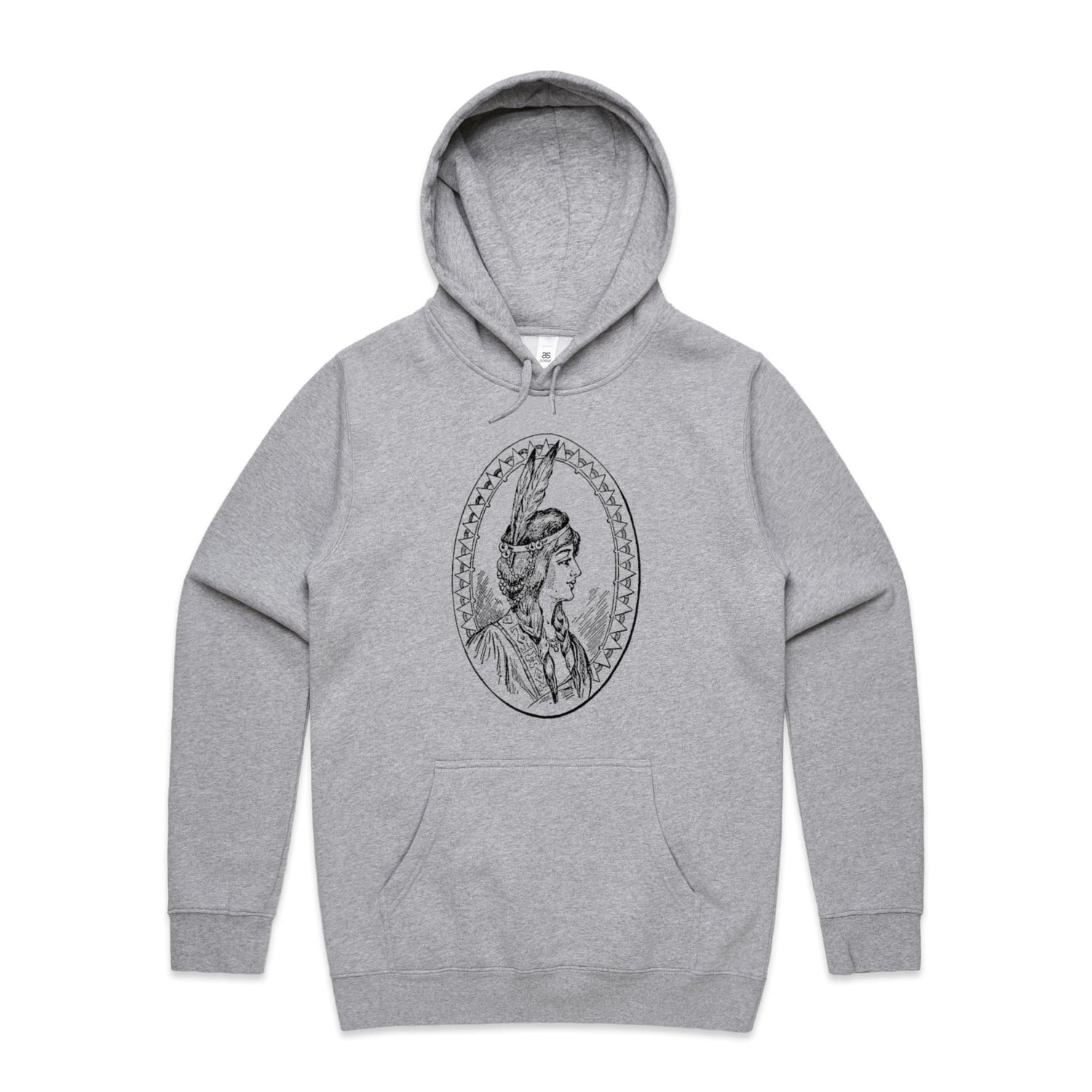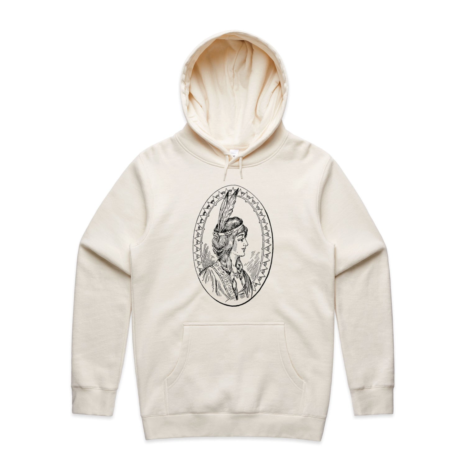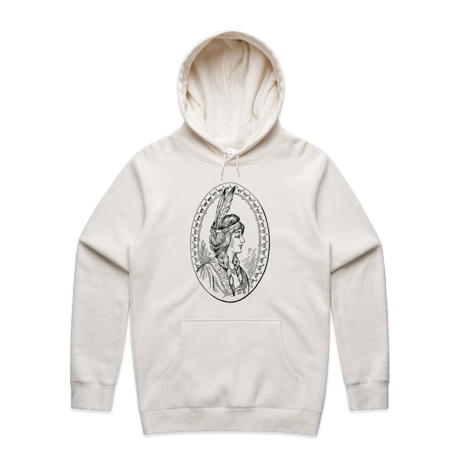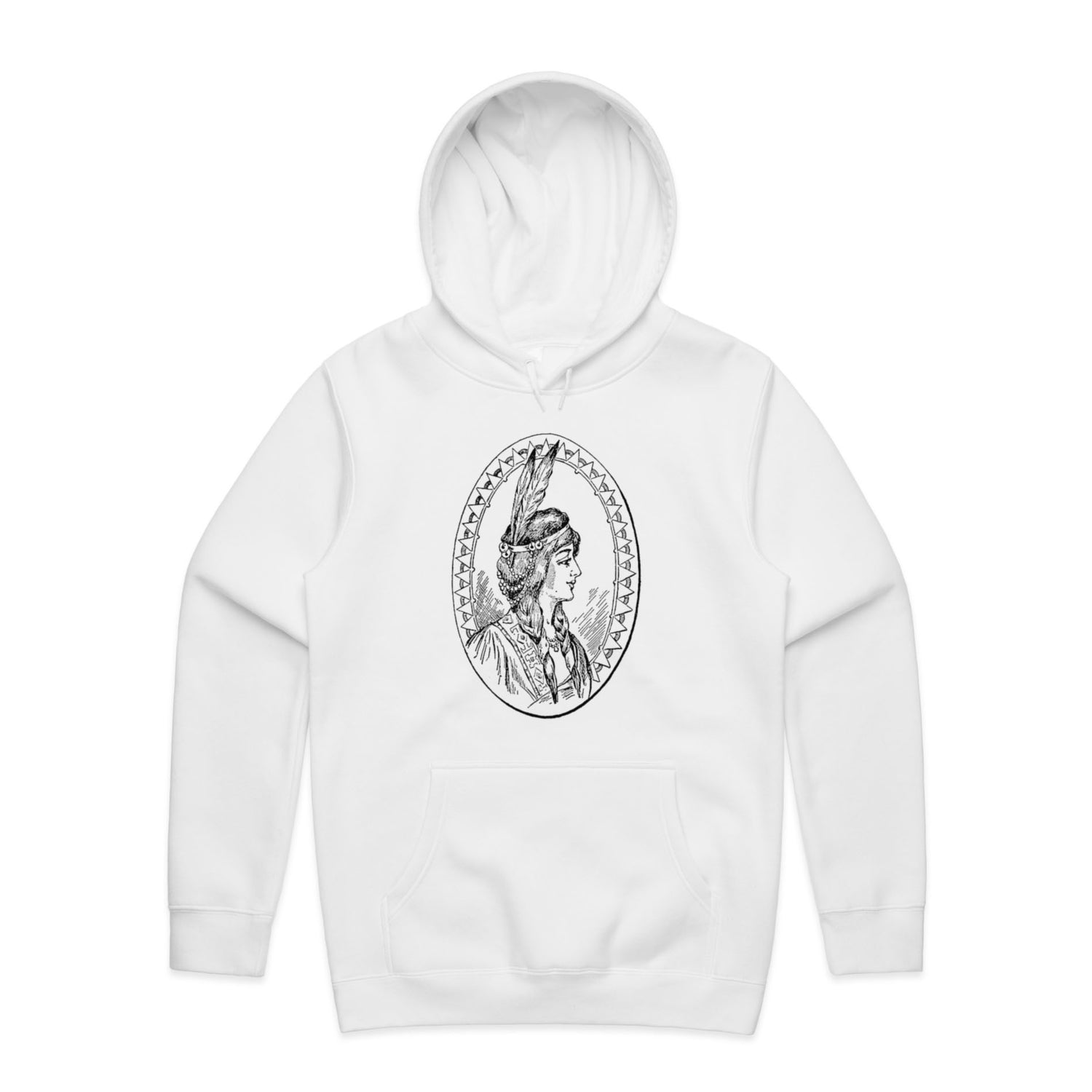 Introducing your new favourite hoodie that'll have you feeling all the good vibes! Our Native American Woman Sketch Unisex Hooded Sweatshirt is where art meets comfort, with a sketch that's as powerful as it is beautiful, all printed in sleek black ink. Whether you’re chilling at home, hitting the streets, or embarking on an adventure, this hoodie’s got your back… literally.
