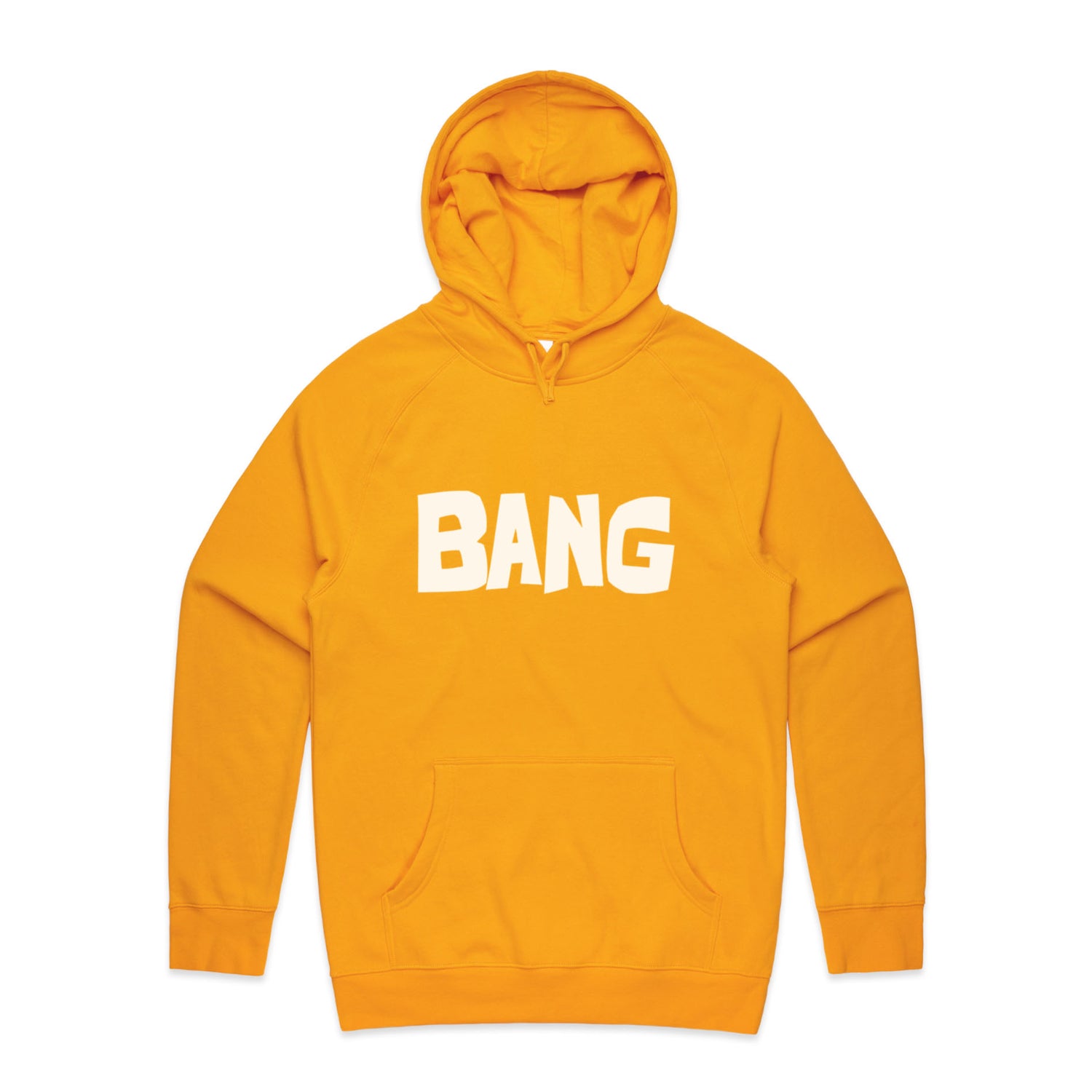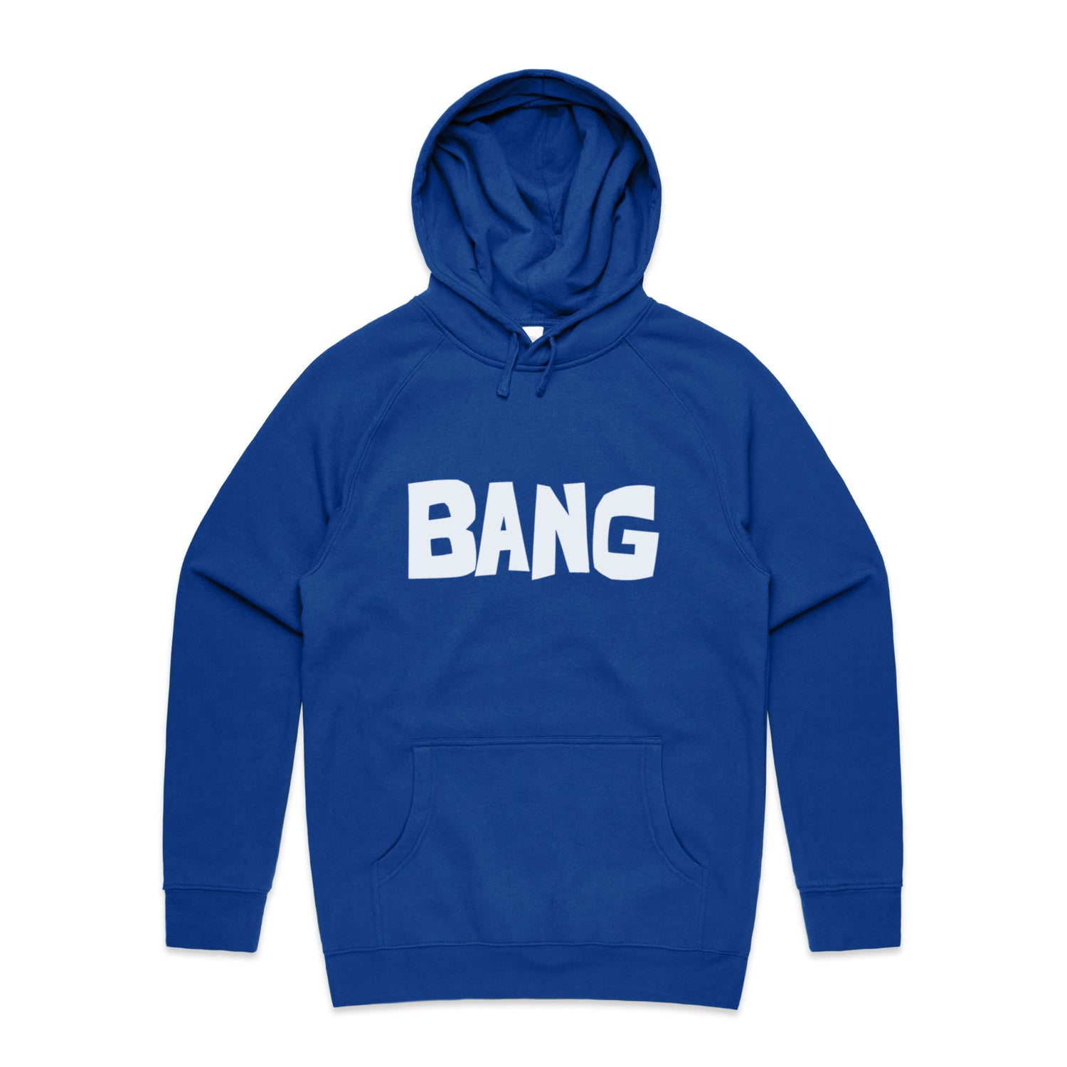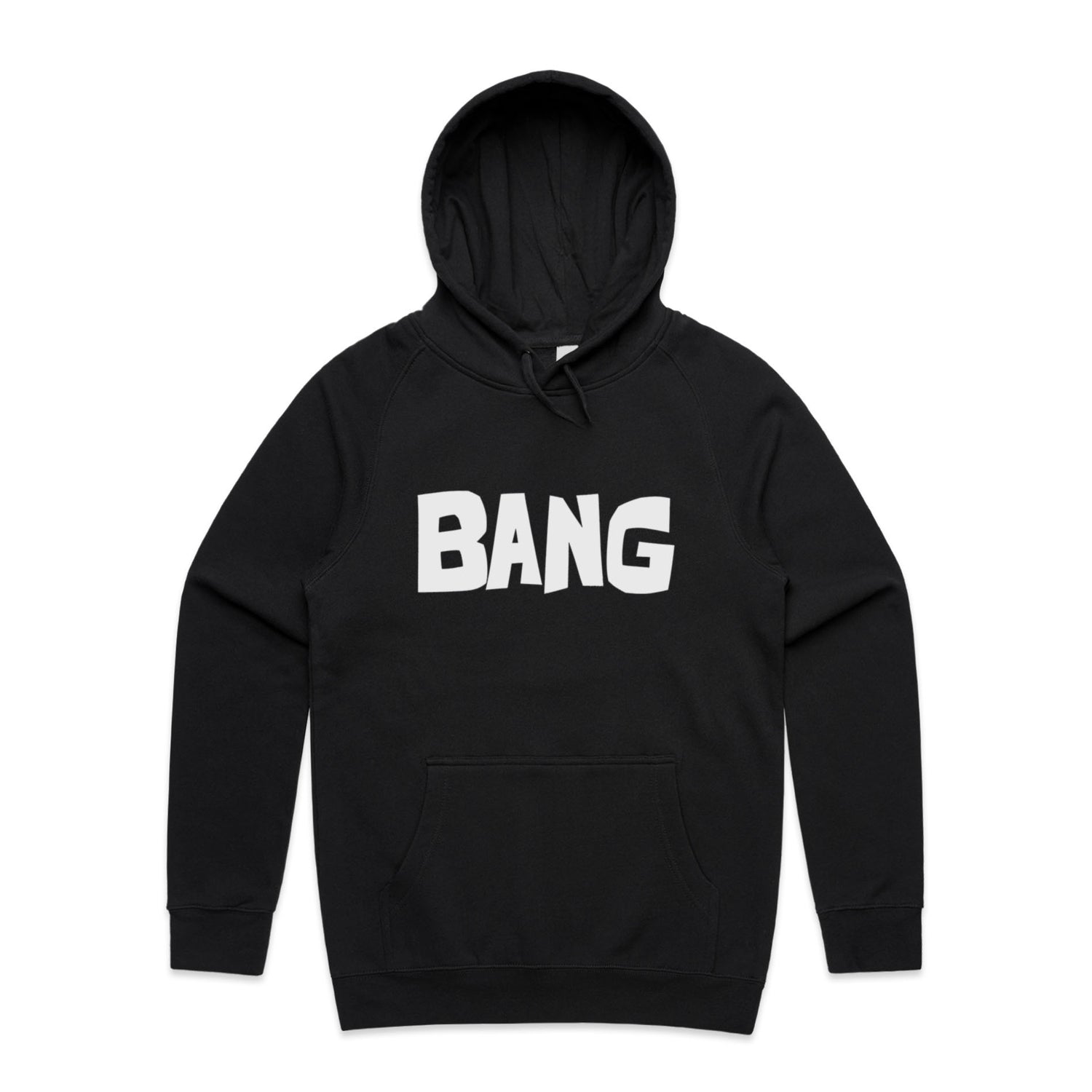The Hoodies B A N G – Men's Hooded Sweatshirt is a high-quality men's hooded sweatshirt, printed with white ink on the trusted AS Colour Supply Hood 5101. With a regular fit and mid-weight feel, it's crafted from a premium blend of 80% cotton and 20% polyester anti-pill fleece, making it a durable and comfortable staple for any wardrobe. The pullover design features raglan sleeves, a lined hood with tonal drawcord, ribbed sleeve cuffs, and a roomy kangaroo pocket — all designed to keep you warm while looking effortlessly sharp.