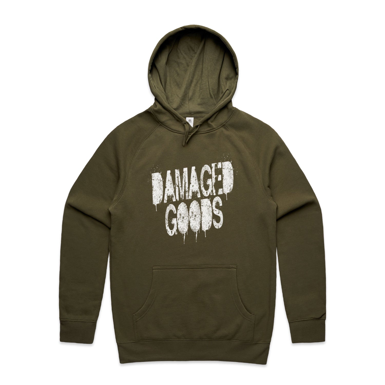 The Hoodies Damaged Goods – Men's Hooded Sweatshirt is a high-quality men's hooded sweatshirt, printed with white ink on the trusted AS Colour Supply Hood 5101. With a regular fit and mid-weight feel, it's crafted from a premium blend of 80% cotton and 20% polyester anti-pill fleece, making it a durable and comfortable staple for any wardrobe. The pullover design features raglan sleeves, a lined hood with tonal drawcord, ribbed sleeve cuffs, and a roomy kangaroo pocket — all designed to keep you warm while looking effortlessly sharp.
