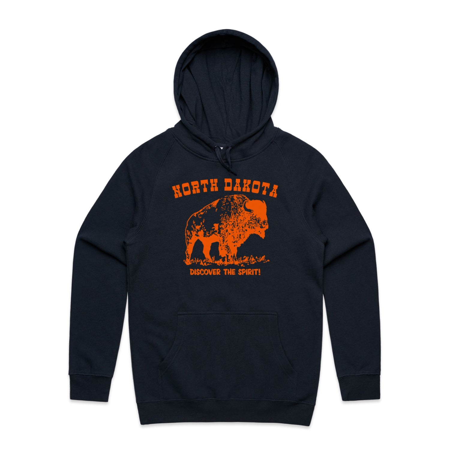 The Hoodies North Dakota – Men's Hooded Sweatshirt is a high-quality men's hooded sweatshirt, printed with orange ink on the trusted AS Colour Supply Hood 5101. With a regular fit and mid-weight feel, it's crafted from a premium blend of 80% cotton and 20% polyester anti-pill fleece, making it a durable and comfortable staple for any wardrobe. The pullover design features raglan sleeves, a lined hood with tonal drawcord, ribbed sleeve cuffs, and a roomy kangaroo pocket — all designed to keep you warm while looking effortlessly sharp.