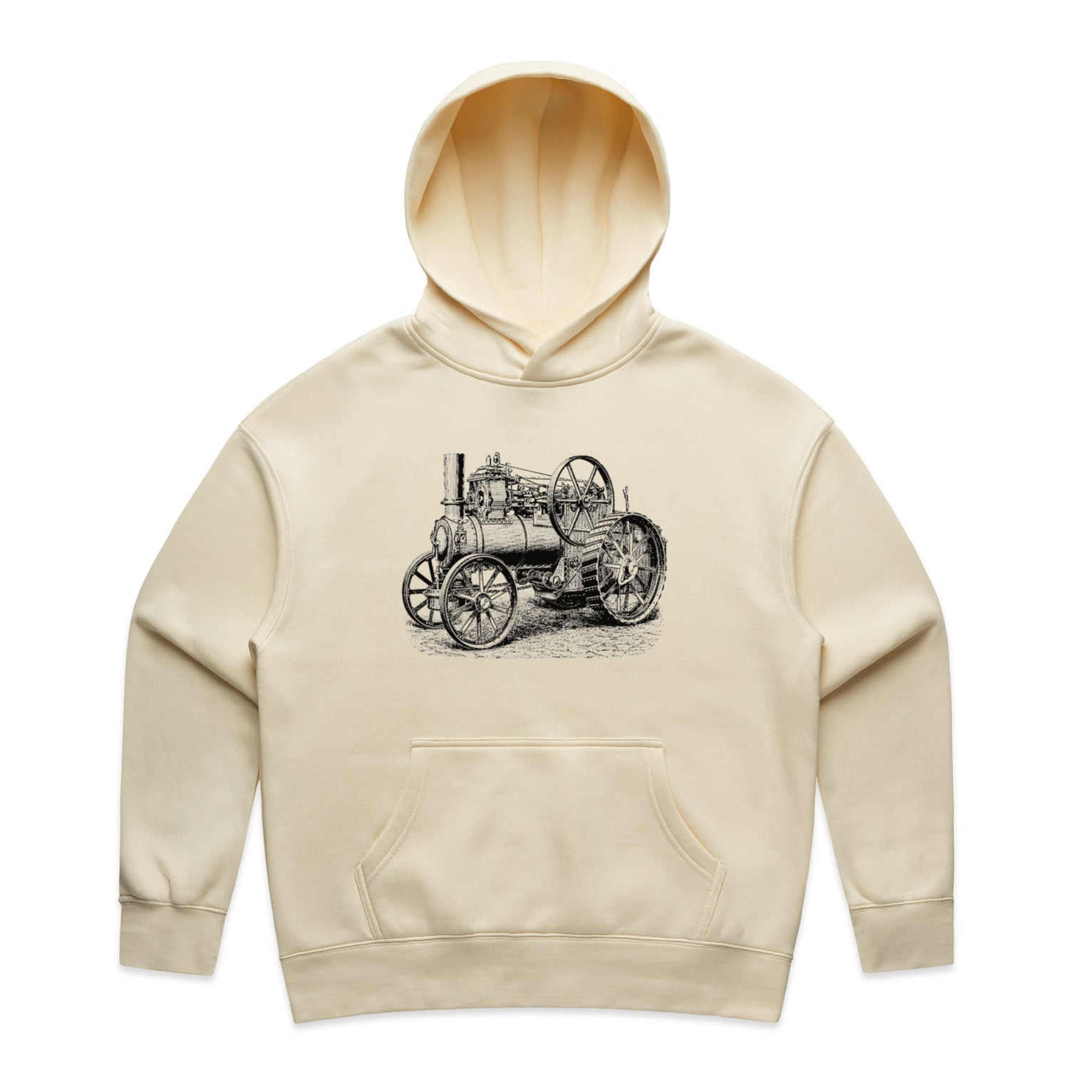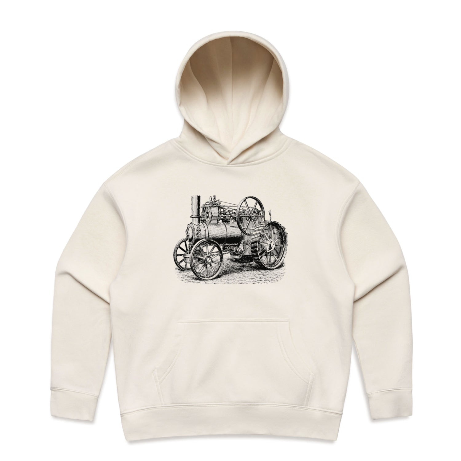 This hoodie's got everything you need: a cosy pullover hood (sans strings – keeping it sleek), rad drop shoulders, and a nifty kangaroo pocket for stashing your essentials or just hiding your hands from the cold. Plus, the ink-black Steampunk design adds a touch of Victorian industrial vibes that you can rock anywhere.