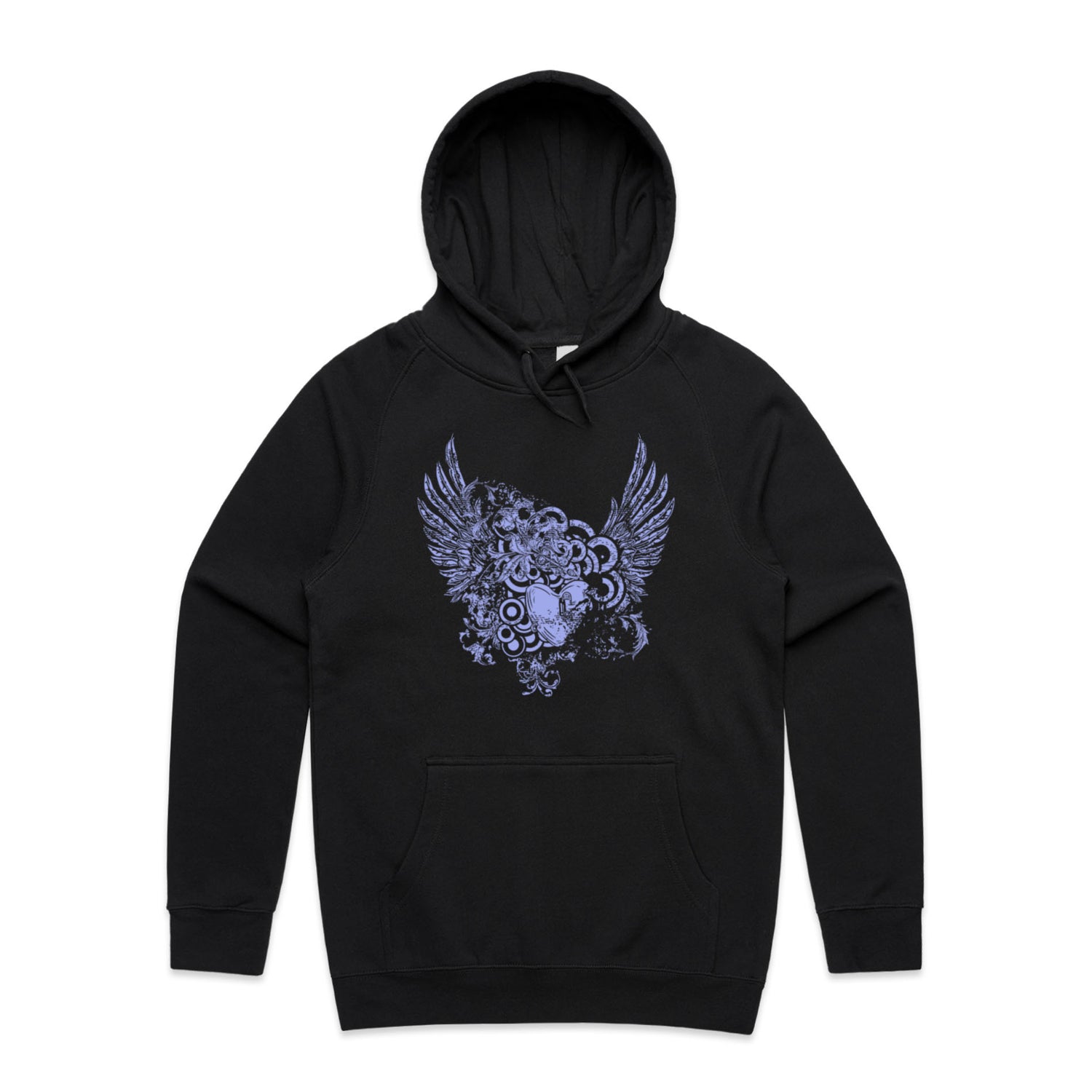 The Hoodies Graffiti Winged Heart – Men's Hooded Sweatshirt is a high-quality men's hooded sweatshirt, printed with blue ink on the trusted AS Colour Supply Hood 5101. With a regular fit and mid-weight feel, it's crafted from a premium blend of 80% cotton and 20% polyester anti-pill fleece, making it a durable and comfortable staple for any wardrobe. The pullover design features raglan sleeves, a lined hood with tonal drawcord, ribbed sleeve cuffs, and a roomy kangaroo pocket — all designed to keep you warm while looking effortlessly sharp.