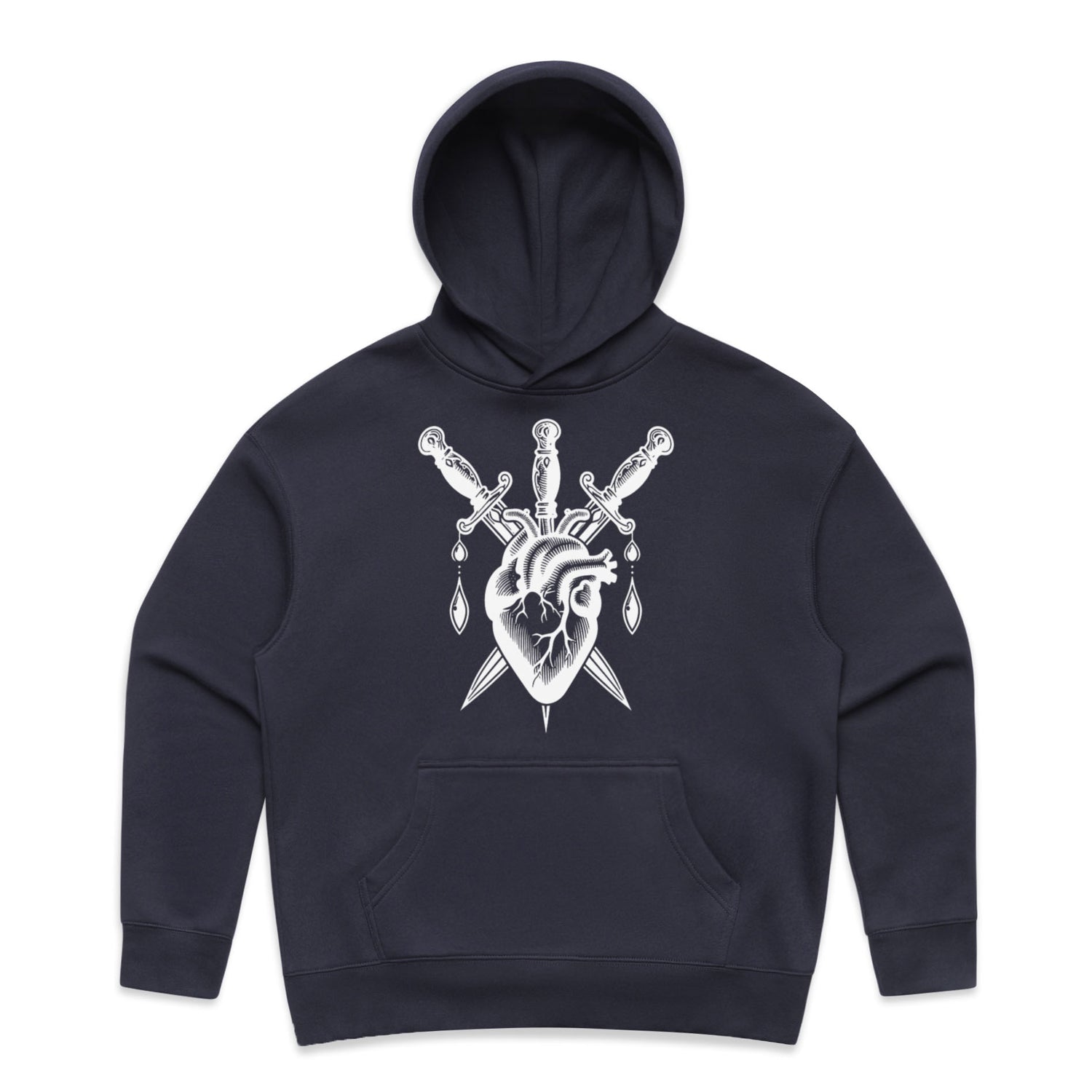 So, whether you're chilling with mates or heading out for a wild gig, slam on this Heart and Daggers hoodie and own your style with wicked pride.