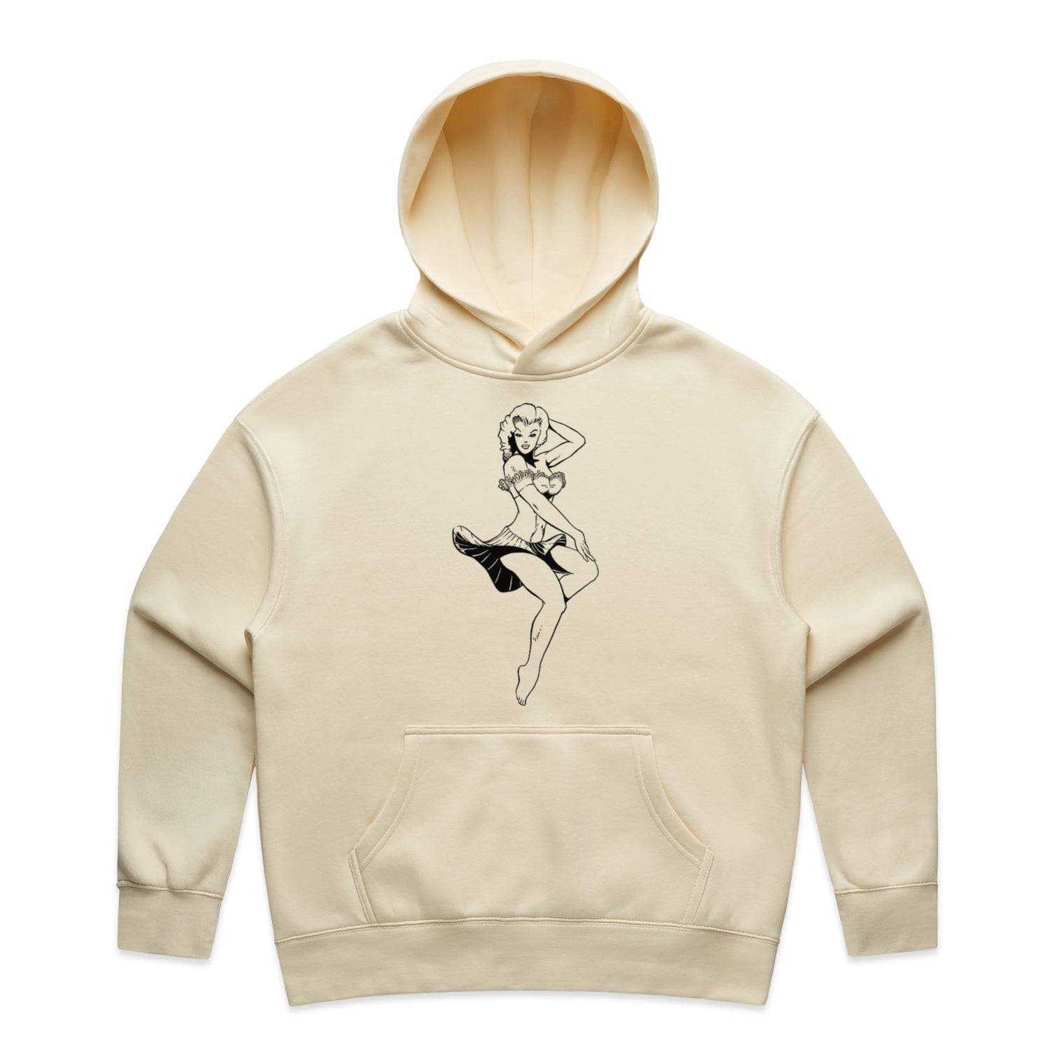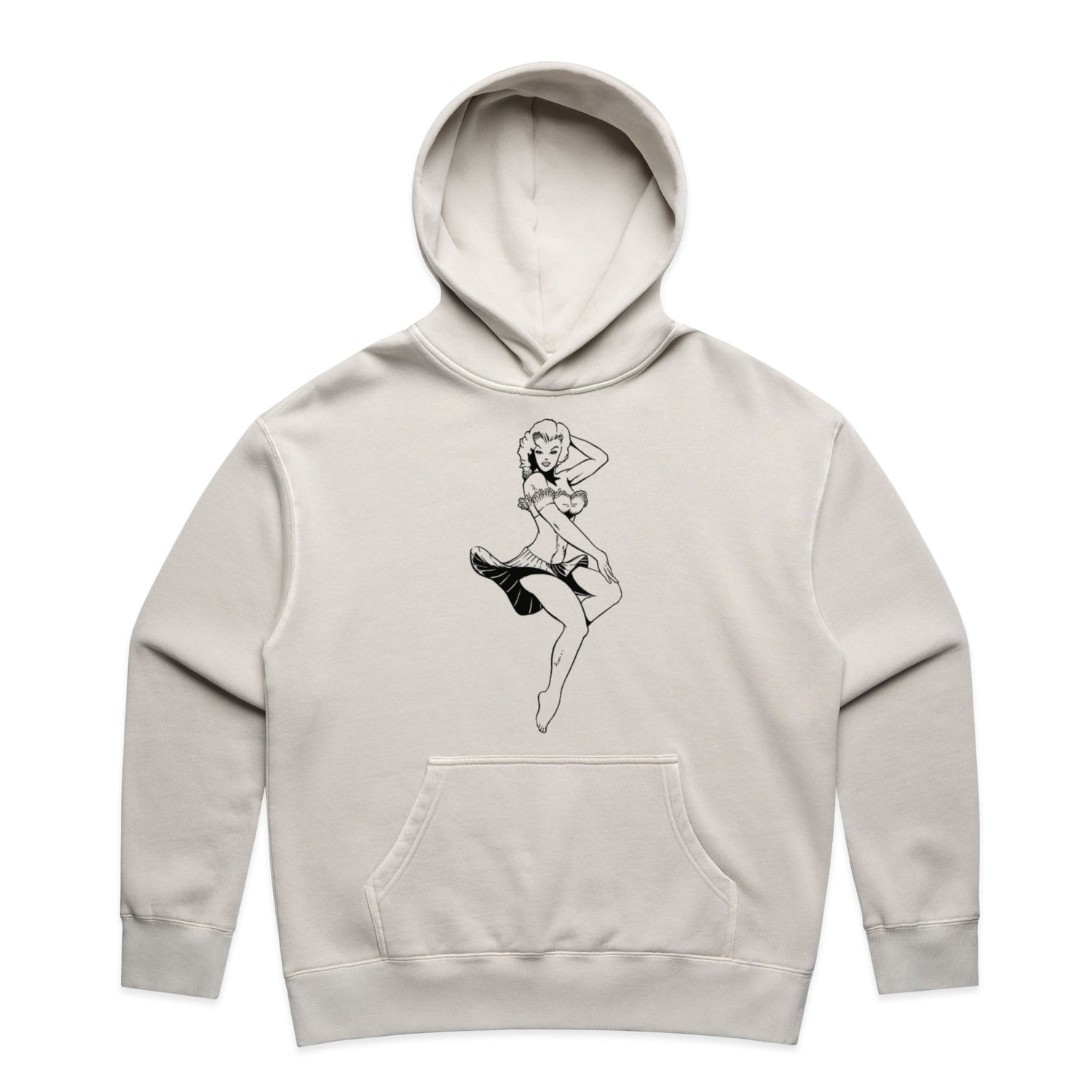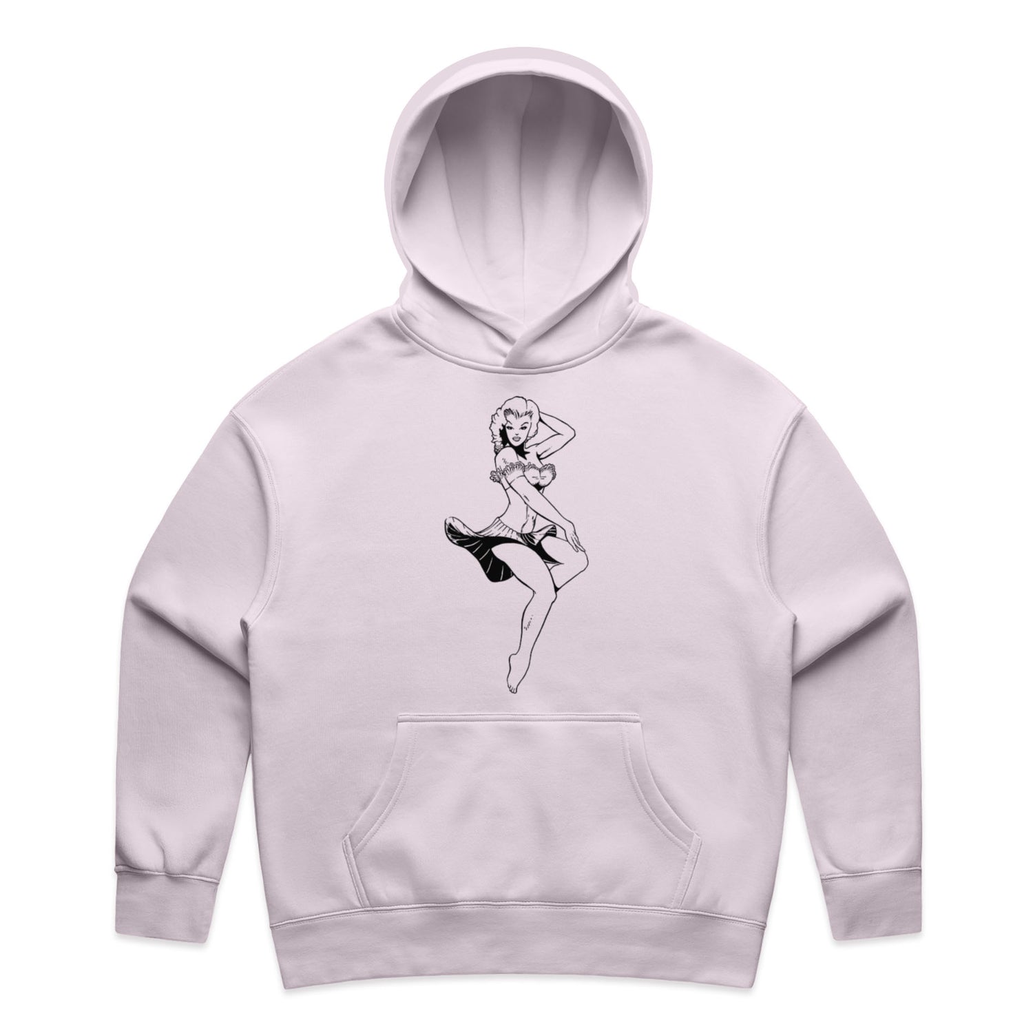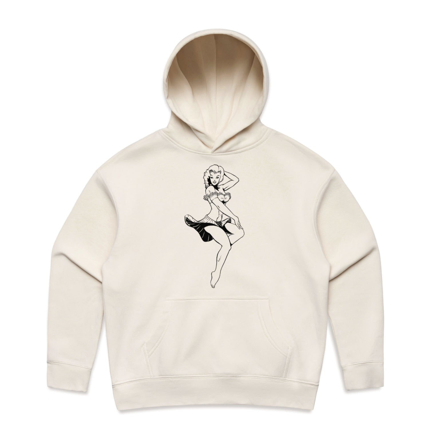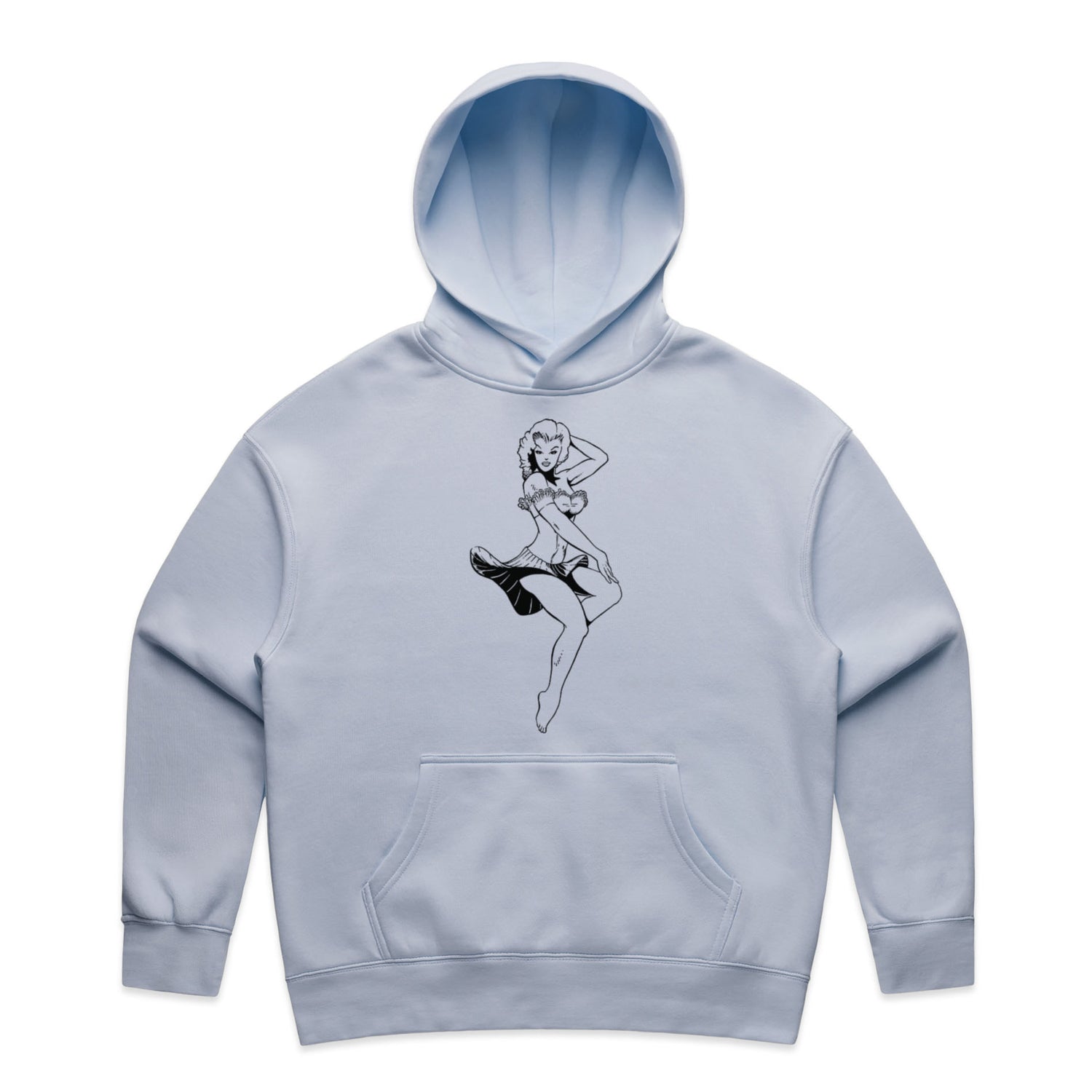 And let's talk about that ink-black pin-up design that's stealing the spotlight, oozing rockabilly charm with a twist of edge. You're not just wearing a hoodie; you're wearing an attitude, and saving approximately 7.2 plastic bottles from hitting the dump while you're at it—how's that for style with a smile?