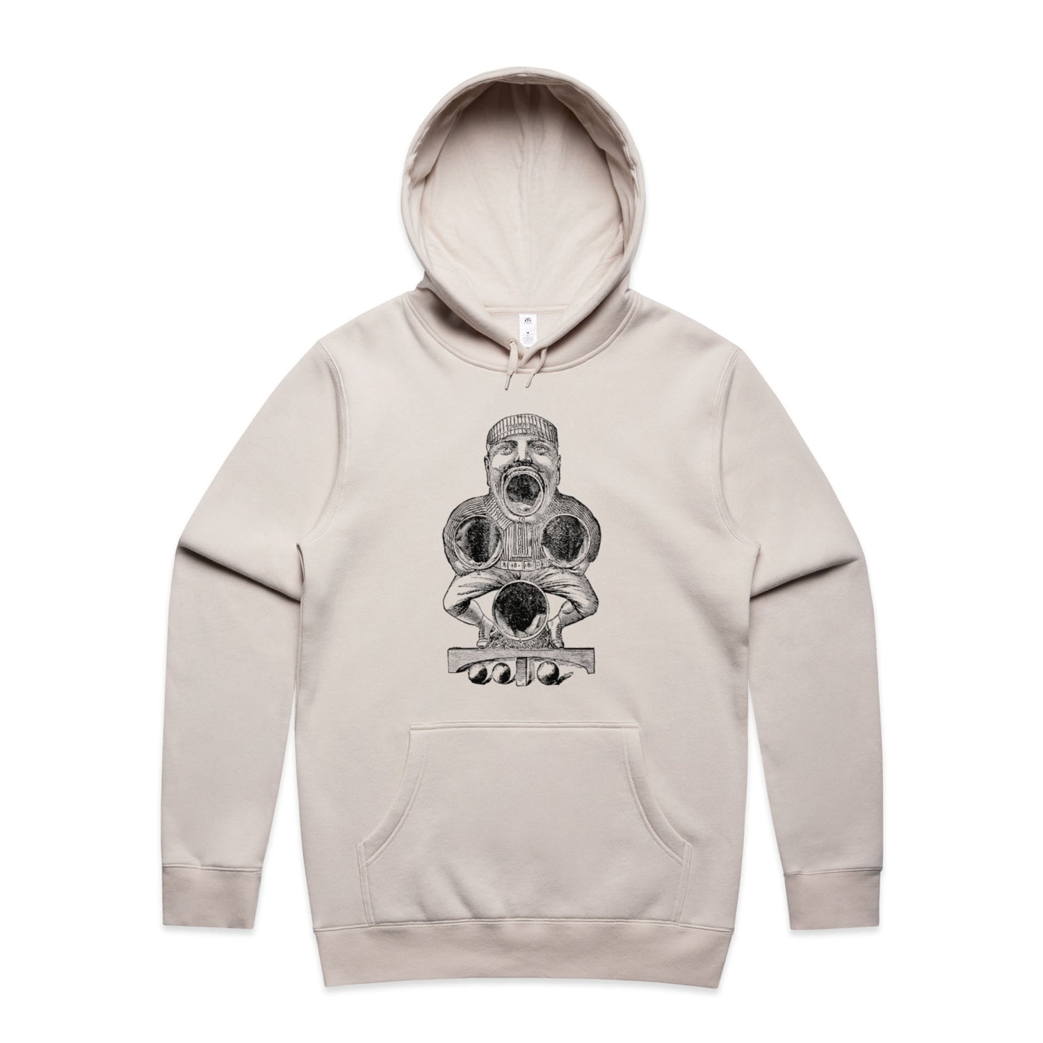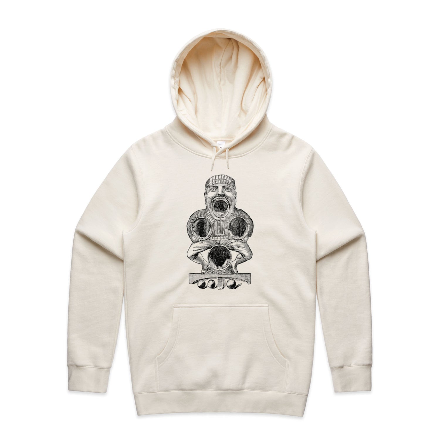 Slide into the regular fit, chuck your hands in the kangaroo pocket, and let the plush lined hood keep you snug as a bug. The black ink print pops against the classic Black backdrop, offering a laid-back, timeless vibe with a bit of edge. Perfect for wandering the urban jungle or chilling with your mates, it's an instant classic that's all about fun and style. Whether you're hitting the streets or just want to look effortlessly cool, this hoodie’s got you covered.