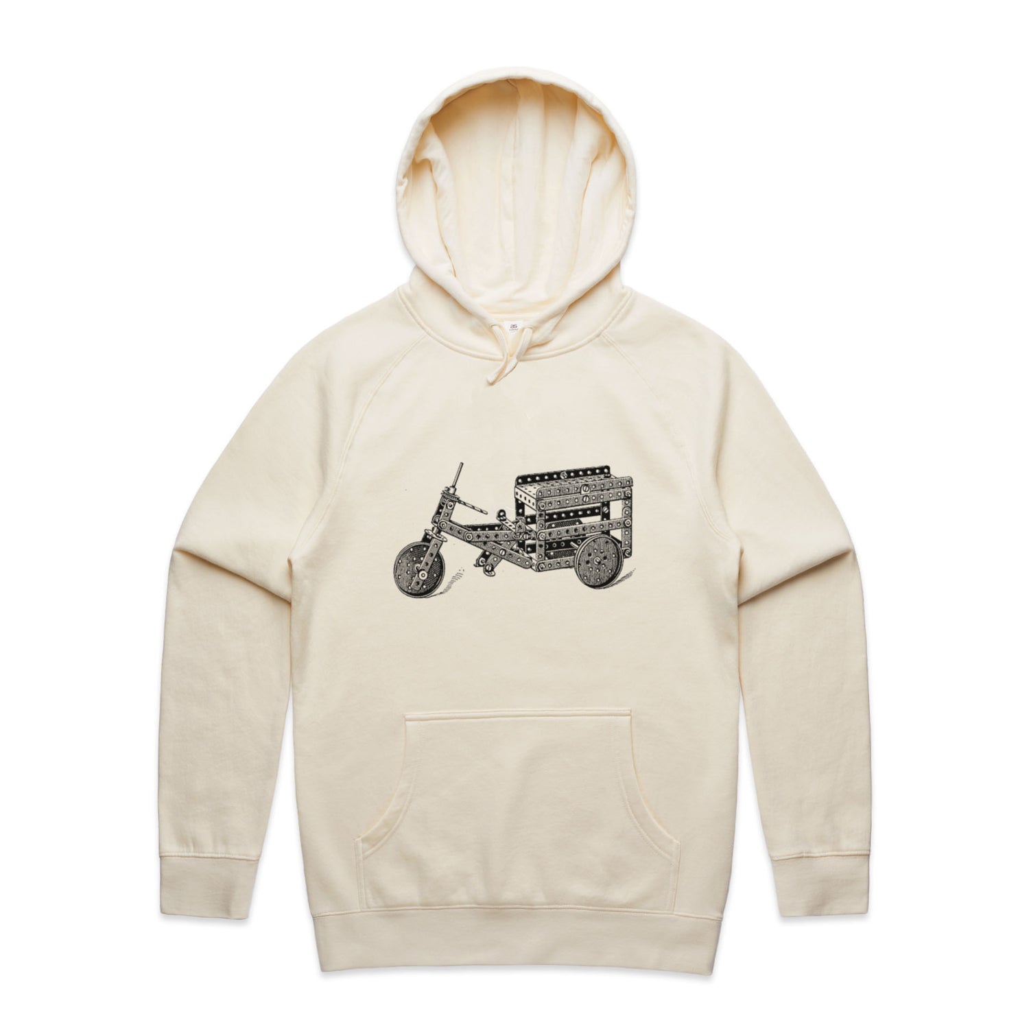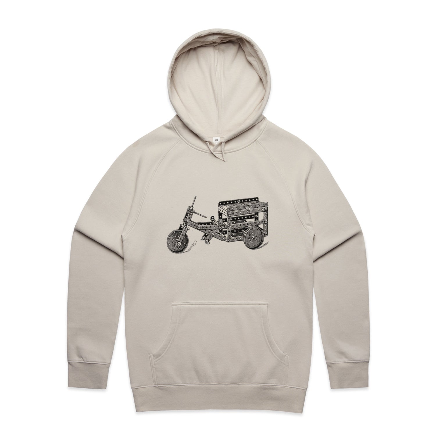 The Hoodies Old Metal Toy – Men's Hooded Sweatshirt is a high-quality men's hooded sweatshirt, printed with black ink on the trusted AS Colour Supply Hood 5101. With a regular fit and mid-weight feel, it's crafted from a premium blend of 80% cotton and 20% polyester anti-pill fleece, making it a durable and comfortable staple for any wardrobe. The pullover design features raglan sleeves, a lined hood with tonal drawcord, ribbed sleeve cuffs, and a roomy kangaroo pocket — all designed to keep you warm while looking effortlessly sharp.