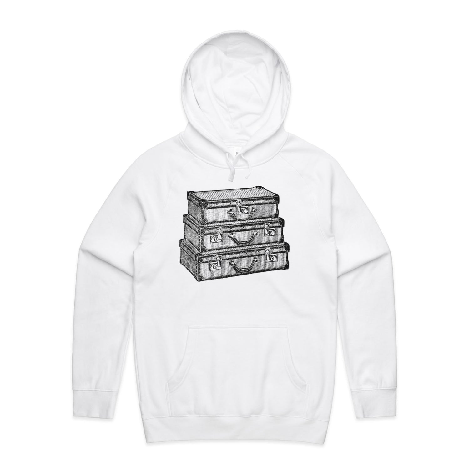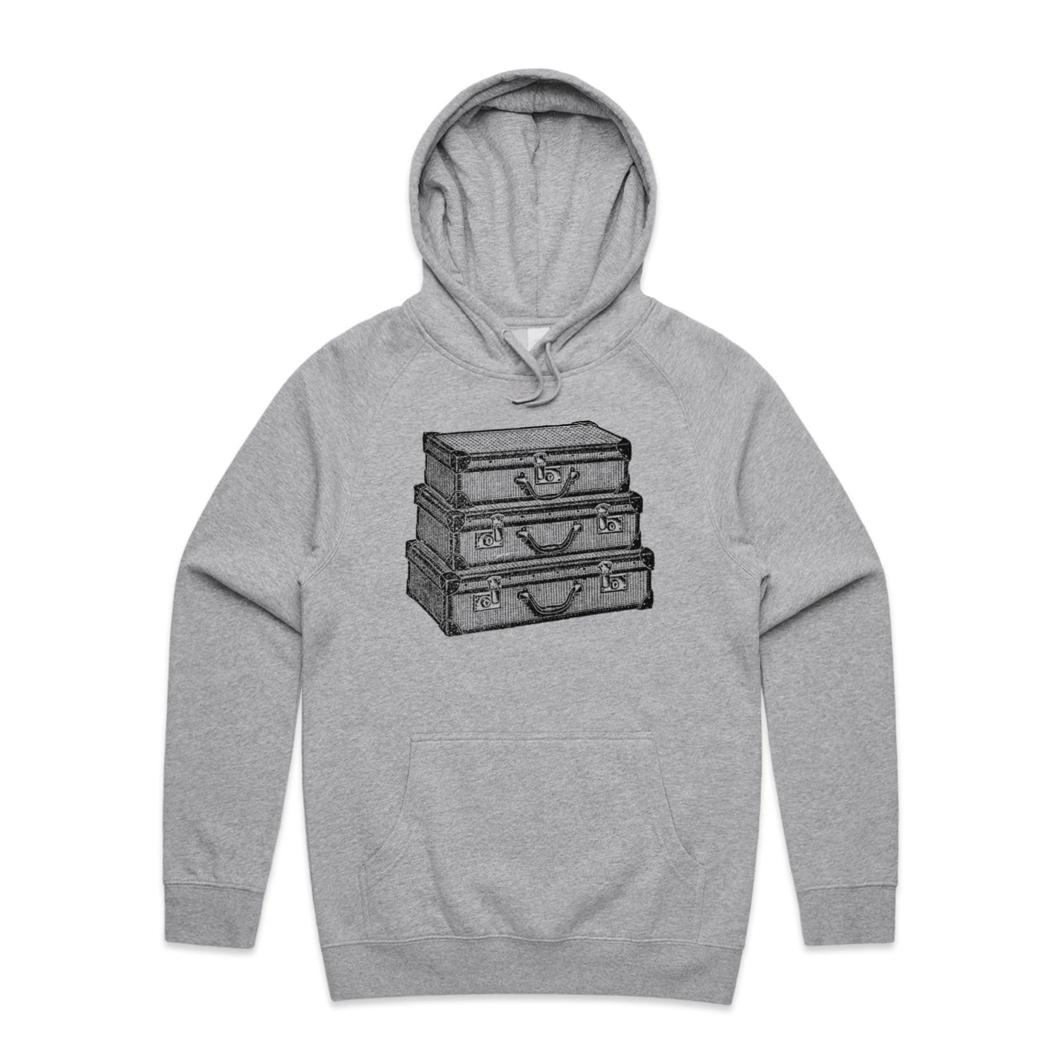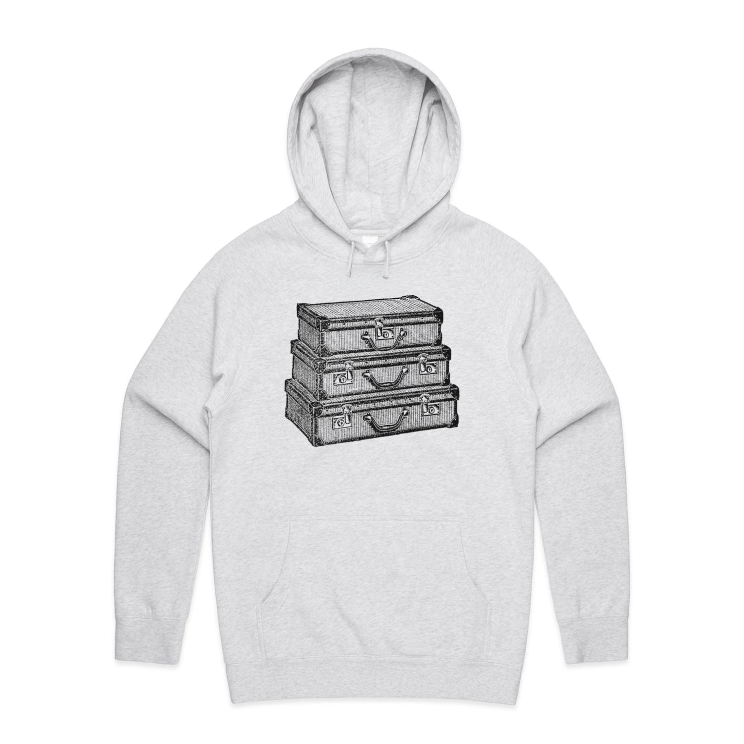 The Hoodies Traveling Suitcases – Men's Hooded Sweatshirt is a high-quality men's hooded sweatshirt, printed with black ink on the trusted AS Colour Supply Hood 5101. With a regular fit and mid-weight feel, it's crafted from a premium blend of 80% cotton and 20% polyester anti-pill fleece, making it a durable and comfortable staple for any wardrobe. The pullover design features raglan sleeves, a lined hood with tonal drawcord, ribbed sleeve cuffs, and a roomy kangaroo pocket — all designed to keep you warm while looking effortlessly sharp.