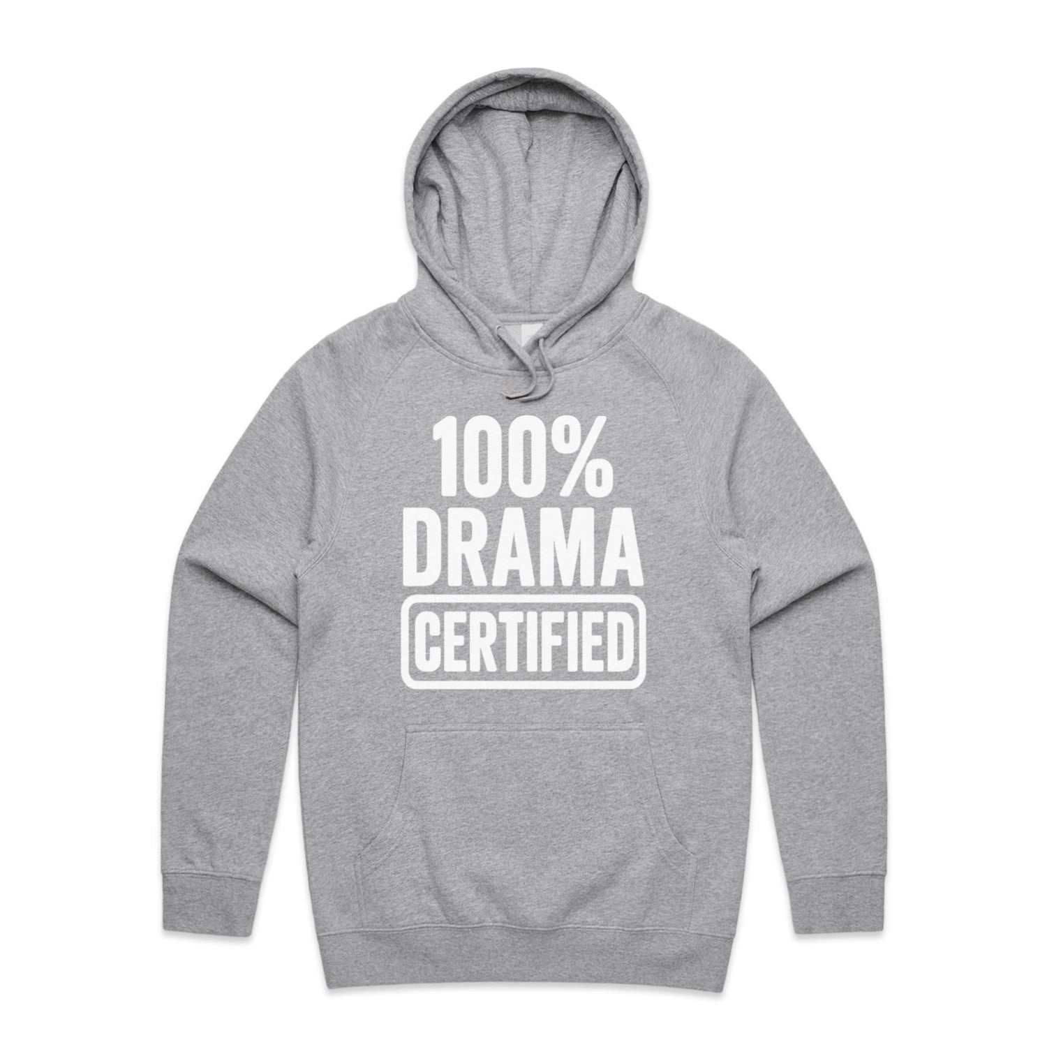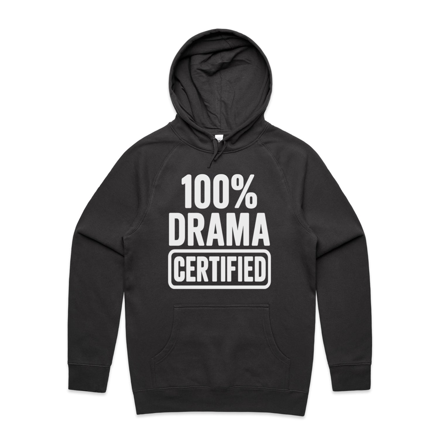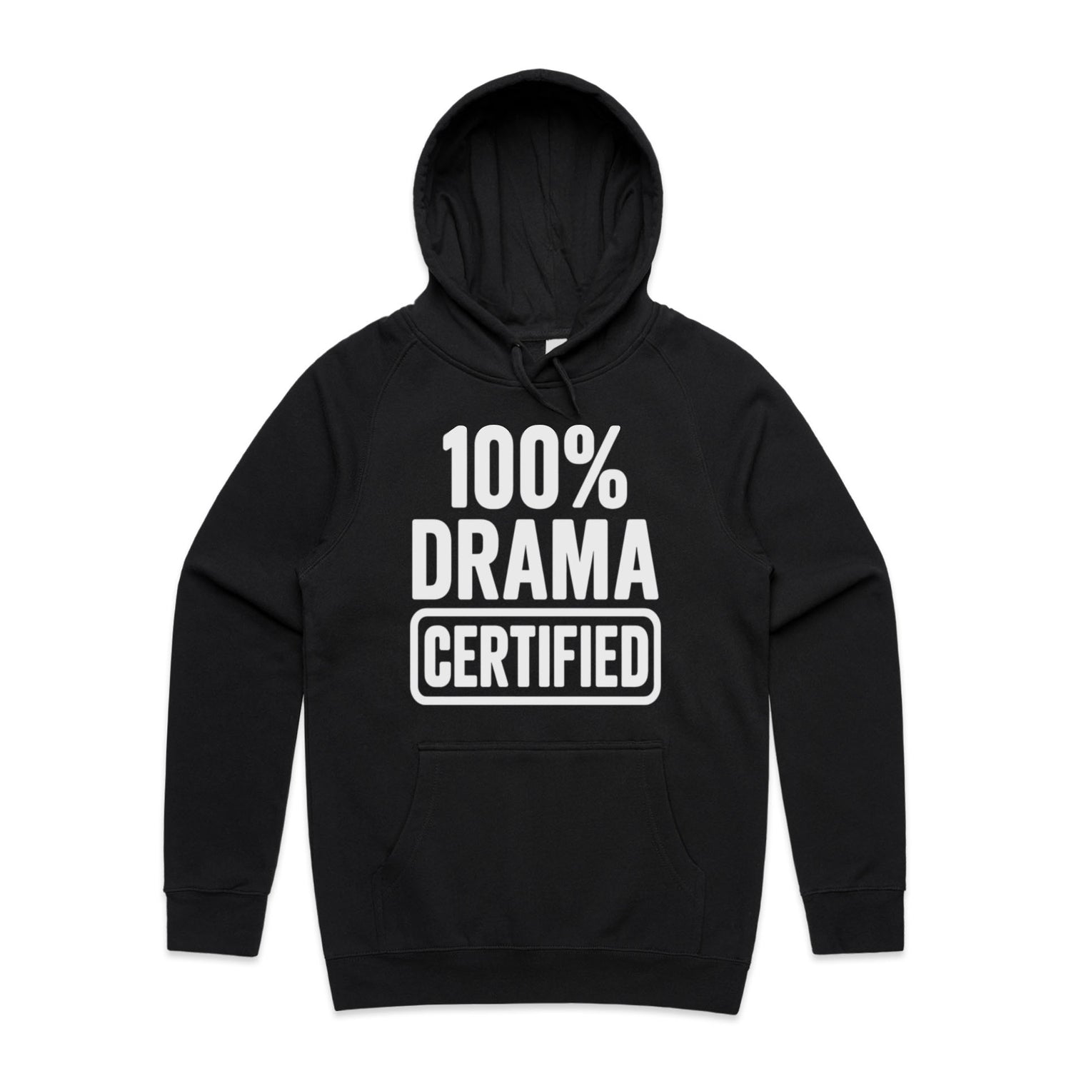 The Hoodies 100% DRAMA CERTIFIED – Men's Hooded Sweatshirt is a high-quality men's hooded sweatshirt, printed with white ink on the trusted AS Colour Supply Hood 5101. With a regular fit and mid-weight feel, it's crafted from a premium blend of 80% cotton and 20% polyester anti-pill fleece, making it a durable and comfortable staple for any wardrobe. The pullover design features raglan sleeves, a lined hood with tonal drawcord, ribbed sleeve cuffs, and a roomy kangaroo pocket — all designed to keep you warm while looking effortlessly sharp.