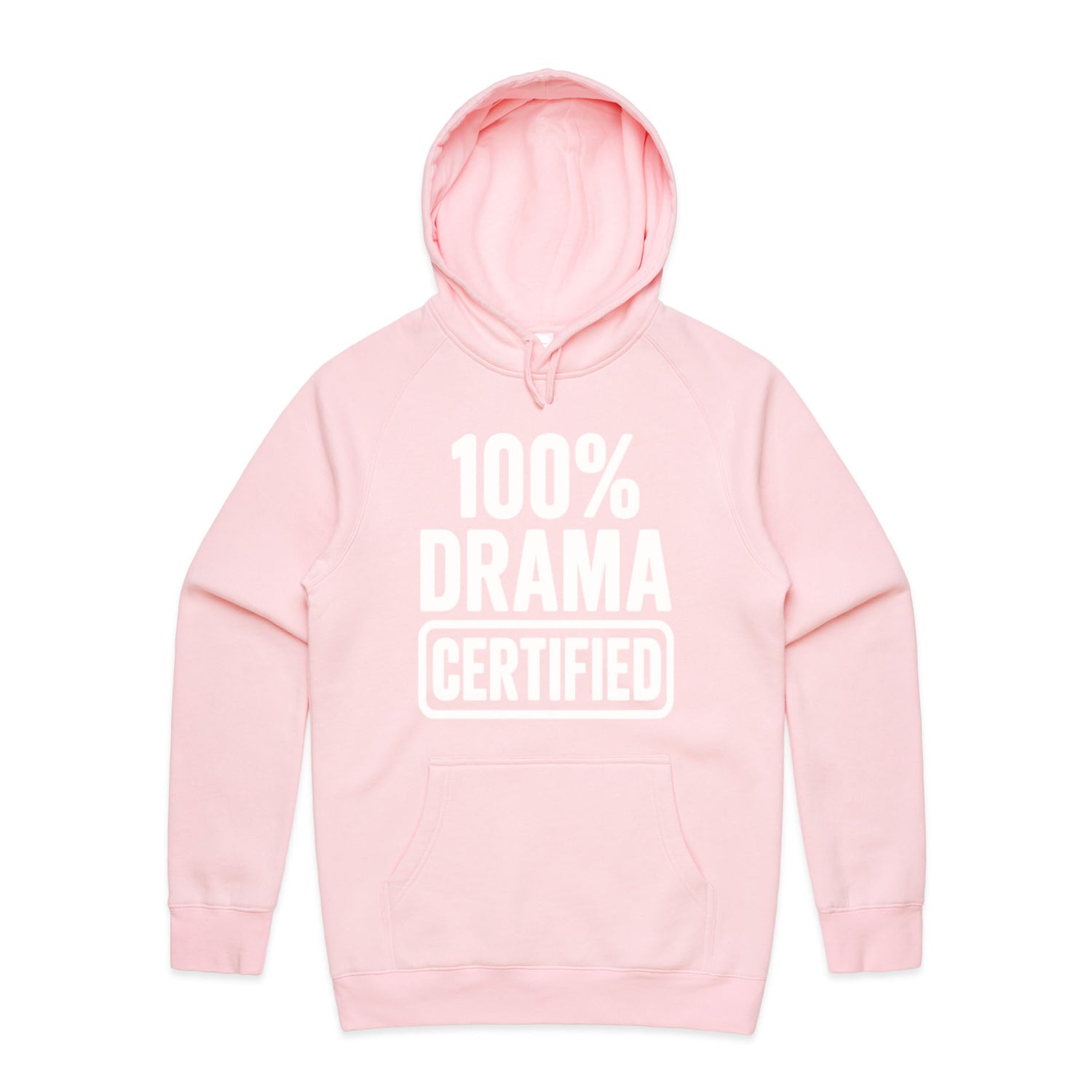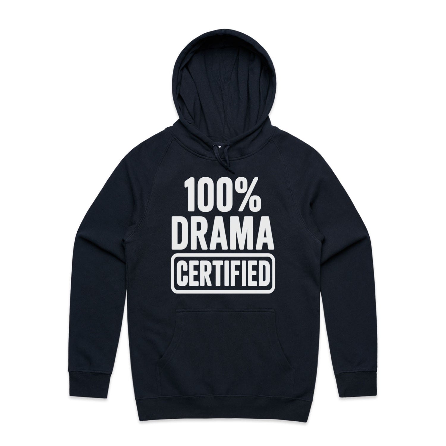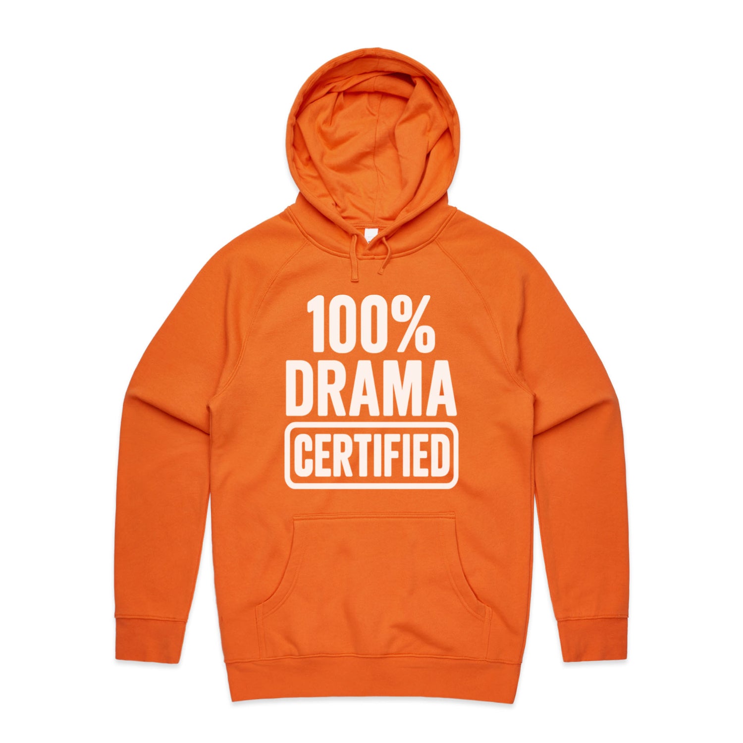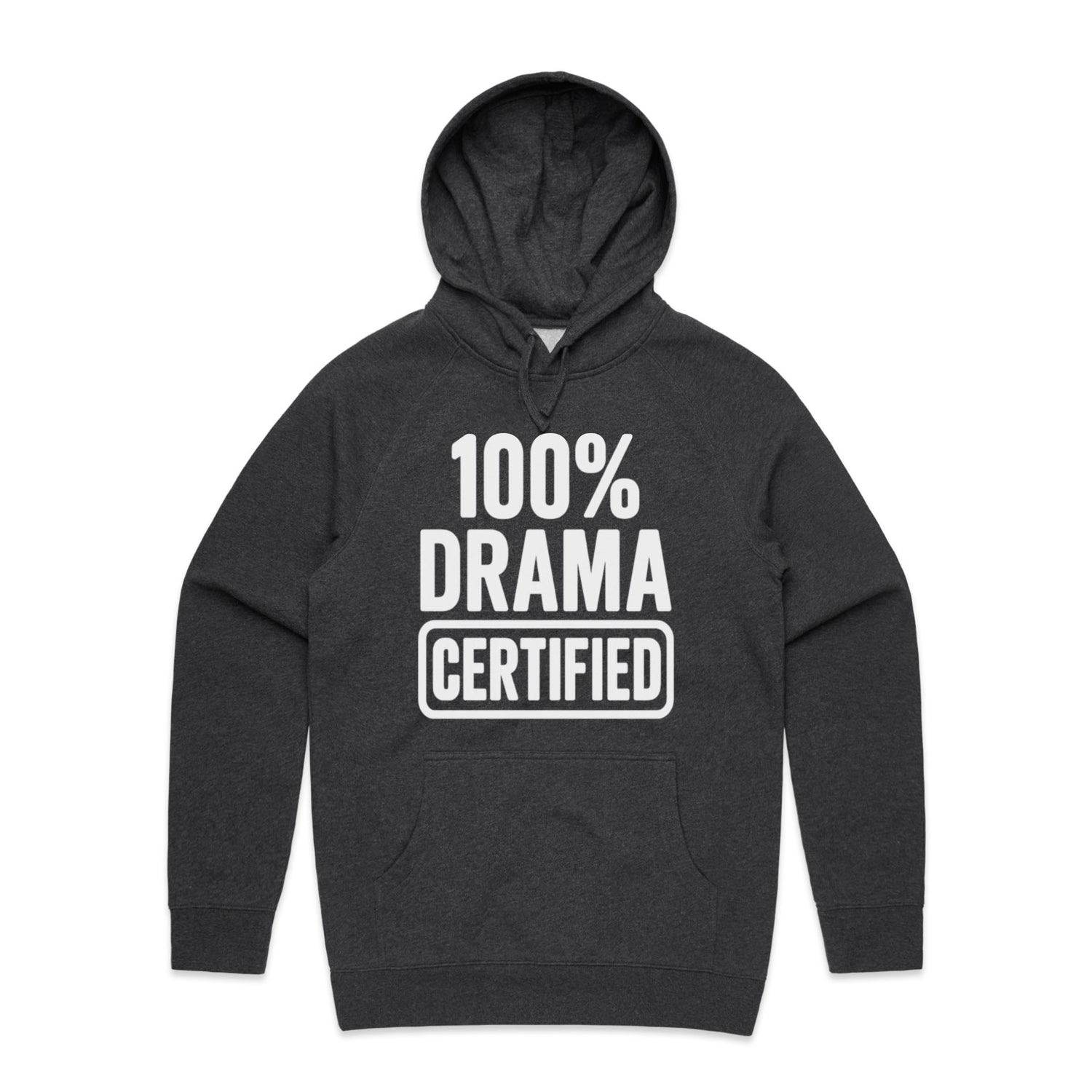 The Hoodies 100% DRAMA CERTIFIED – Men's Hooded Sweatshirt is a high-quality men's hooded sweatshirt, printed with white ink on the trusted AS Colour Supply Hood 5101. With a regular fit and mid-weight feel, it's crafted from a premium blend of 80% cotton and 20% polyester anti-pill fleece, making it a durable and comfortable staple for any wardrobe. The pullover design features raglan sleeves, a lined hood with tonal drawcord, ribbed sleeve cuffs, and a roomy kangaroo pocket — all designed to keep you warm while looking effortlessly sharp.