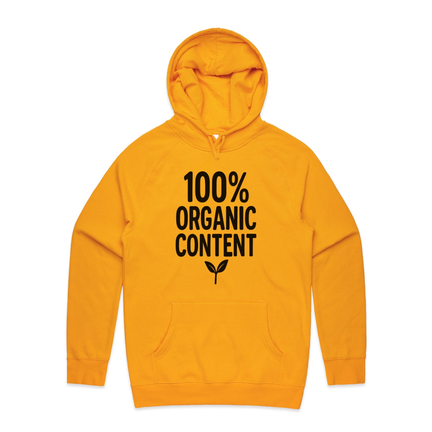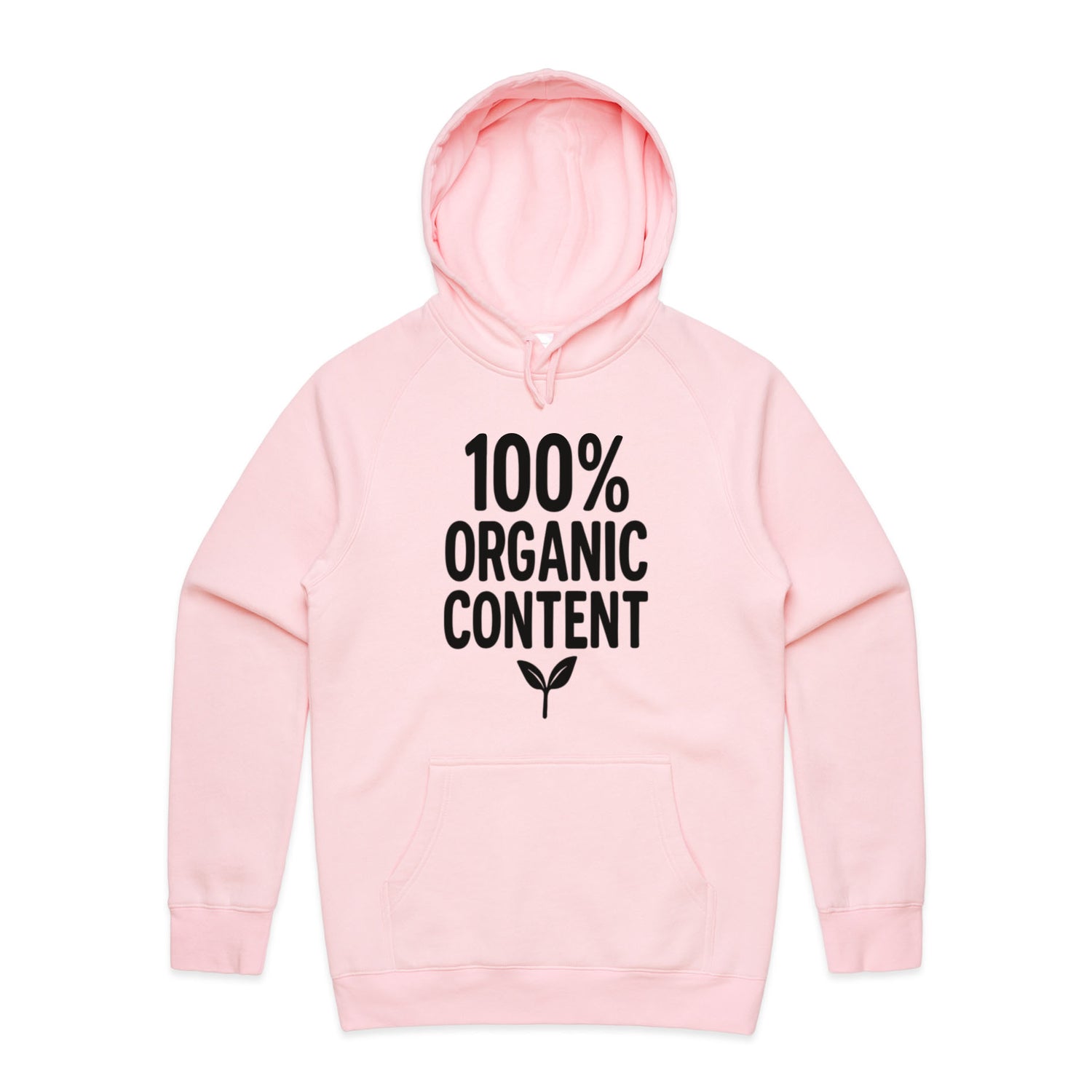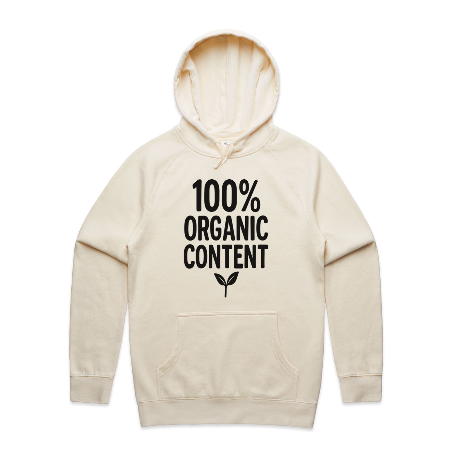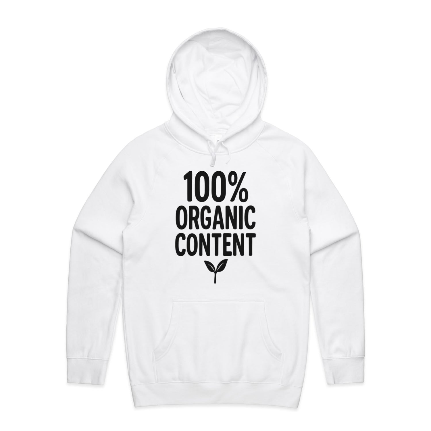 The Hoodies 100 Percent Organic Content – Men's Hooded Sweatshirt is a high-quality men's hooded sweatshirt, printed with black ink on the trusted AS Colour Supply Hood 5101. With a regular fit and mid-weight feel, it's crafted from a premium blend of 80% cotton and 20% polyester anti-pill fleece, making it a durable and comfortable staple for any wardrobe. The pullover design features raglan sleeves, a lined hood with tonal drawcord, ribbed sleeve cuffs, and a roomy kangaroo pocket — all designed to keep you warm while looking effortlessly sharp.