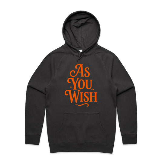 The Hoodies As You Wish – Men's Hooded Sweatshirt is a high-quality men's hooded sweatshirt, printed with orange ink on the trusted AS Colour Supply Hood 5101. With a regular fit and mid-weight feel, it's crafted from a premium blend of 80% cotton and 20% polyester anti-pill fleece, making it a durable and comfortable staple for any wardrobe. The pullover design features raglan sleeves, a lined hood with tonal drawcord, ribbed sleeve cuffs, and a roomy kangaroo pocket — all designed to keep you warm while looking effortlessly sharp.