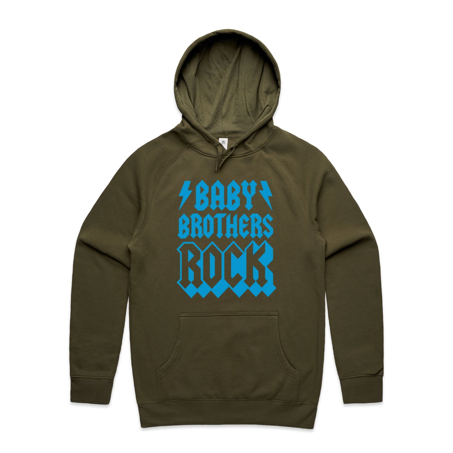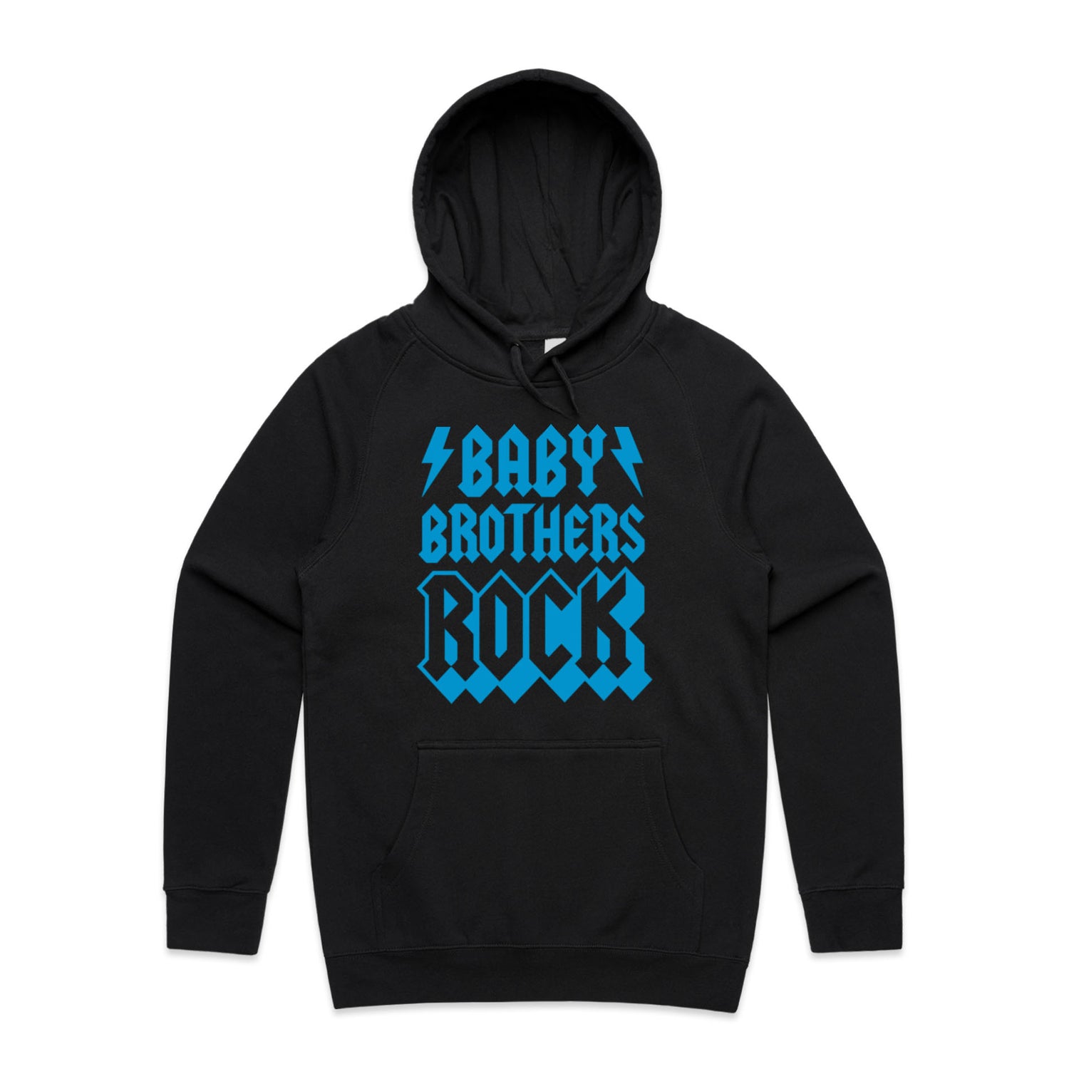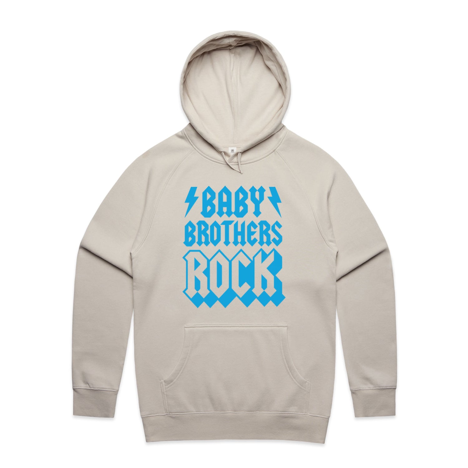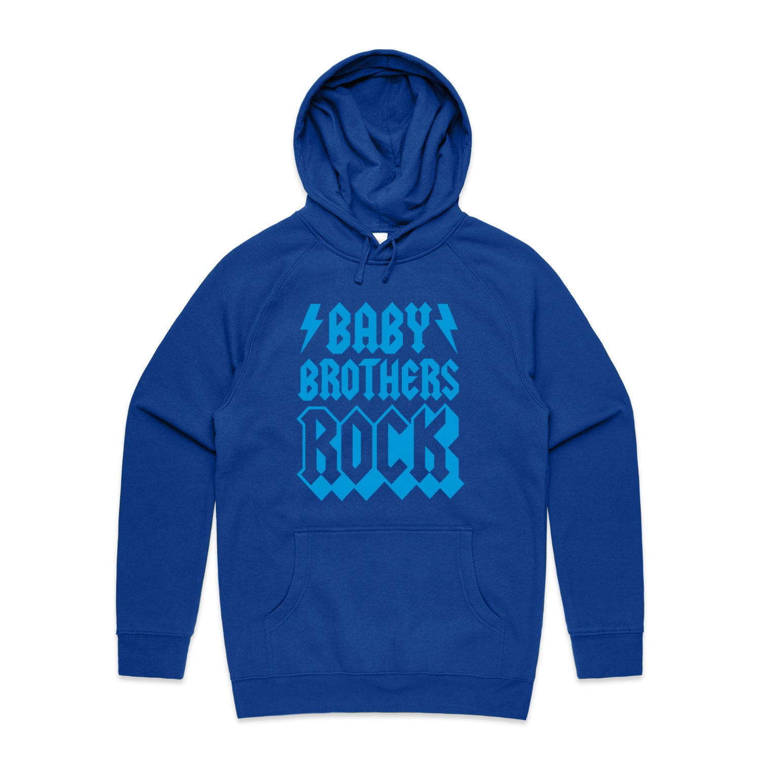 The Hoodies Baby Brother's Rock – Men's Hooded Sweatshirt is a high-quality men's hooded sweatshirt, printed with bright blue ink on the trusted AS Colour Supply Hood 5101. With a regular fit and mid-weight feel, it's crafted from a premium blend of 80% cotton and 20% polyester anti-pill fleece, making it a durable and comfortable staple for any wardrobe. The pullover design features raglan sleeves, a lined hood with tonal drawcord, ribbed sleeve cuffs, and a roomy kangaroo pocket — all designed to keep you warm while looking effortlessly sharp.