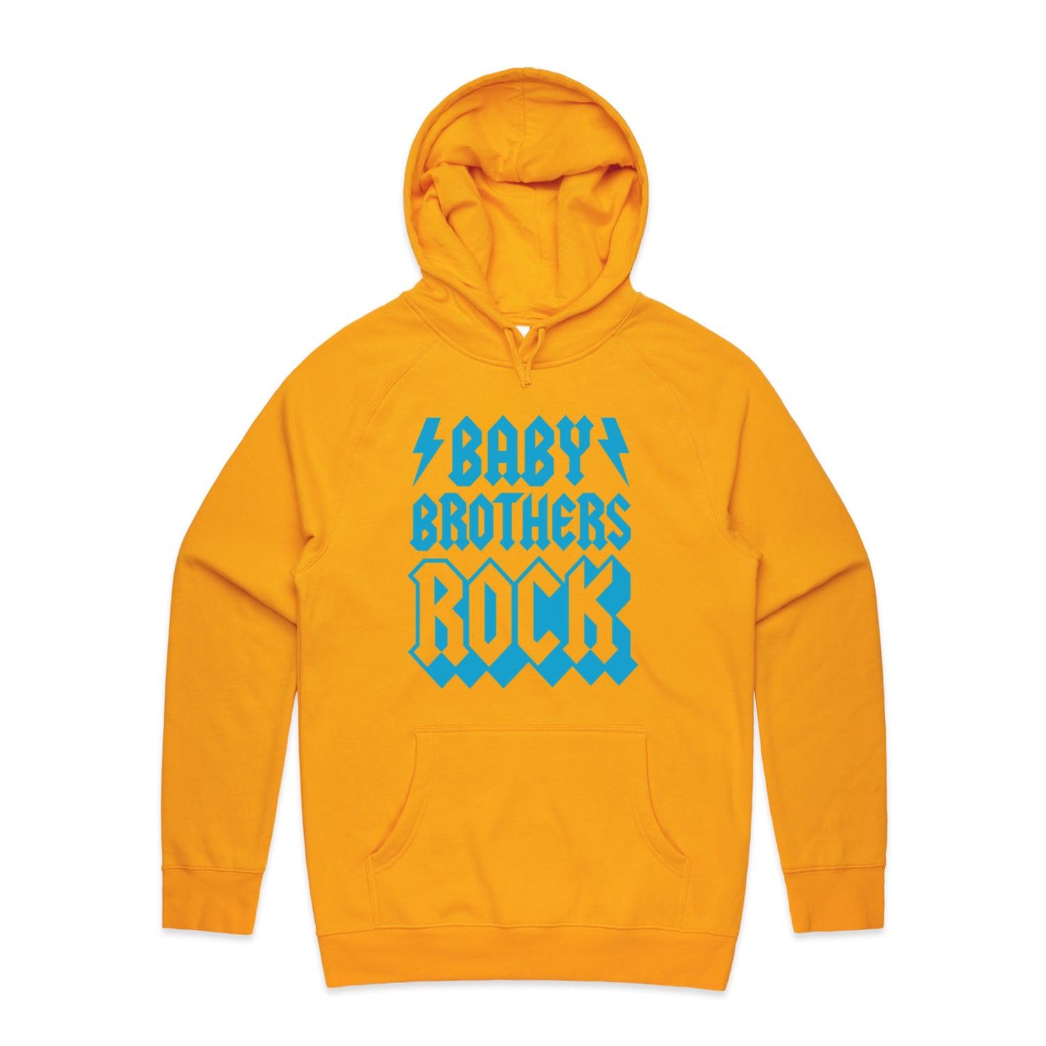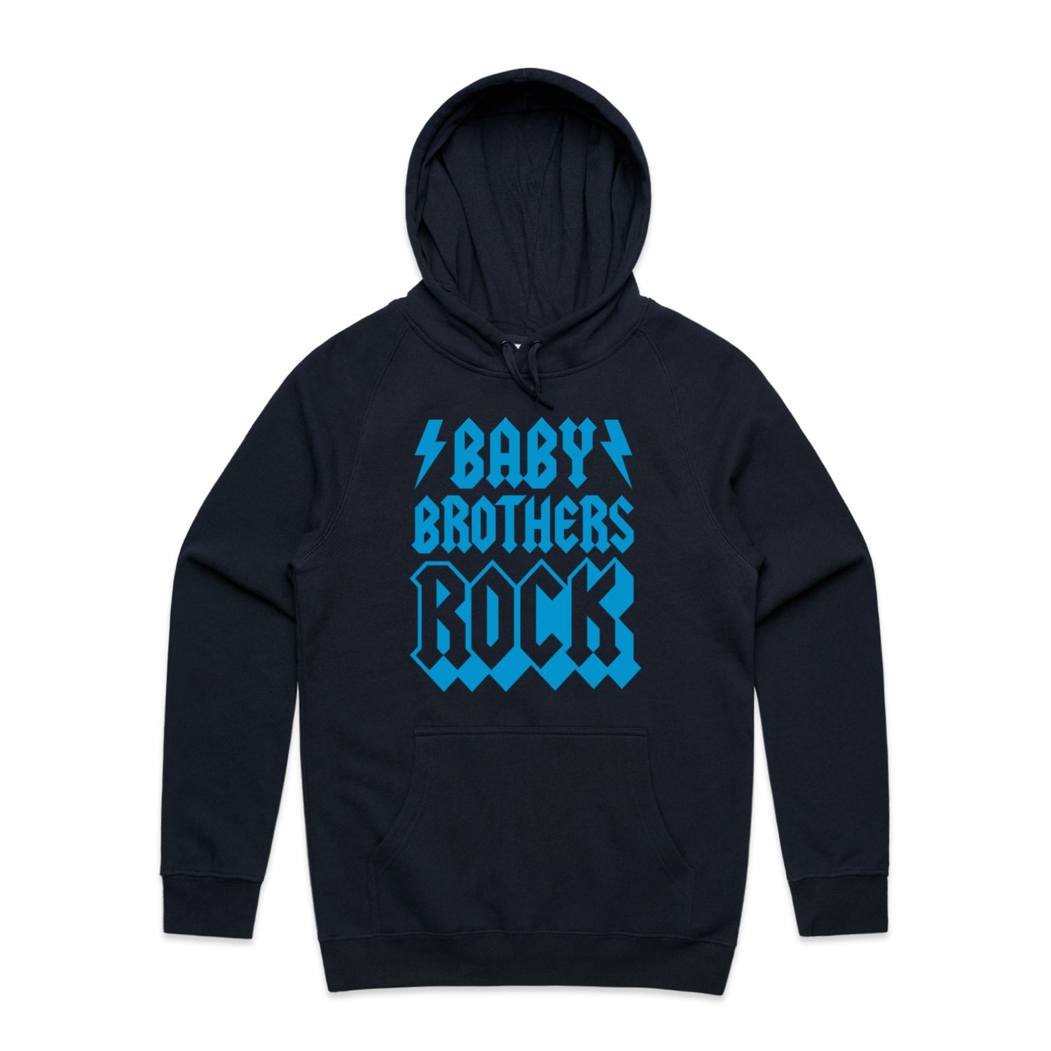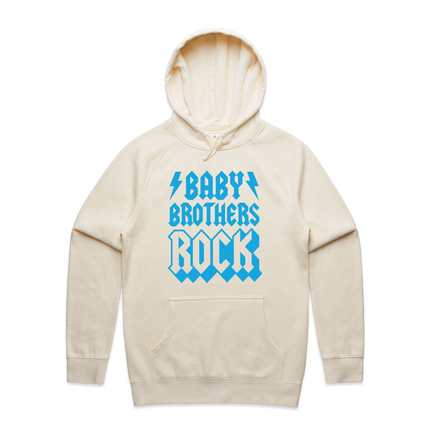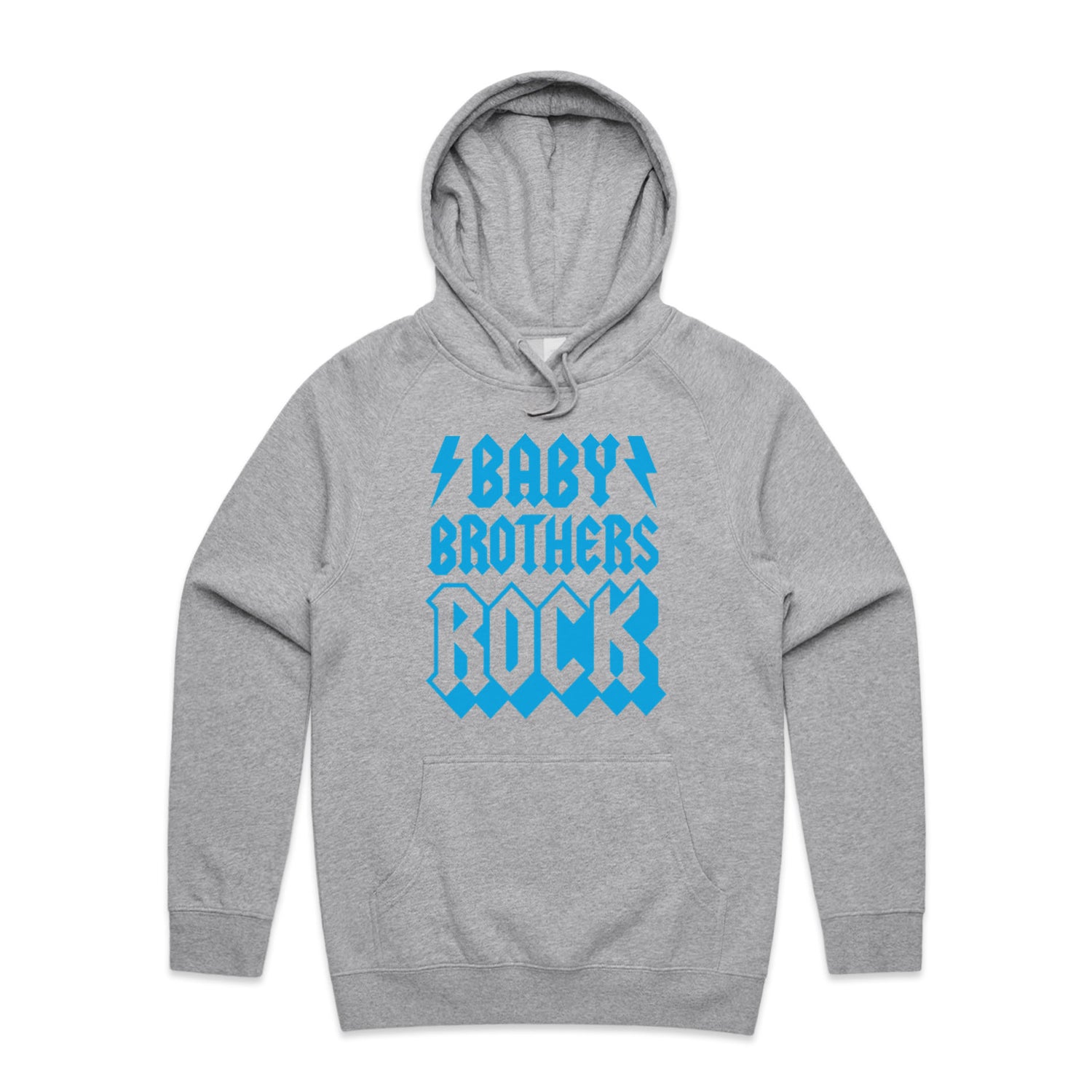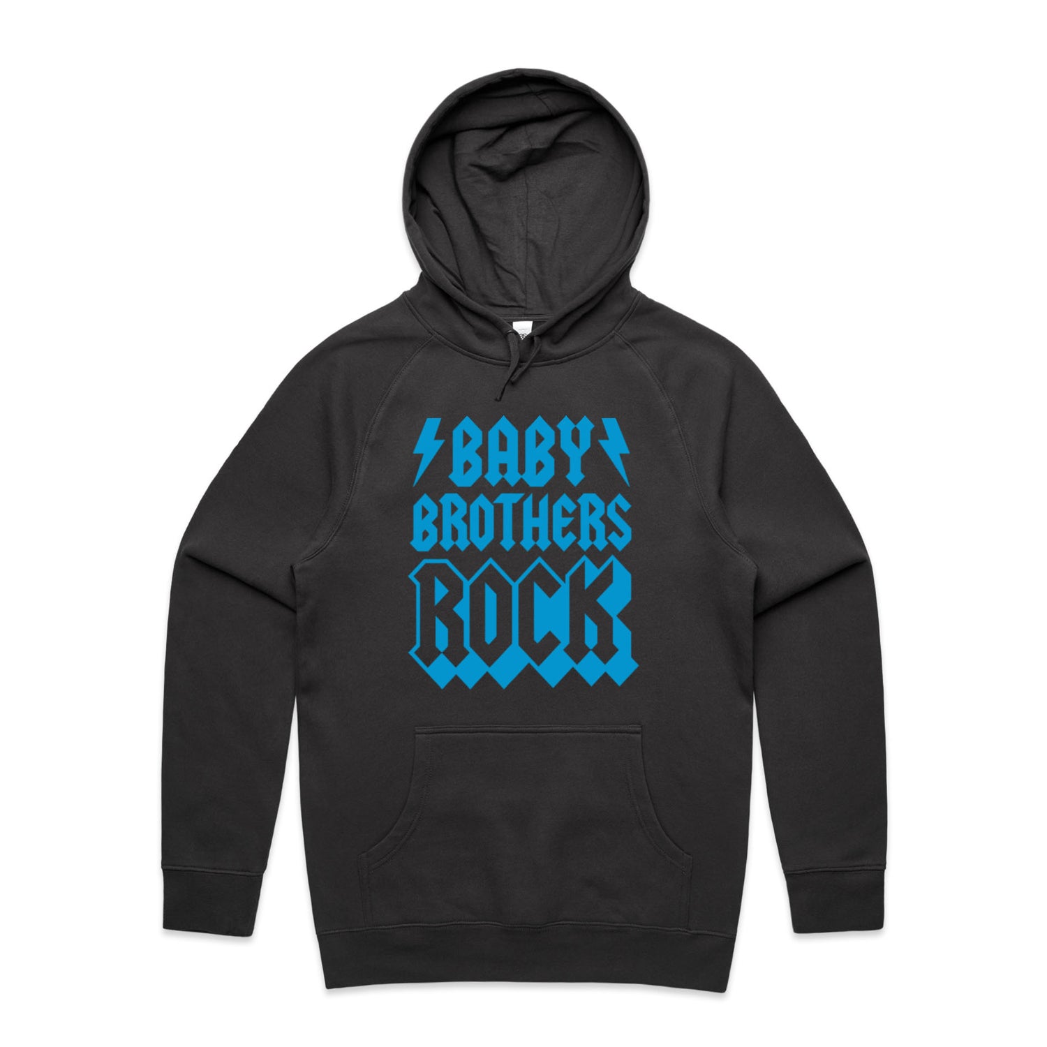 The Hoodies Baby Brother's Rock – Men's Hooded Sweatshirt is a high-quality men's hooded sweatshirt, printed with bright blue ink on the trusted AS Colour Supply Hood 5101. With a regular fit and mid-weight feel, it's crafted from a premium blend of 80% cotton and 20% polyester anti-pill fleece, making it a durable and comfortable staple for any wardrobe. The pullover design features raglan sleeves, a lined hood with tonal drawcord, ribbed sleeve cuffs, and a roomy kangaroo pocket — all designed to keep you warm while looking effortlessly sharp.