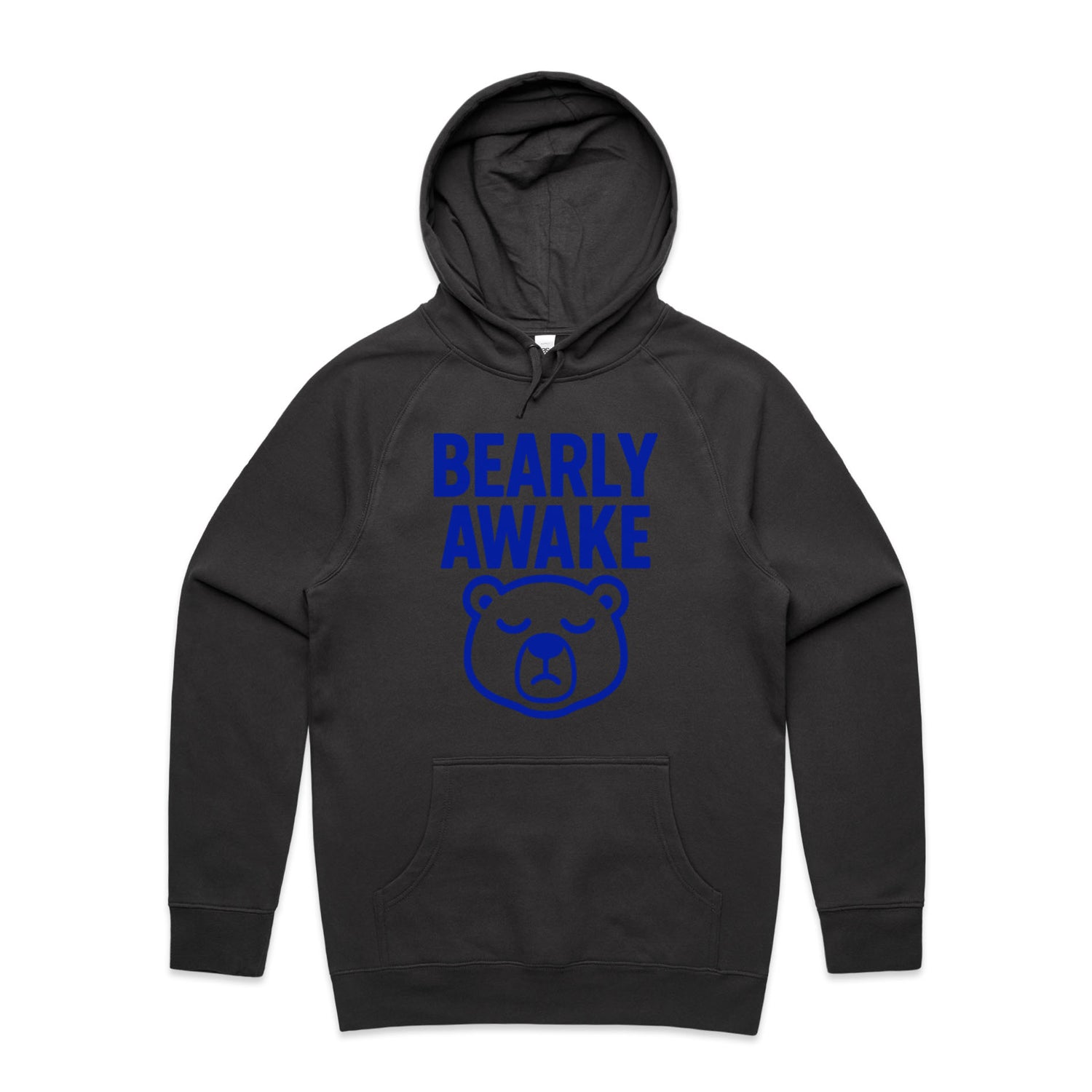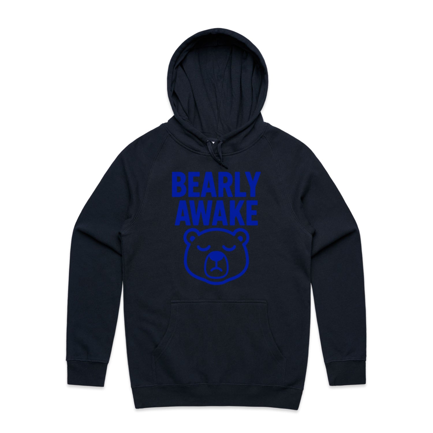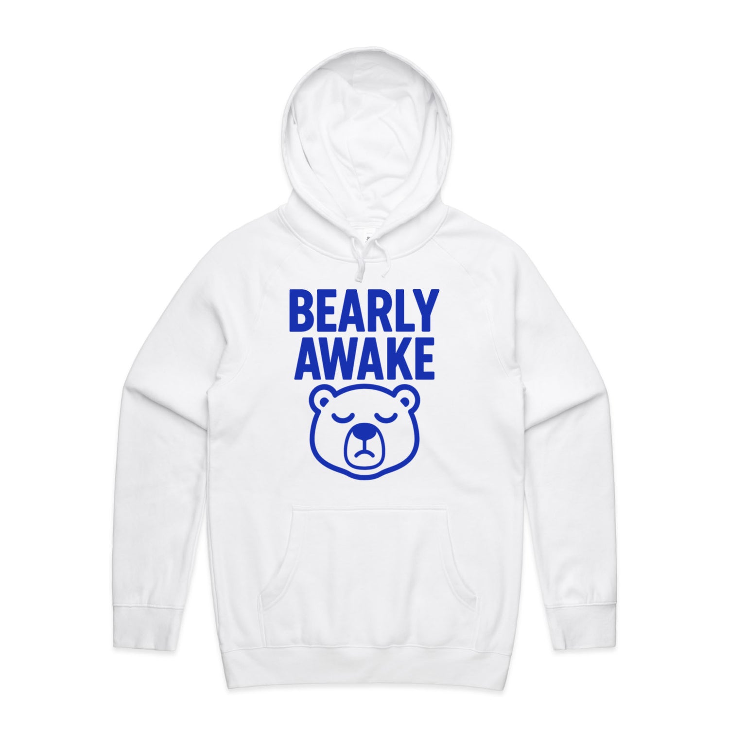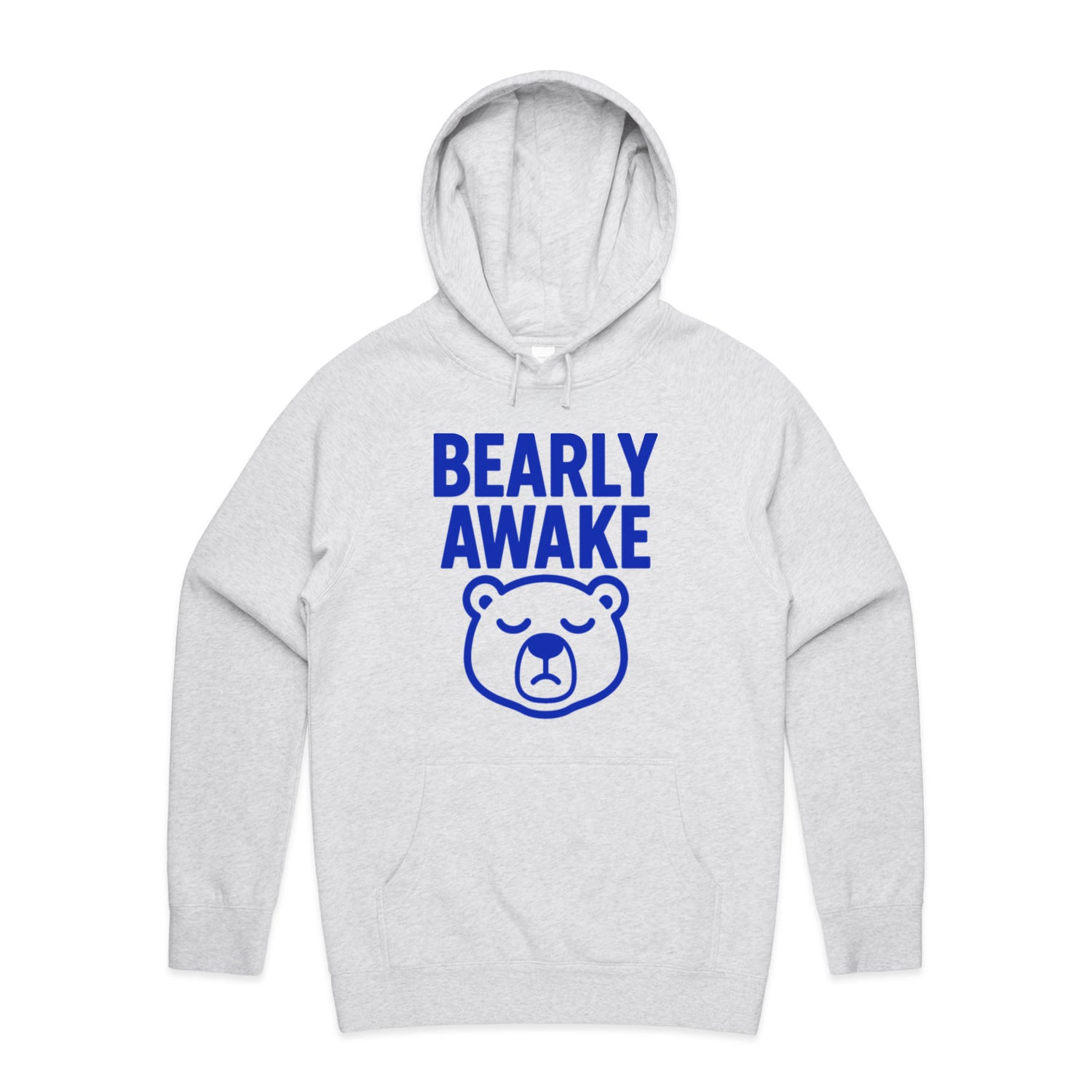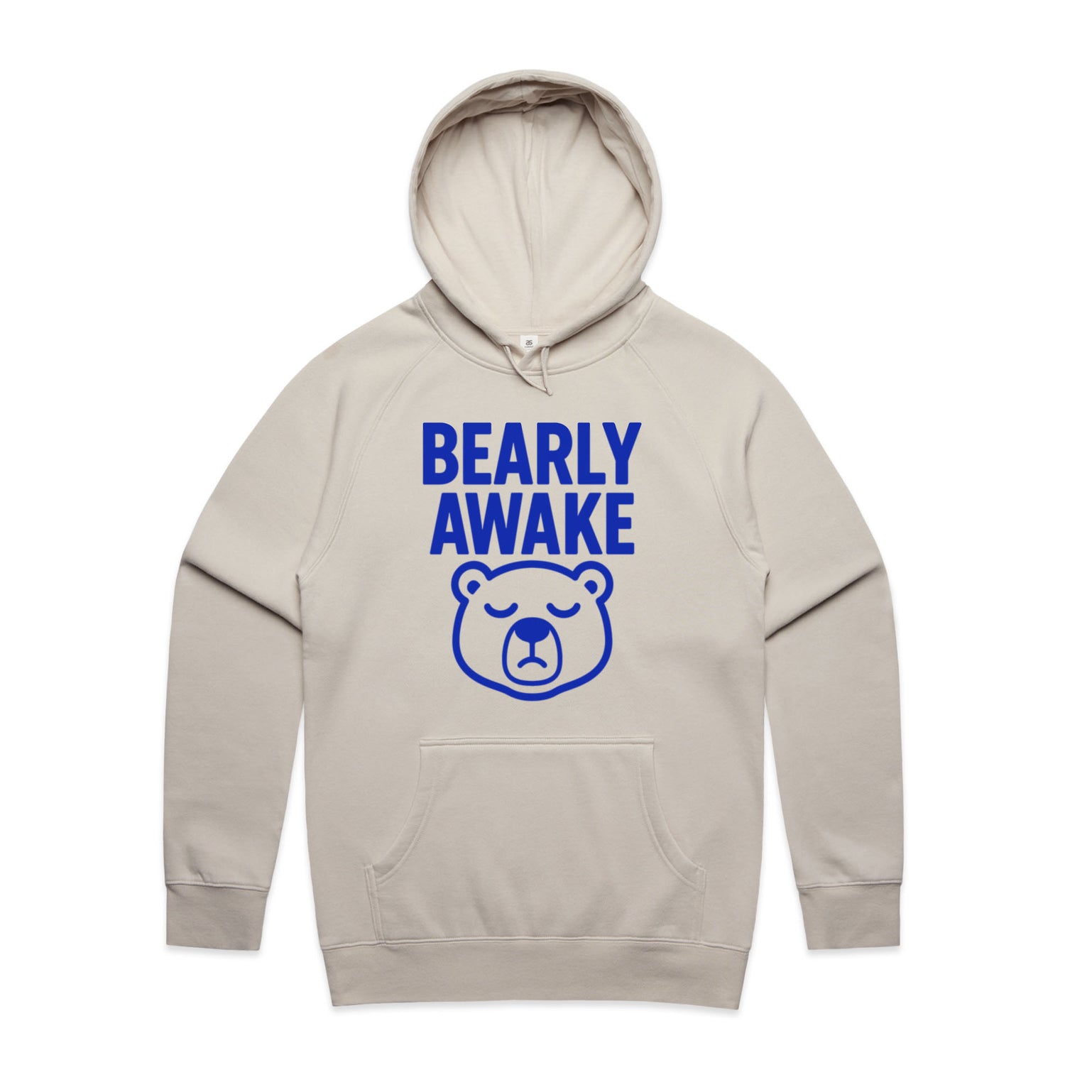 The Hoodies Barely Awake Bear – Men's Hooded Sweatshirt is a high-quality men's hooded sweatshirt, printed with blue ink on the trusted AS Colour Supply Hood 5101. With a regular fit and mid-weight feel, it's crafted from a premium blend of 80% cotton and 20% polyester anti-pill fleece, making it a durable and comfortable staple for any wardrobe. The pullover design features raglan sleeves, a lined hood with tonal drawcord, ribbed sleeve cuffs, and a roomy kangaroo pocket — all designed to keep you warm while looking effortlessly sharp.