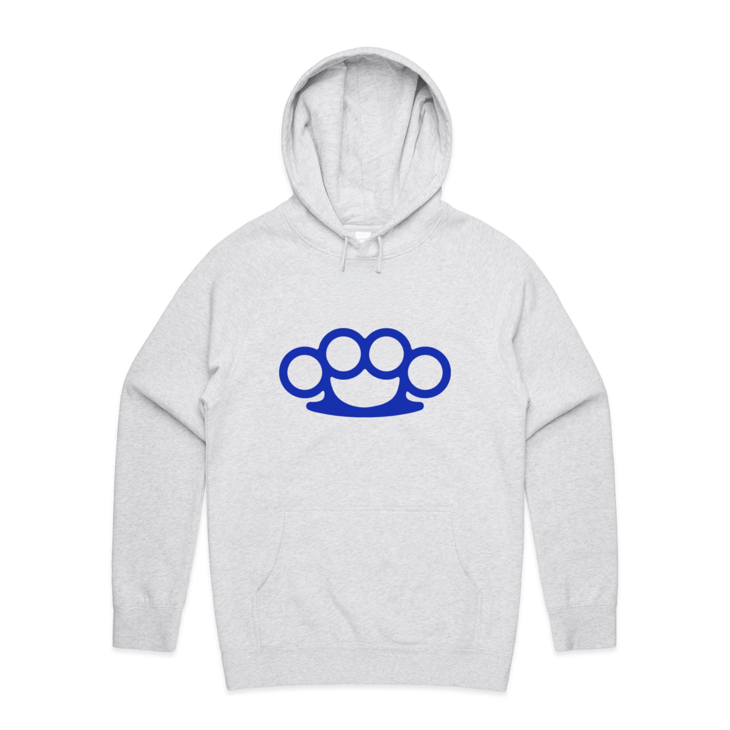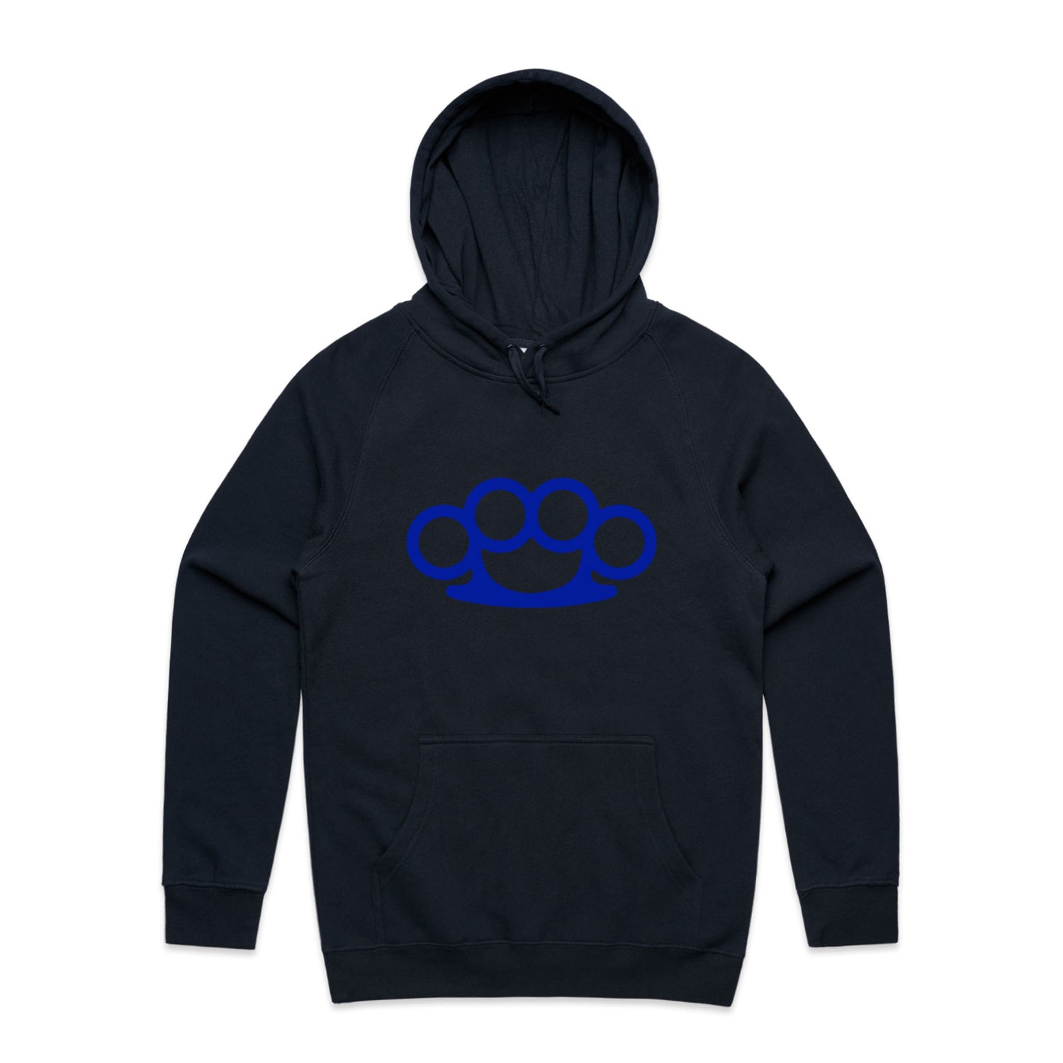 The Hoodies Brass Knuckles – Men's Hooded Sweatshirt is a high-quality men's hooded sweatshirt, printed with blue ink on the trusted AS Colour Supply Hood 5101. With a regular fit and mid-weight feel, it's crafted from a premium blend of 80% cotton and 20% polyester anti-pill fleece, making it a durable and comfortable staple for any wardrobe. The pullover design features raglan sleeves, a lined hood with tonal drawcord, ribbed sleeve cuffs, and a roomy kangaroo pocket — all designed to keep you warm while looking effortlessly sharp.