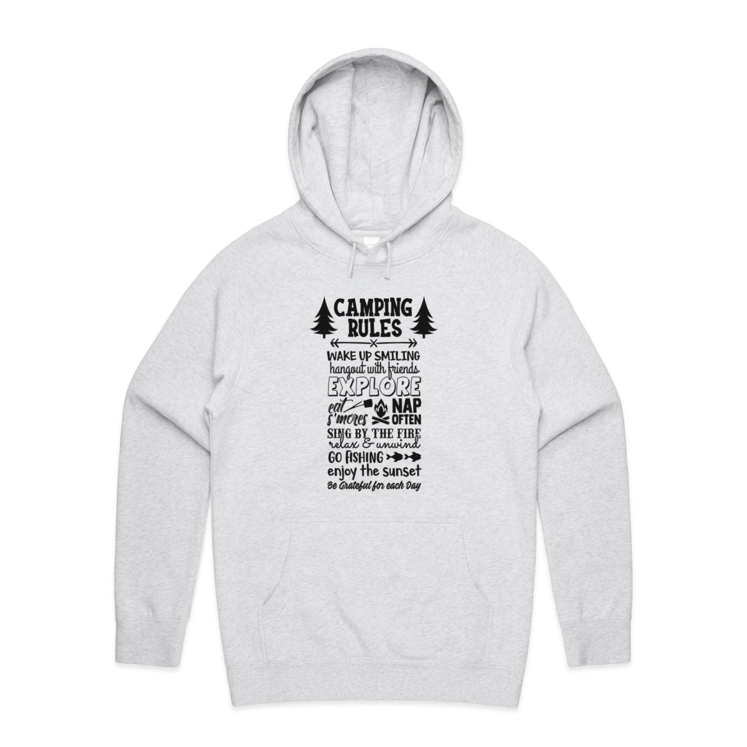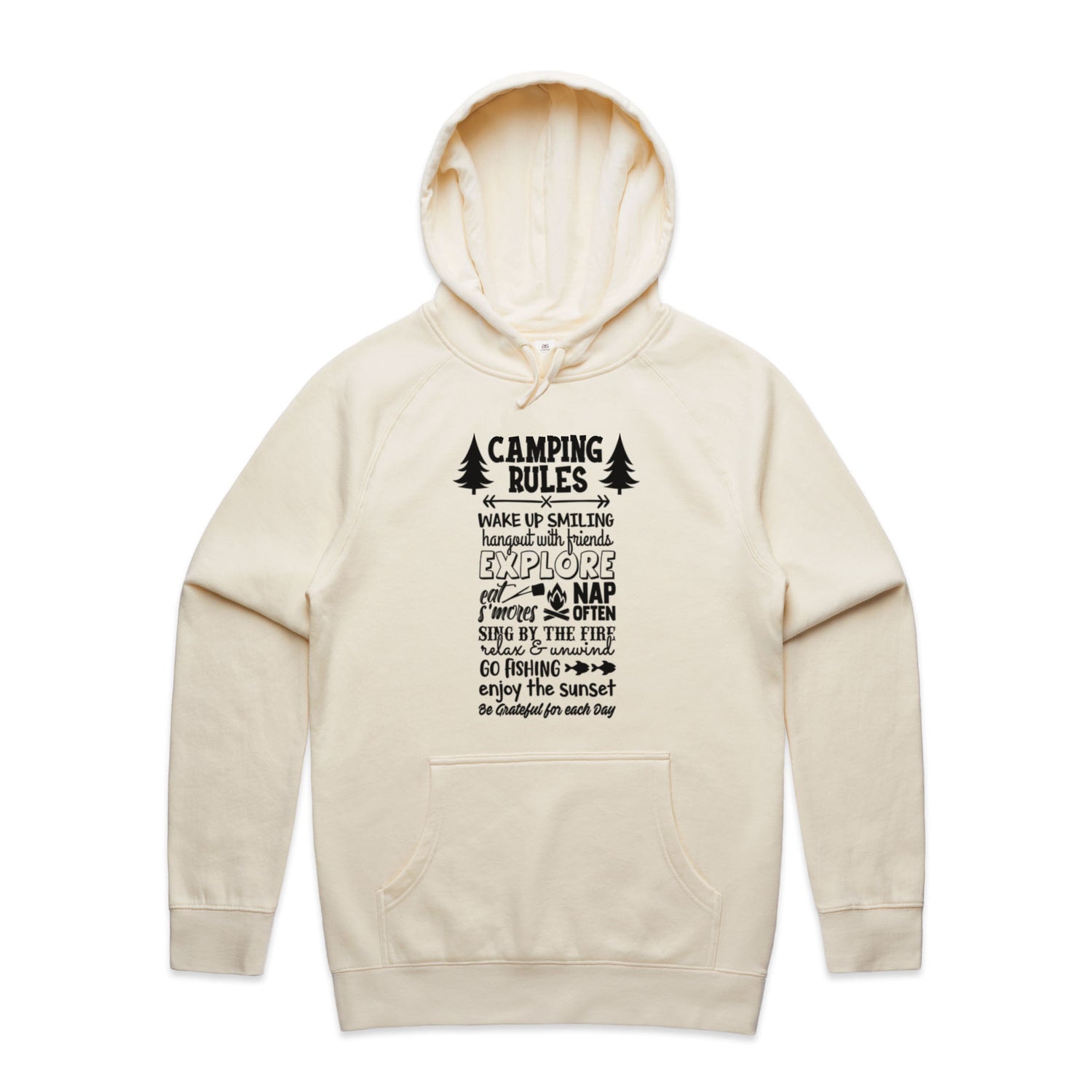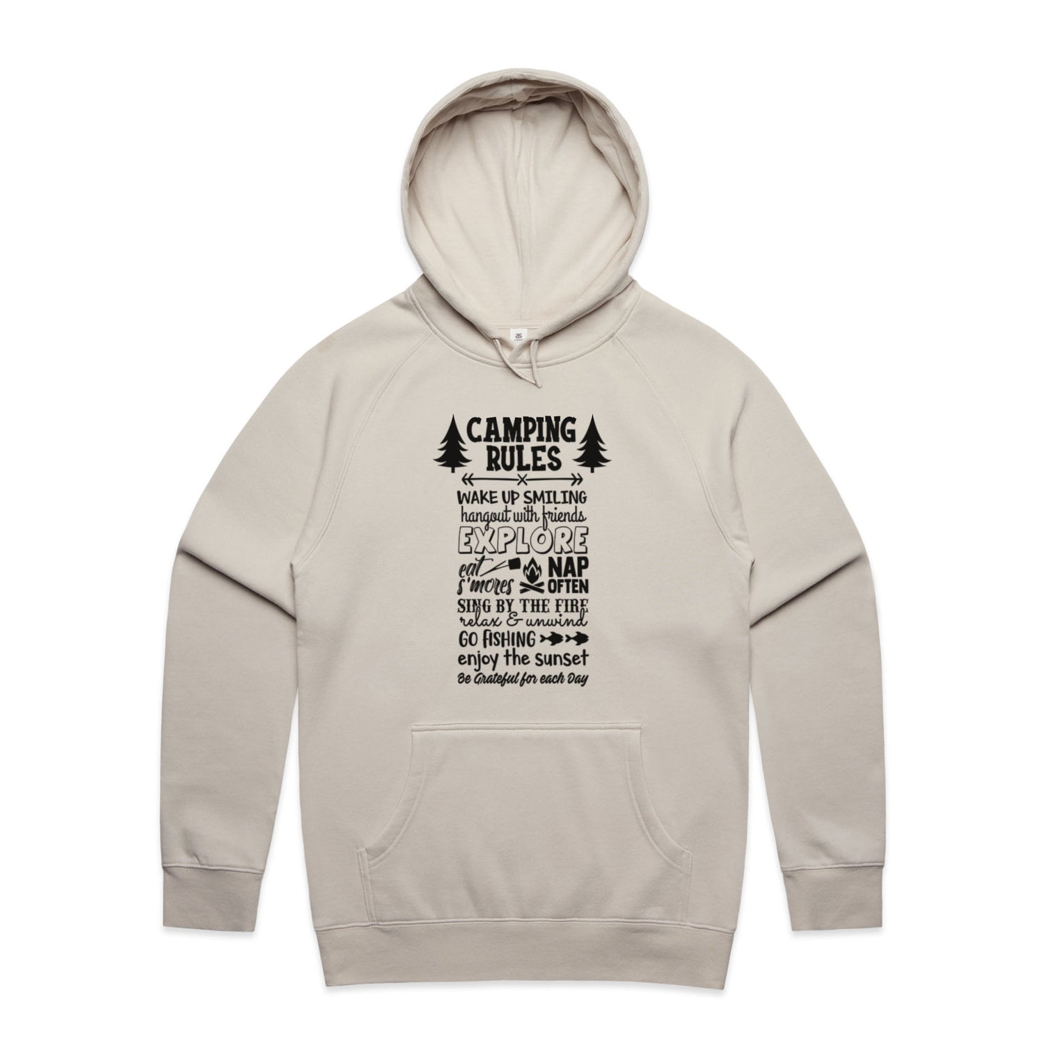 The Hoodies Camping Essentials – Men's Hooded Sweatshirt is a high-quality men's hooded sweatshirt, printed with black ink on the trusted AS Colour Supply Hood 5101. With a regular fit and mid-weight feel, it's crafted from a premium blend of 80% cotton and 20% polyester anti-pill fleece, making it a durable and comfortable staple for any wardrobe. The pullover design features raglan sleeves, a lined hood with tonal drawcord, ribbed sleeve cuffs, and a roomy kangaroo pocket — all designed to keep you warm while looking effortlessly sharp.