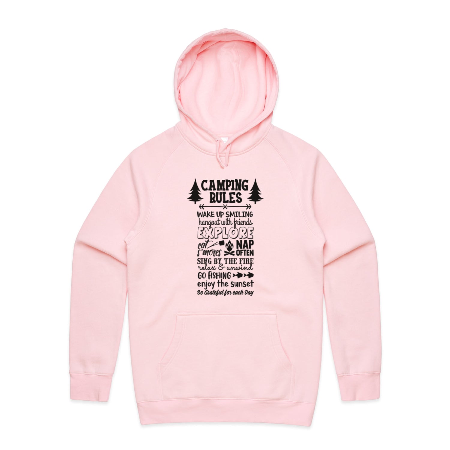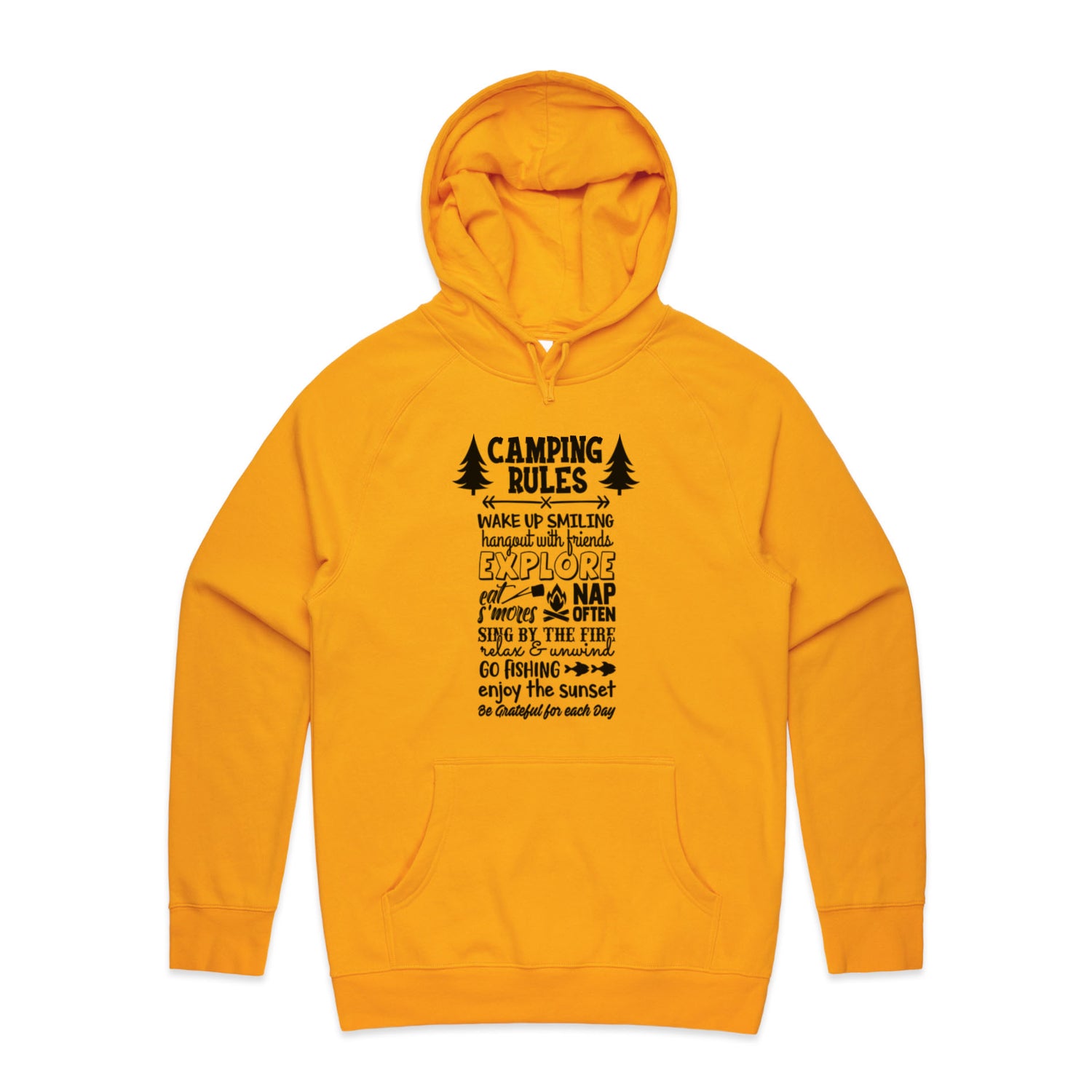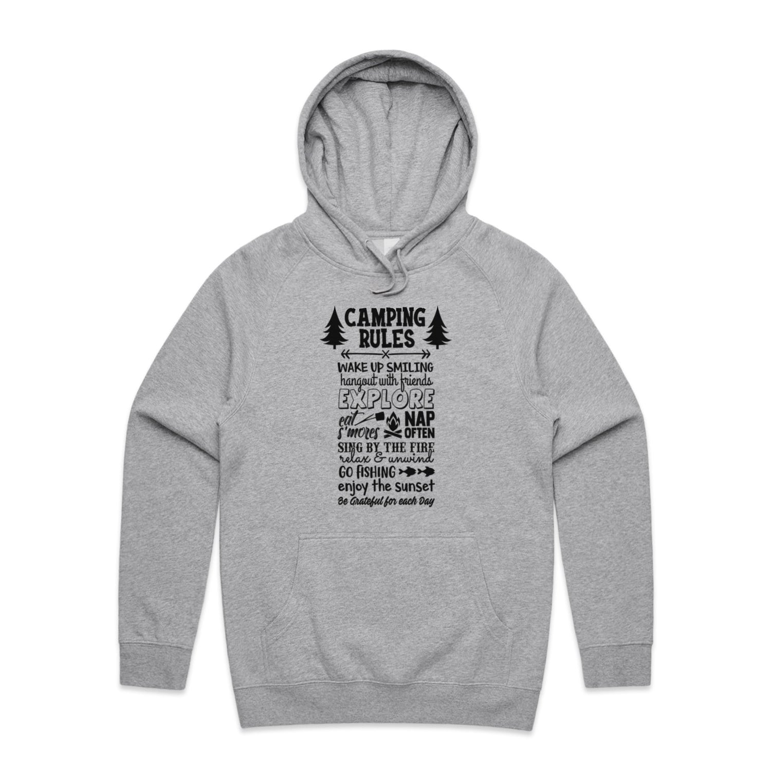 The Hoodies Camping Essentials – Men's Hooded Sweatshirt is a high-quality men's hooded sweatshirt, printed with black ink on the trusted AS Colour Supply Hood 5101. With a regular fit and mid-weight feel, it's crafted from a premium blend of 80% cotton and 20% polyester anti-pill fleece, making it a durable and comfortable staple for any wardrobe. The pullover design features raglan sleeves, a lined hood with tonal drawcord, ribbed sleeve cuffs, and a roomy kangaroo pocket — all designed to keep you warm while looking effortlessly sharp.