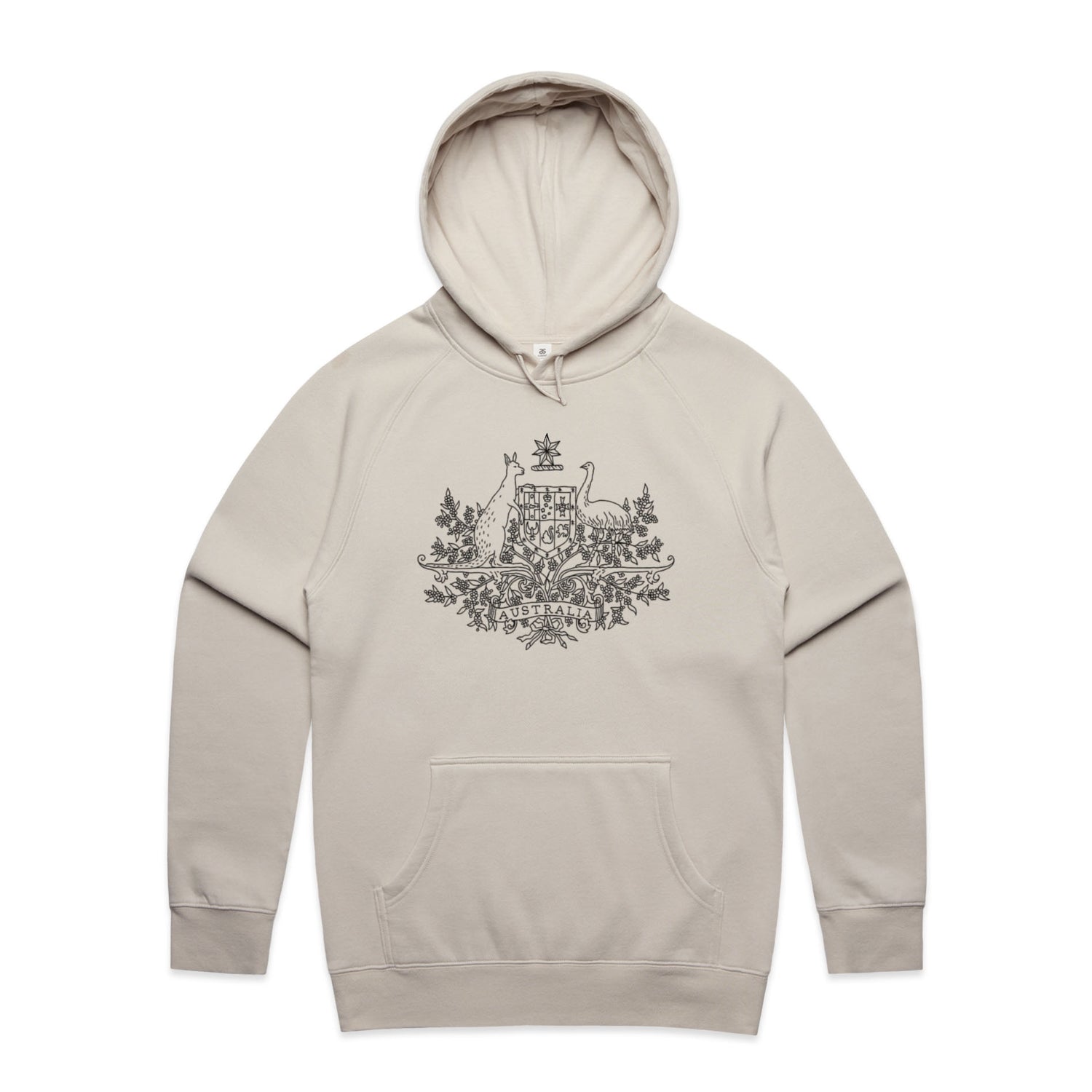 The Hoodies Coat of Arms – Men's Hooded Sweatshirt is a high-quality men's hooded sweatshirt, printed with black ink on the trusted AS Colour Supply Hood 5101. With a regular fit and mid-weight feel, it's crafted from a premium blend of 80% cotton and 20% polyester anti-pill fleece, making it a durable and comfortable staple for any wardrobe. The pullover design features raglan sleeves, a lined hood with tonal drawcord, ribbed sleeve cuffs, and a roomy kangaroo pocket — all designed to keep you warm while looking effortlessly sharp.