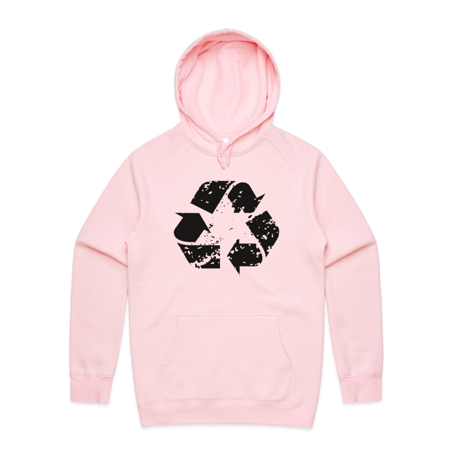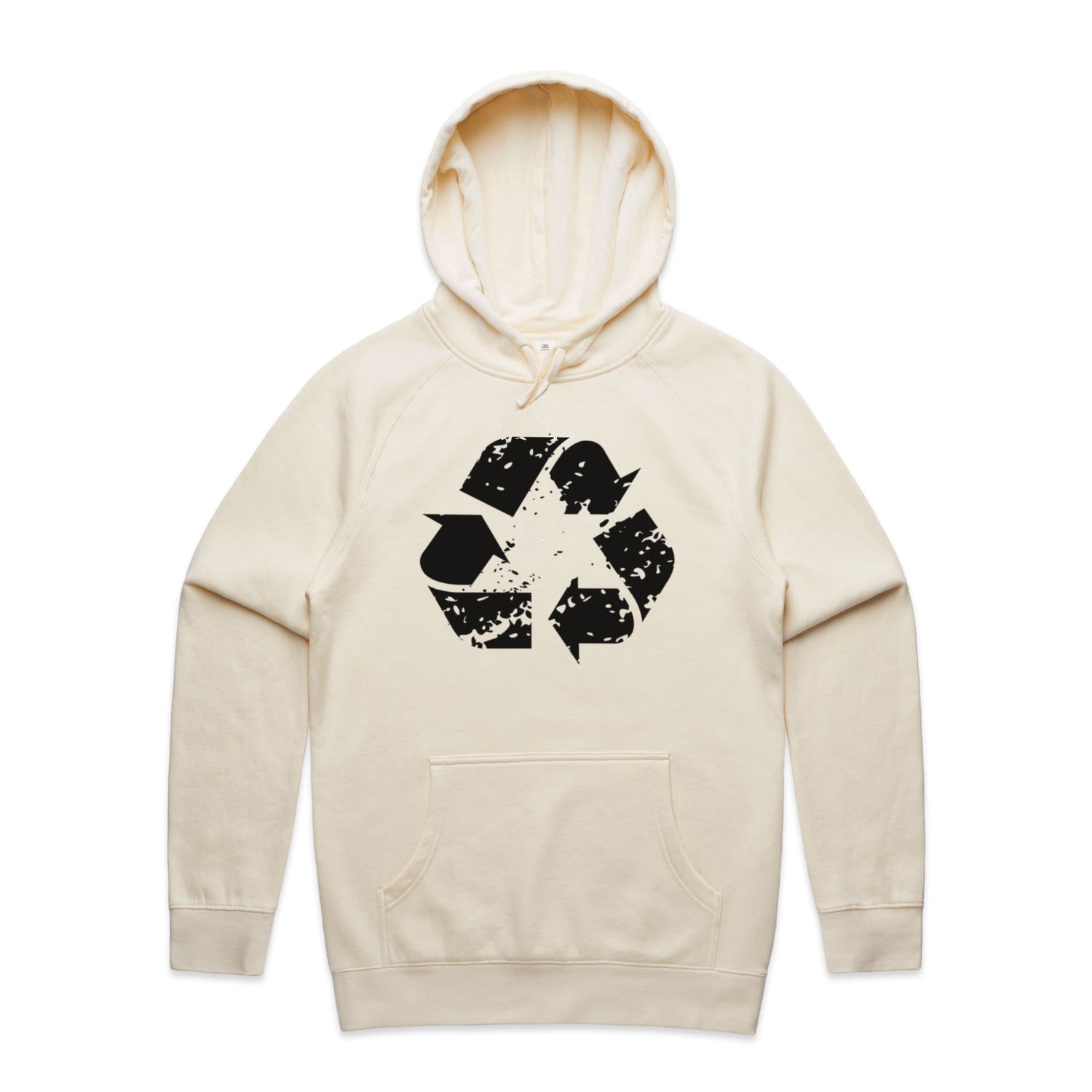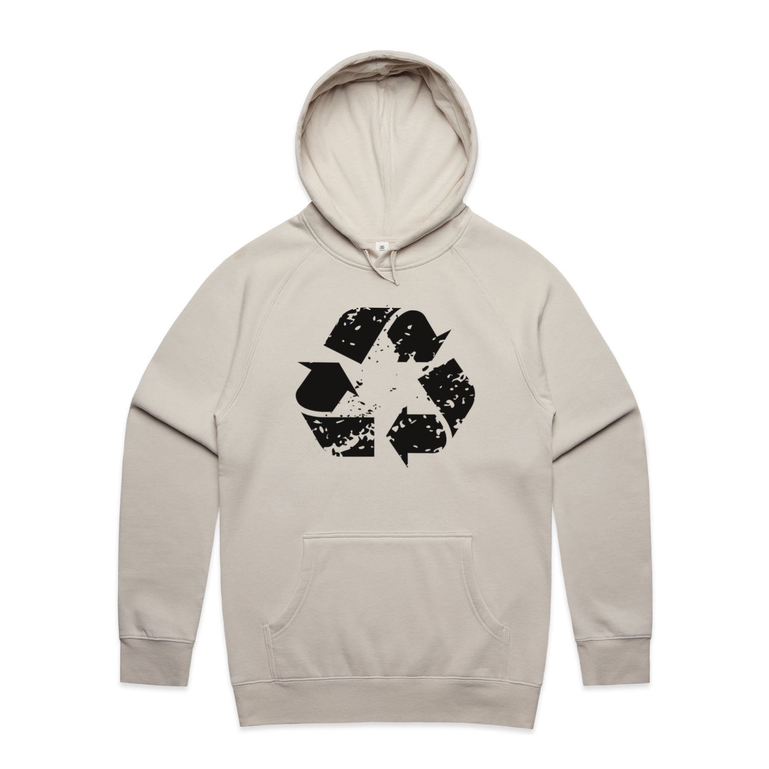 The Hoodies Distressed Recycle Symbol Green – Men's Hooded Sweatshirt is a high-quality men's hooded sweatshirt, printed with black ink on the trusted AS Colour Supply Hood 5101. With a regular fit and mid-weight feel, it's crafted from a premium blend of 80% cotton and 20% polyester anti-pill fleece, making it a durable and comfortable staple for any wardrobe. The pullover design features raglan sleeves, a lined hood with tonal drawcord, ribbed sleeve cuffs, and a roomy kangaroo pocket — all designed to keep you warm while looking effortlessly sharp.