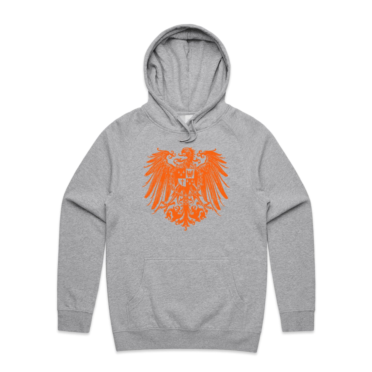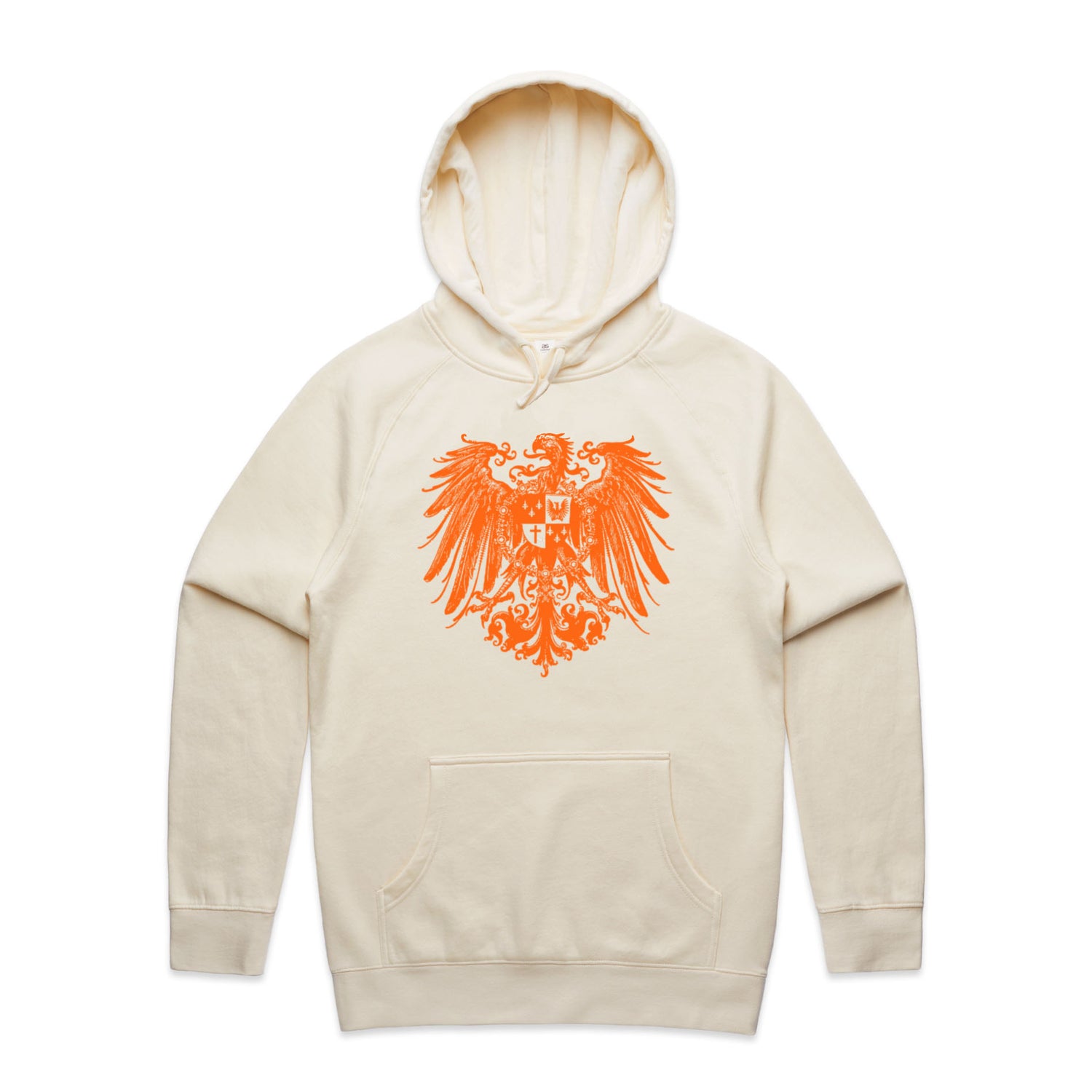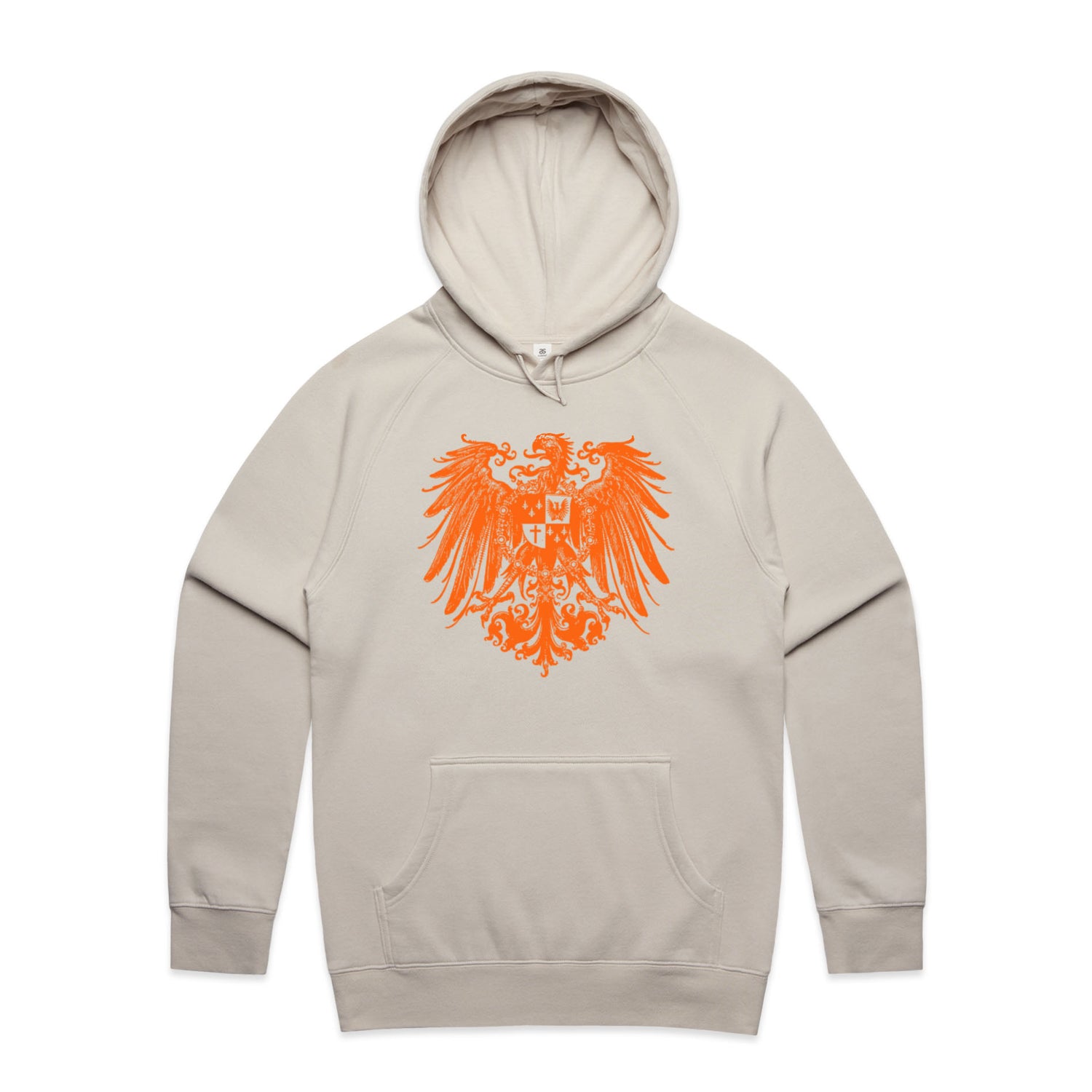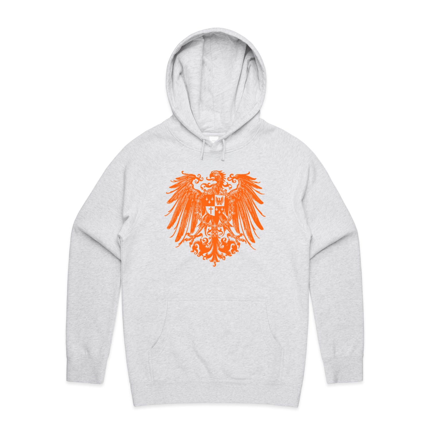 The Hoodies Eagle – Men's Hooded Sweatshirt is a high-quality men's hooded sweatshirt, printed with orange ink on the trusted AS Colour Supply Hood 5101. With a regular fit and mid-weight feel, it's crafted from a premium blend of 80% cotton and 20% polyester anti-pill fleece, making it a durable and comfortable staple for any wardrobe. The pullover design features raglan sleeves, a lined hood with tonal drawcord, ribbed sleeve cuffs, and a roomy kangaroo pocket — all designed to keep you warm while looking effortlessly sharp.