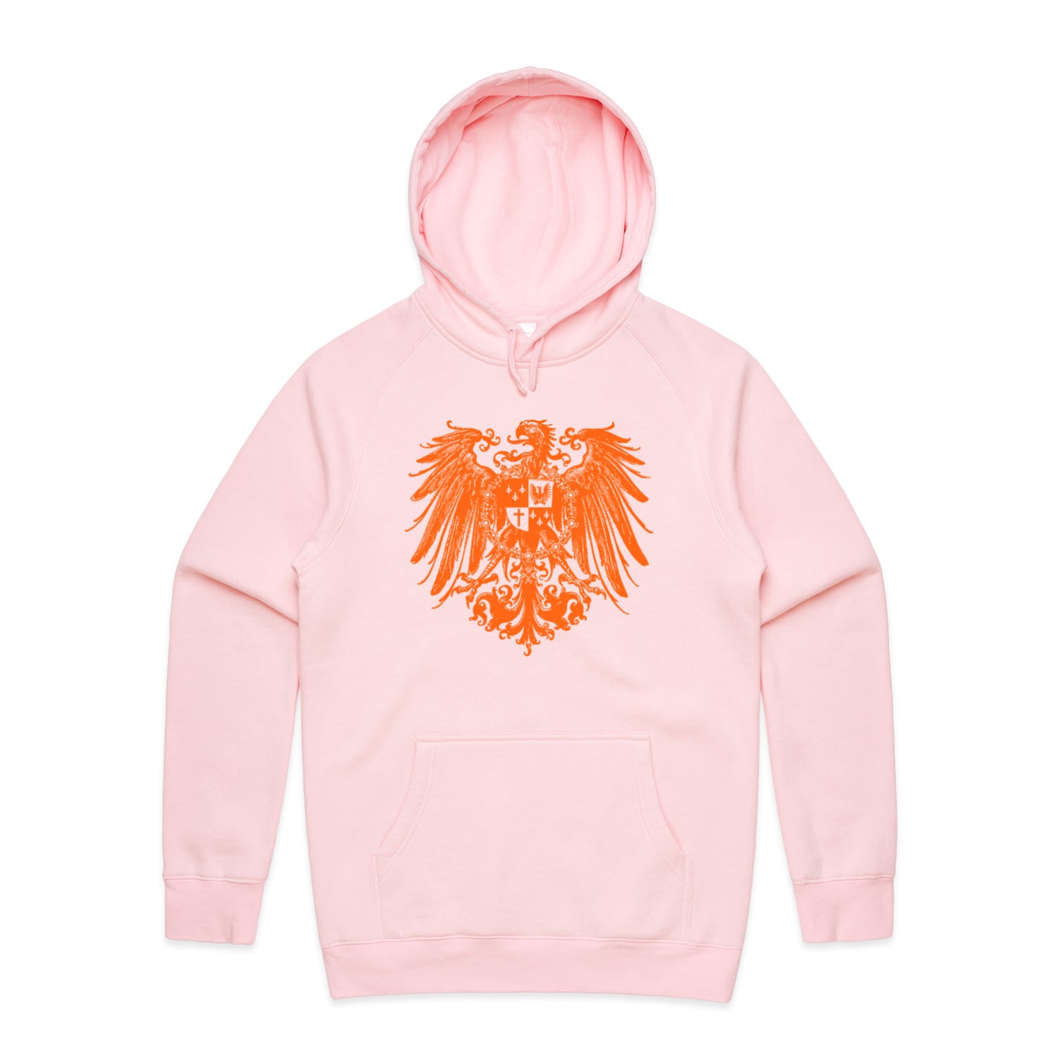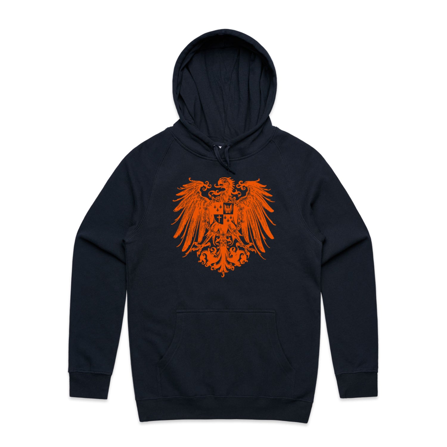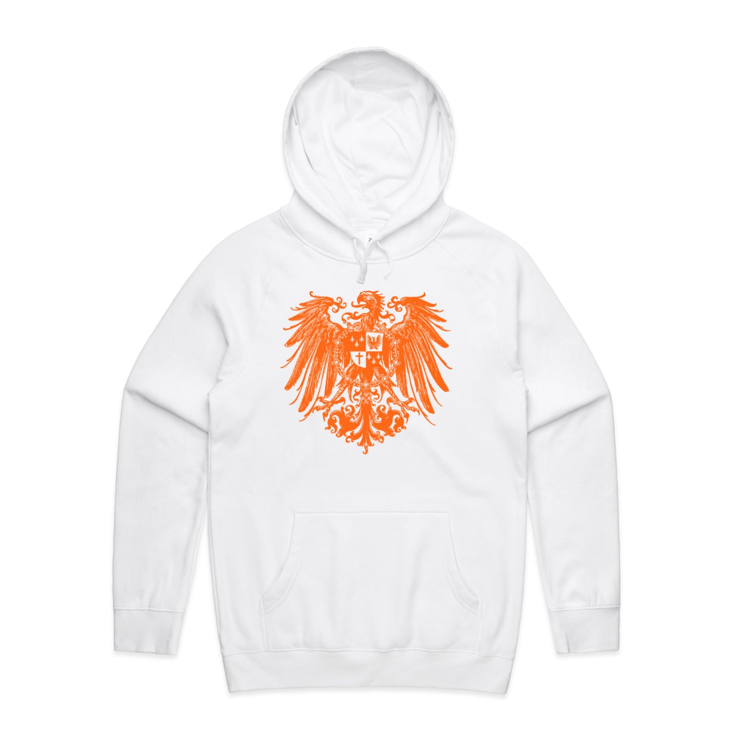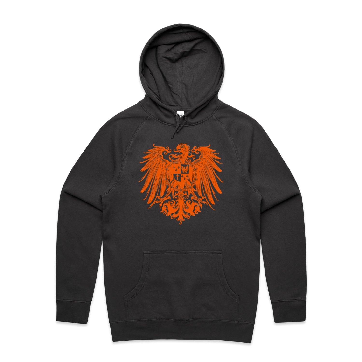 The Hoodies Eagle – Men's Hooded Sweatshirt is a high-quality men's hooded sweatshirt, printed with orange ink on the trusted AS Colour Supply Hood 5101. With a regular fit and mid-weight feel, it's crafted from a premium blend of 80% cotton and 20% polyester anti-pill fleece, making it a durable and comfortable staple for any wardrobe. The pullover design features raglan sleeves, a lined hood with tonal drawcord, ribbed sleeve cuffs, and a roomy kangaroo pocket — all designed to keep you warm while looking effortlessly sharp.