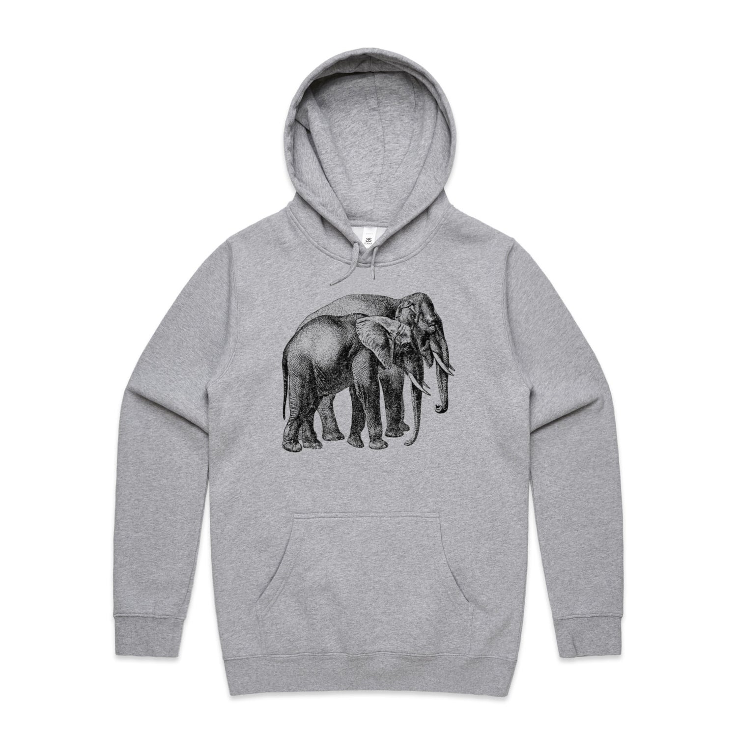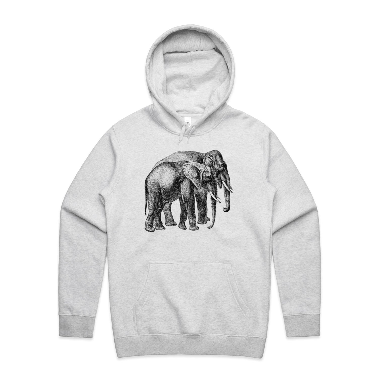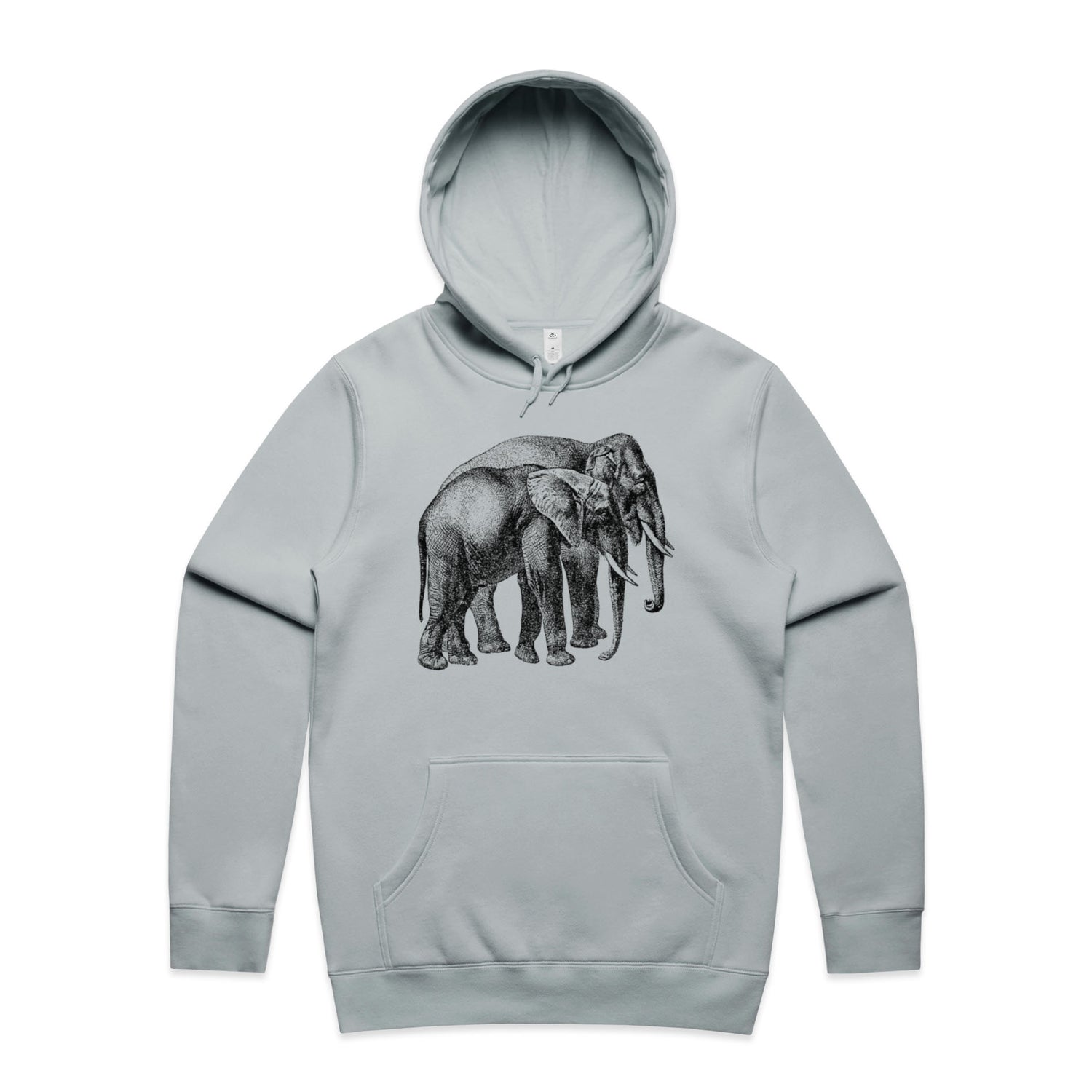 Not just a looker, this hoodie’s got some eco-cred with its sweet fabric and sharp ink print that’ll keep your style game strong. So, throw on those jeans or shorts, and let these friendly elephants guide your vibe with a splash of fun. Who knew comfort could look this fab? Go on, show 'em how it's done!