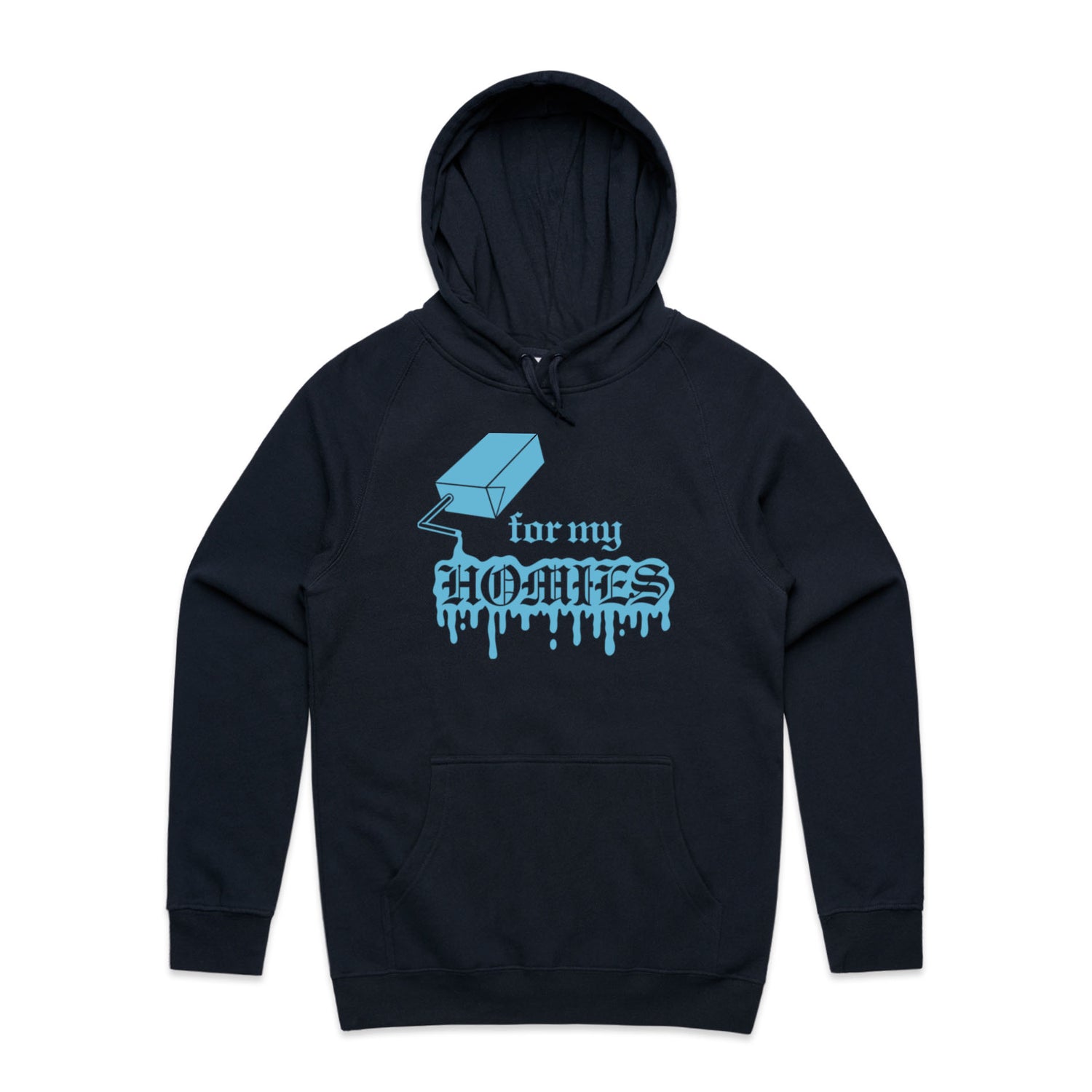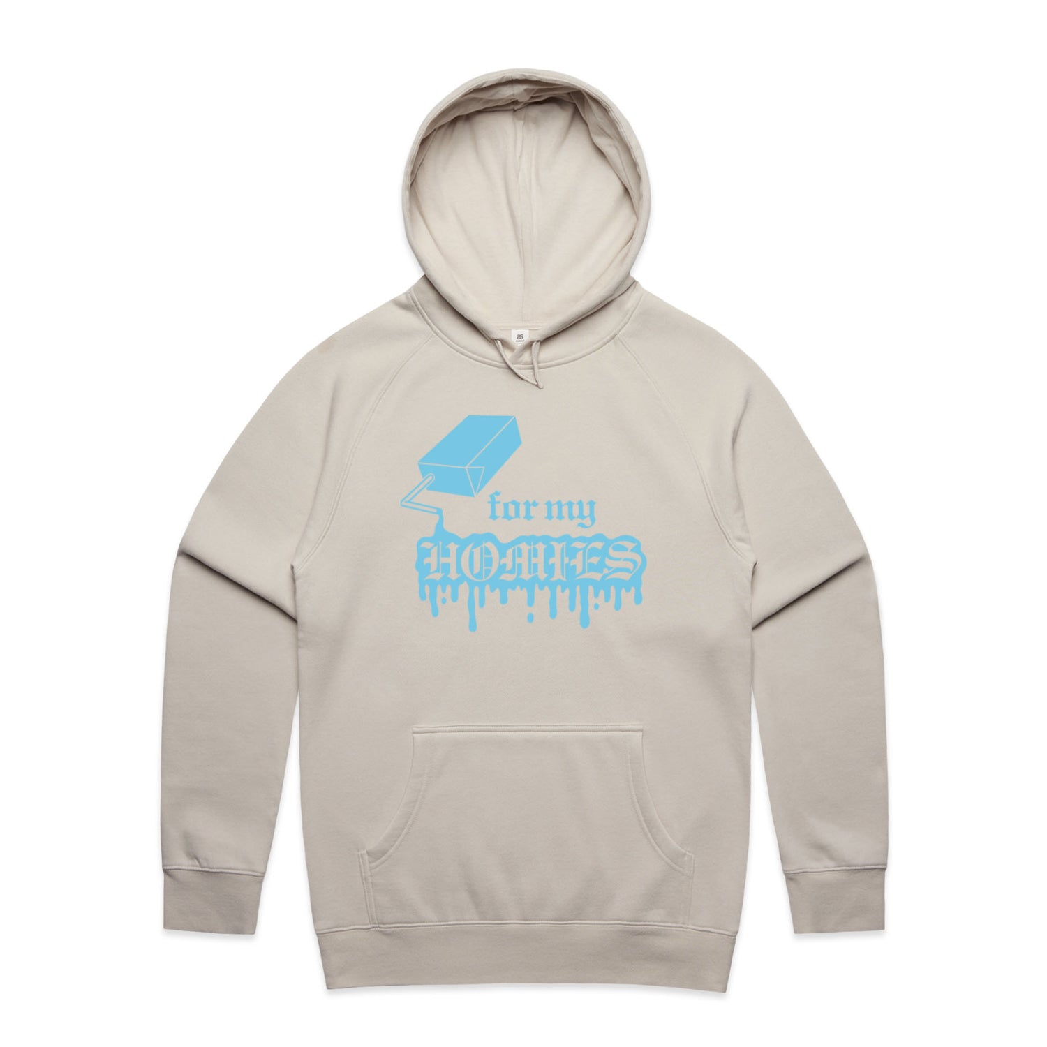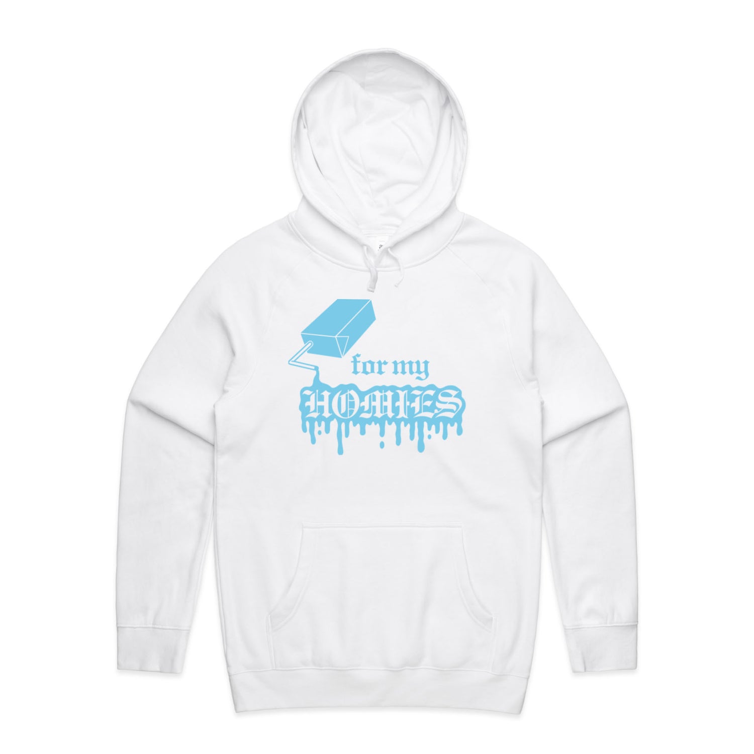 The Hoodies For My Homies – Men's Hooded Sweatshirt is a high-quality men's hooded sweatshirt, printed with light blue ink on the trusted AS Colour Supply Hood 5101. With a regular fit and mid-weight feel, it's crafted from a premium blend of 80% cotton and 20% polyester anti-pill fleece, making it a durable and comfortable staple for any wardrobe. The pullover design features raglan sleeves, a lined hood with tonal drawcord, ribbed sleeve cuffs, and a roomy kangaroo pocket — all designed to keep you warm while looking effortlessly sharp.
