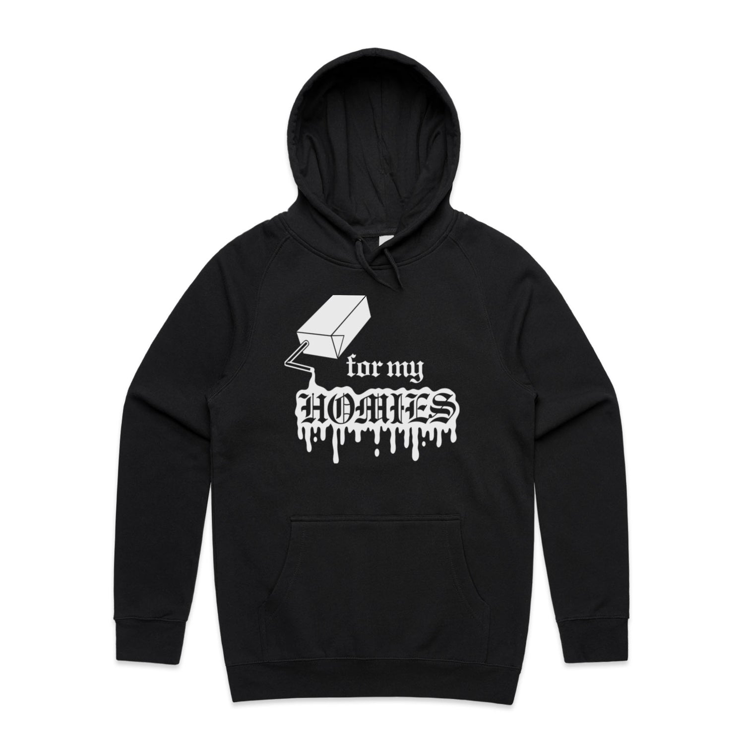 The Hoodies For My Homies – Men's Hooded Sweatshirt is a high-quality men's hooded sweatshirt, printed with white ink on the trusted AS Colour Supply Hood 5101. With a regular fit and mid-weight feel, it's crafted from a premium blend of 80% cotton and 20% polyester anti-pill fleece, making it a durable and comfortable staple for any wardrobe. The pullover design features raglan sleeves, a lined hood with tonal drawcord, ribbed sleeve cuffs, and a roomy kangaroo pocket — all designed to keep you warm while looking effortlessly sharp.