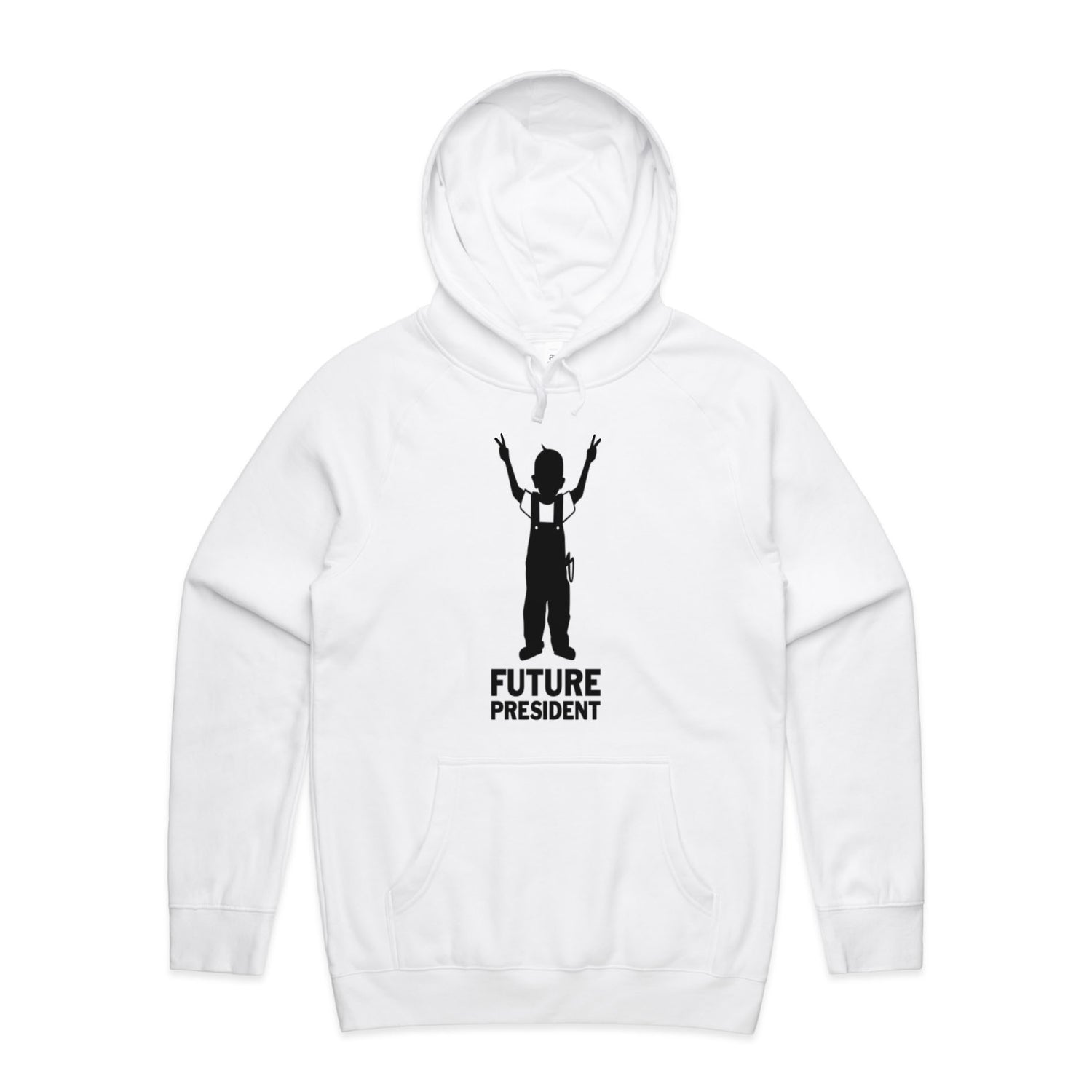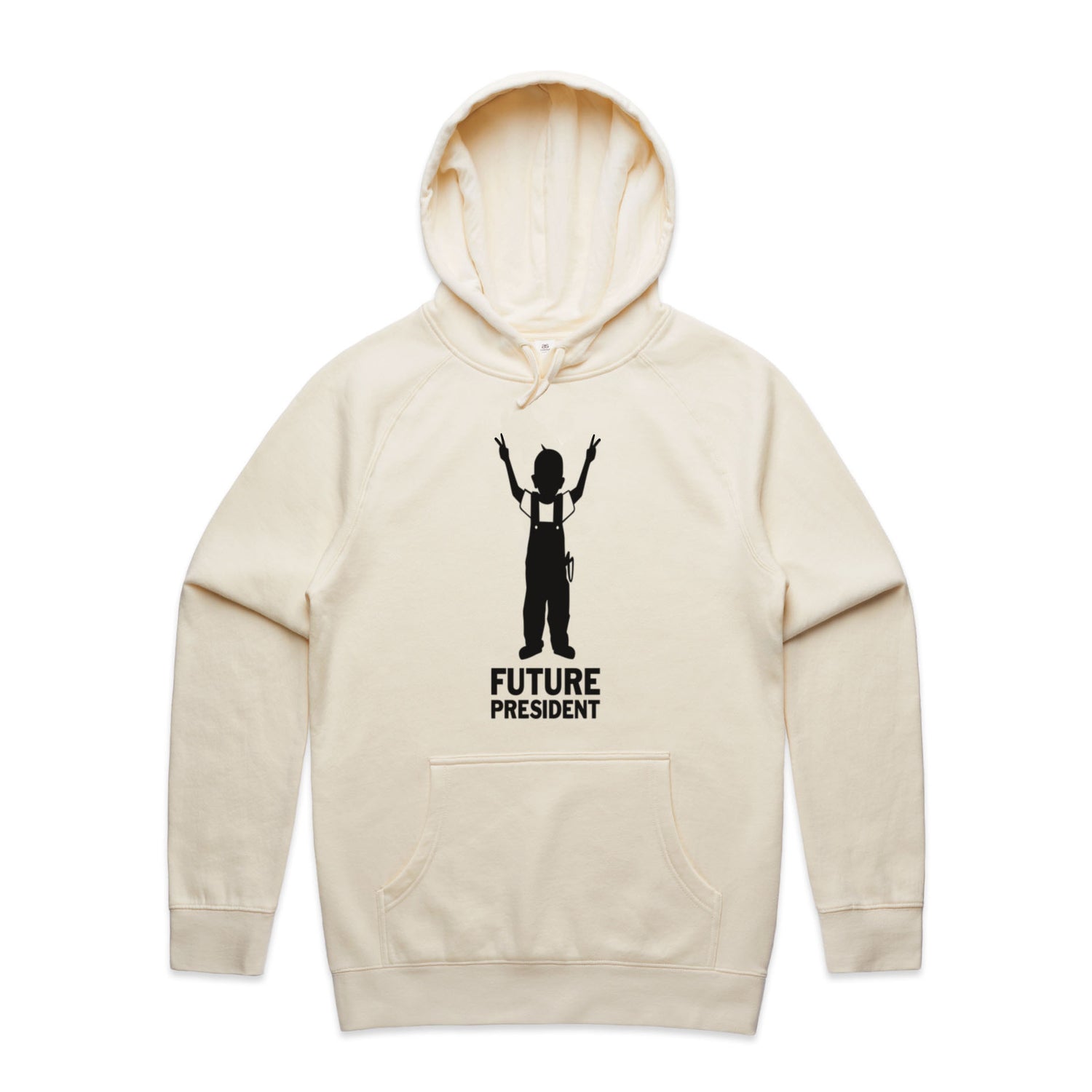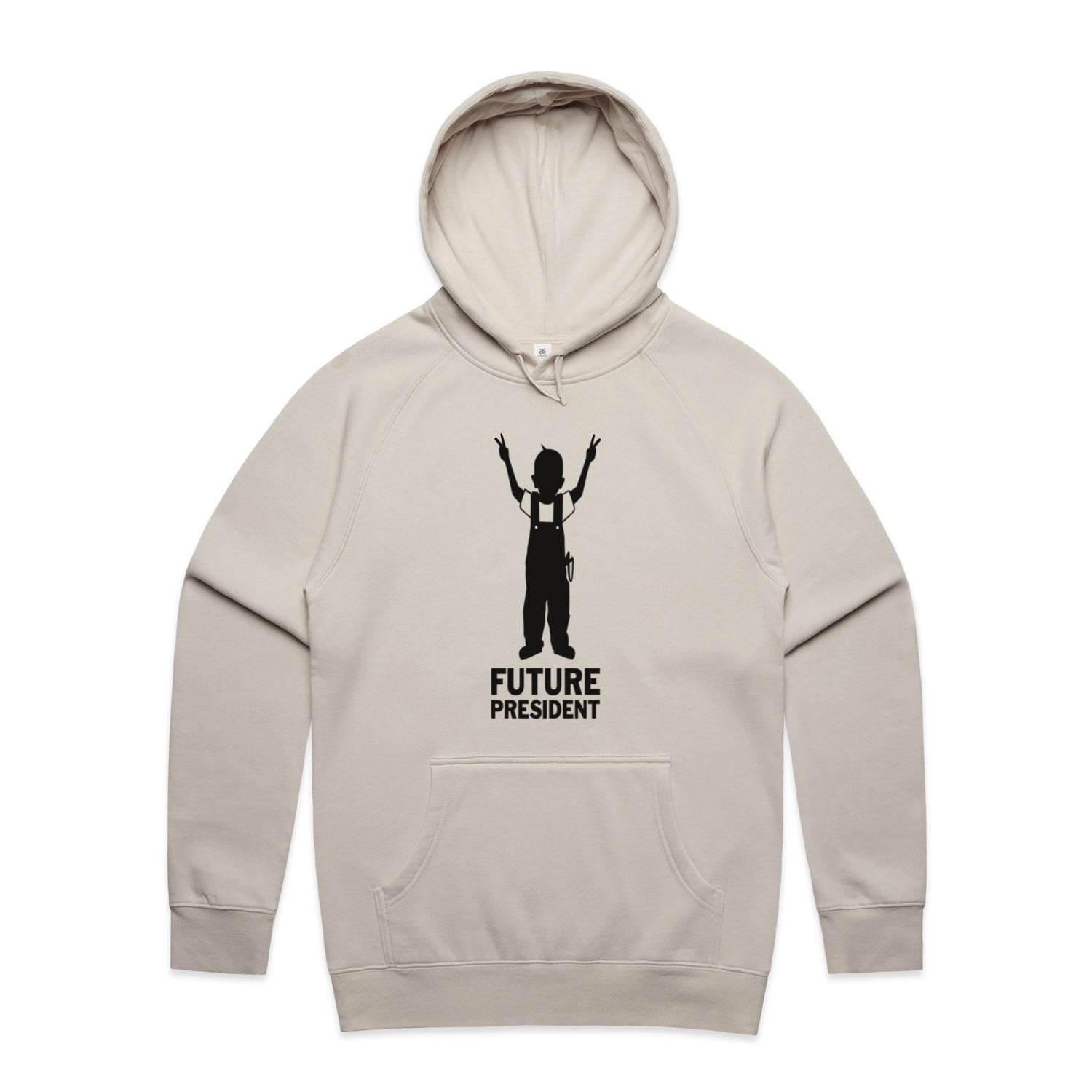 The Hoodies Future President – Men's Hooded Sweatshirt is a high-quality men's hooded sweatshirt, printed with black ink on the trusted AS Colour Supply Hood 5101. With a regular fit and mid-weight feel, it's crafted from a premium blend of 80% cotton and 20% polyester anti-pill fleece, making it a durable and comfortable staple for any wardrobe. The pullover design features raglan sleeves, a lined hood with tonal drawcord, ribbed sleeve cuffs, and a roomy kangaroo pocket — all designed to keep you warm while looking effortlessly sharp.