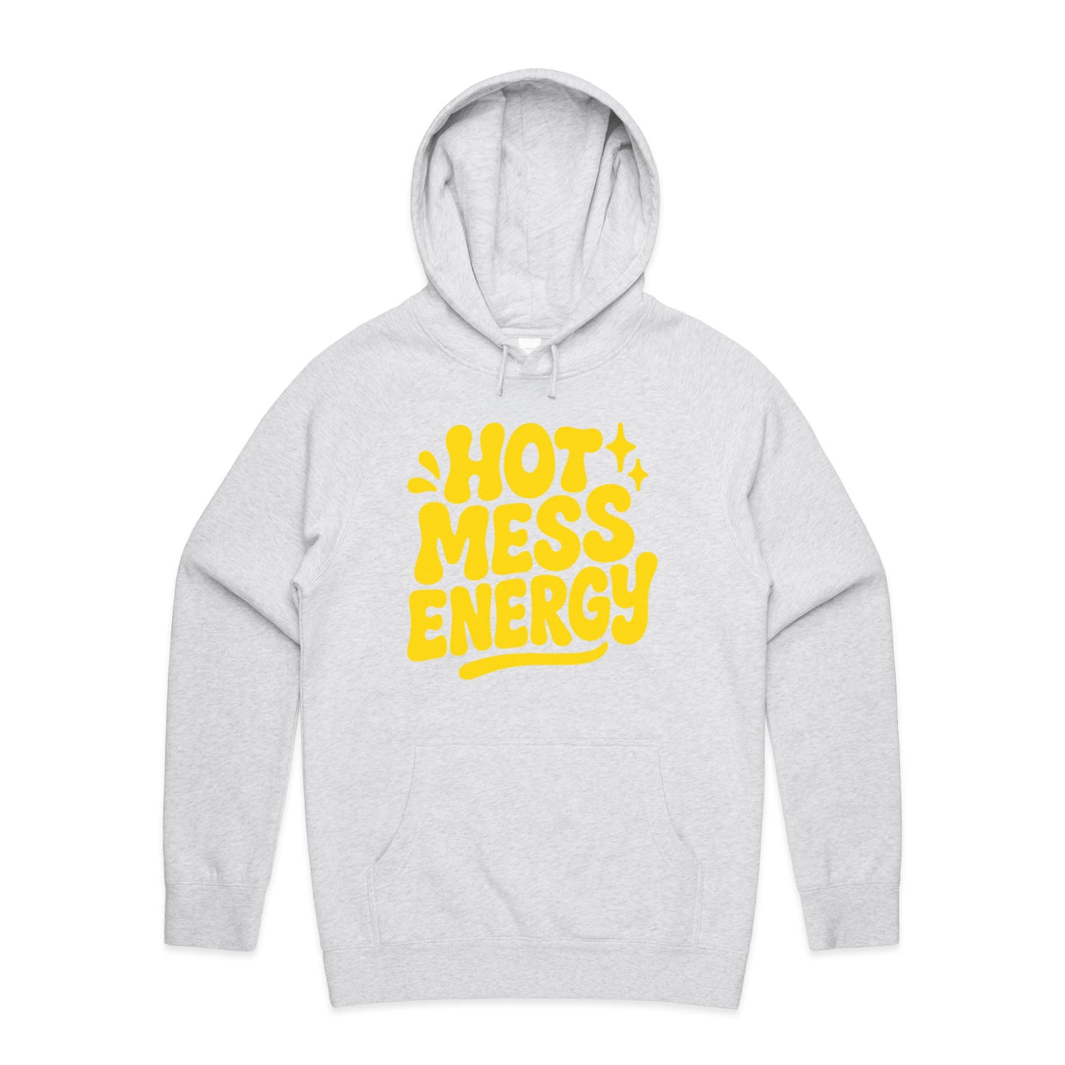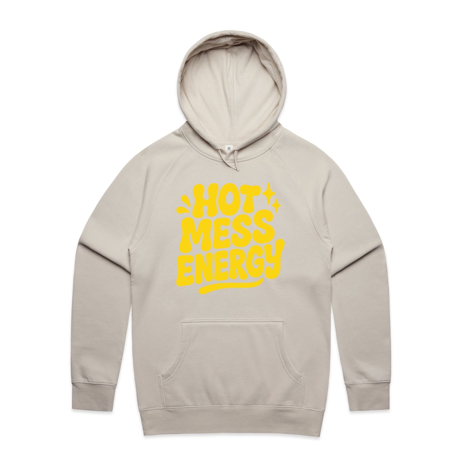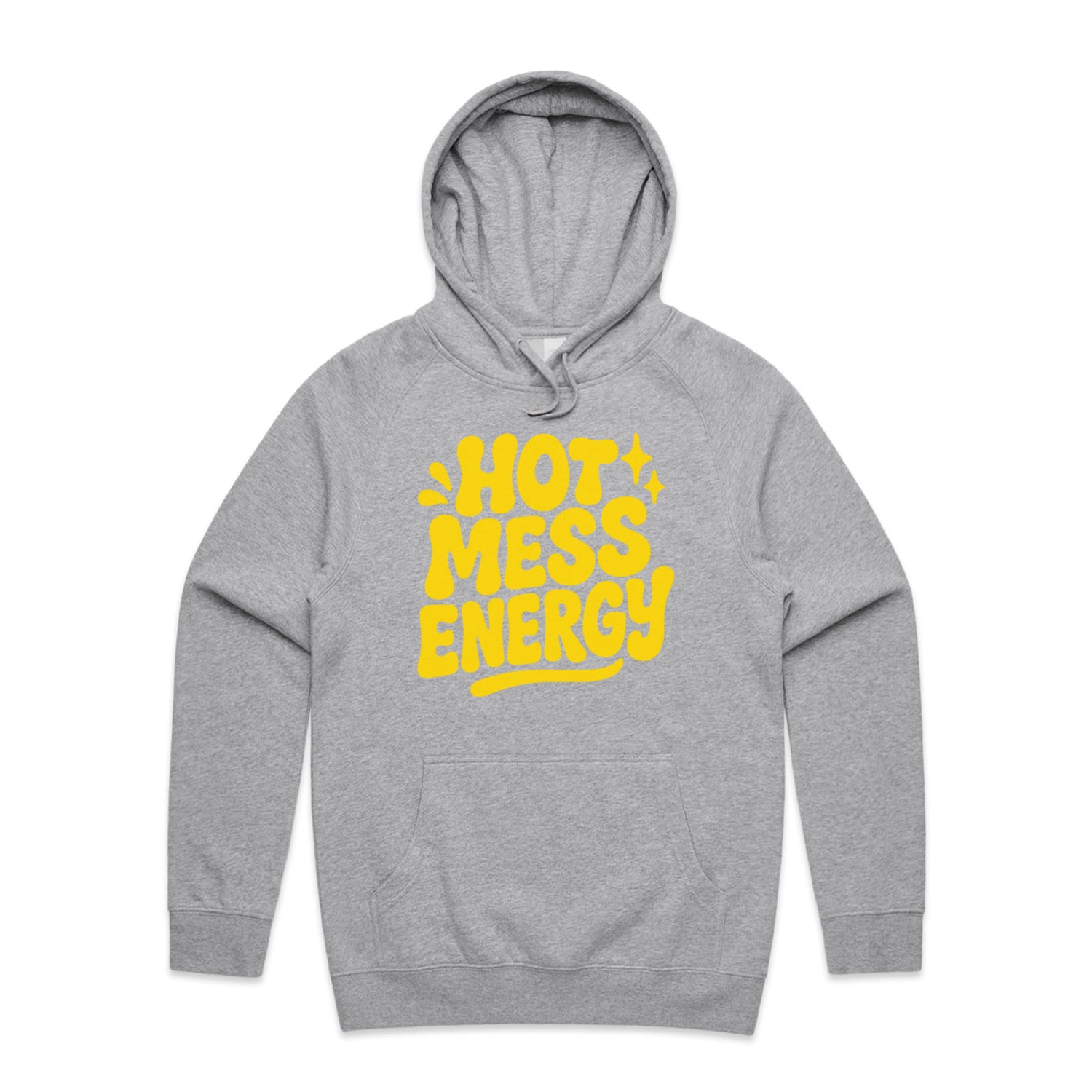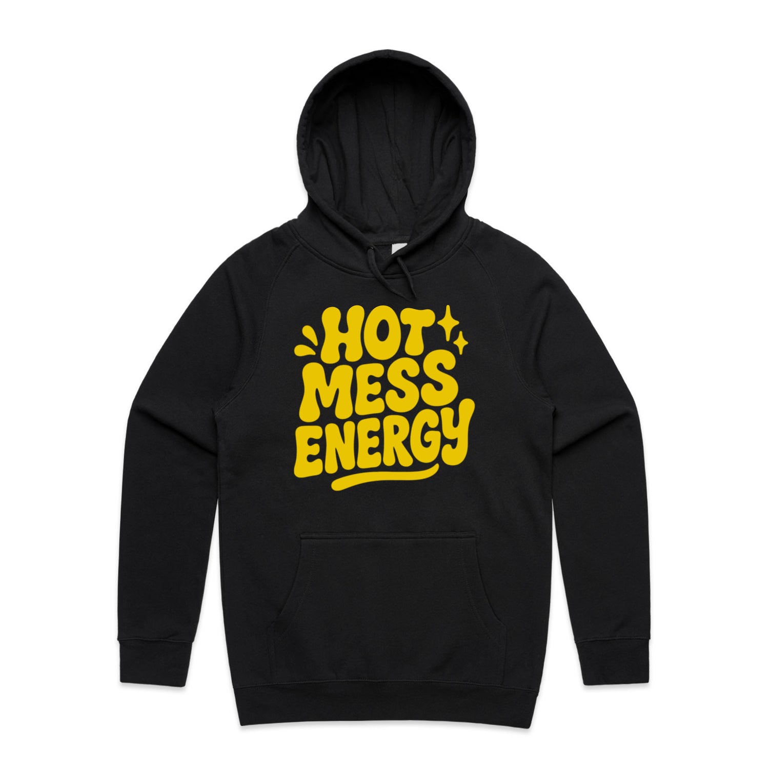 The Hoodies Hot Mess Energy – Men's Hooded Sweatshirt is a high-quality men's hooded sweatshirt, printed with yellow ink on the trusted AS Colour Supply Hood 5101. With a regular fit and mid-weight feel, it's crafted from a premium blend of 80% cotton and 20% polyester anti-pill fleece, making it a durable and comfortable staple for any wardrobe. The pullover design features raglan sleeves, a lined hood with tonal drawcord, ribbed sleeve cuffs, and a roomy kangaroo pocket — all designed to keep you warm while looking effortlessly sharp.