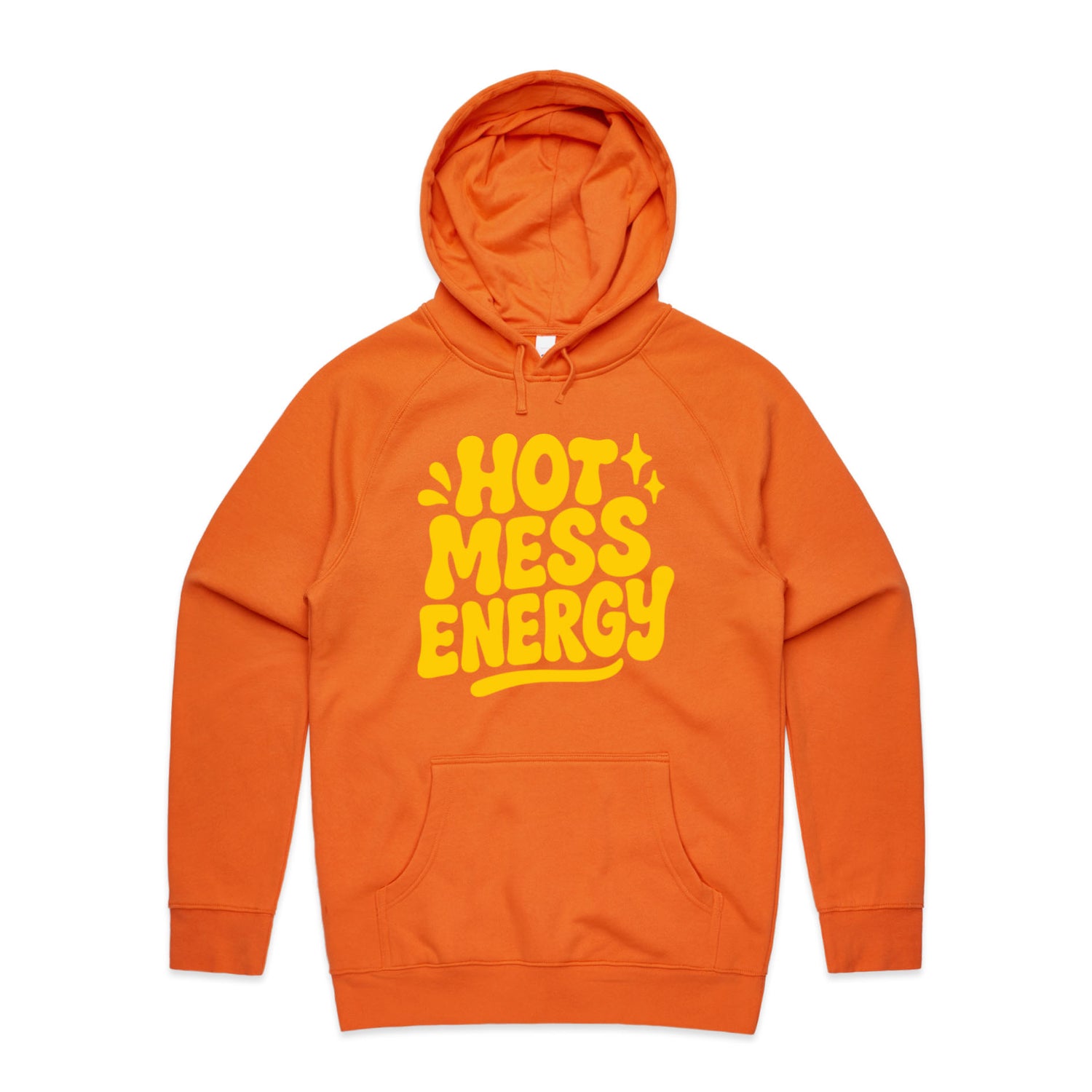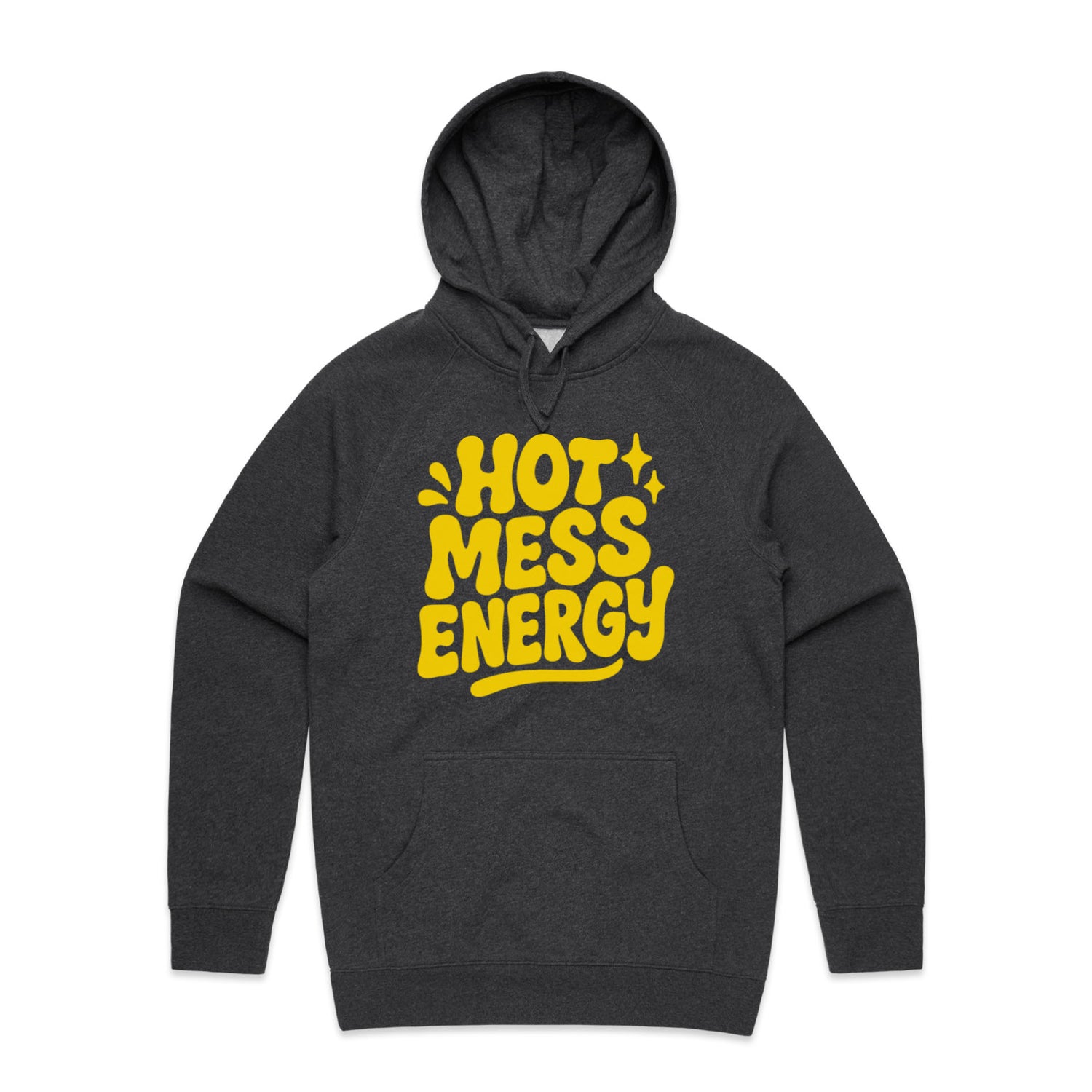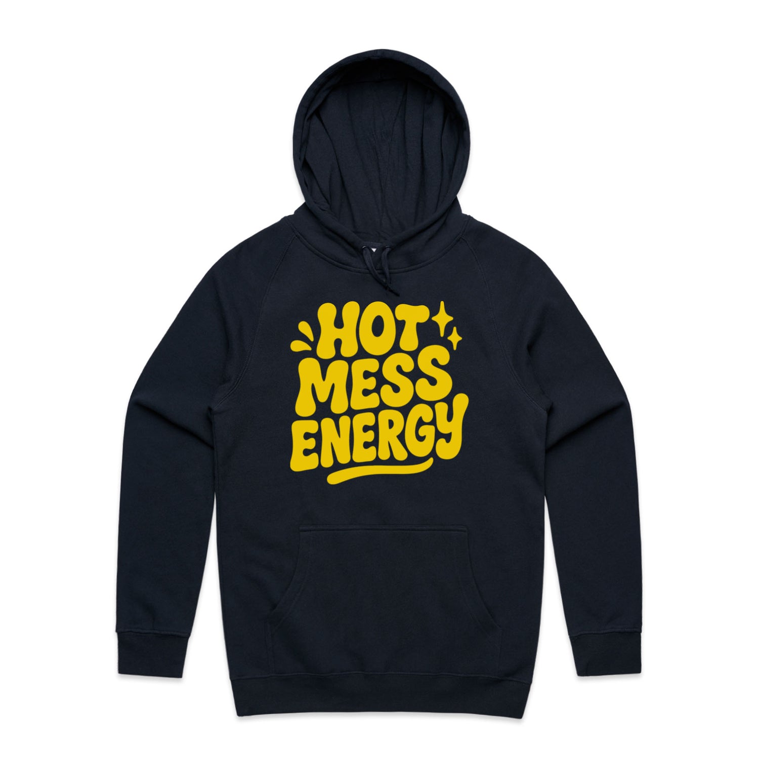 The Hoodies Hot Mess Energy – Men's Hooded Sweatshirt is a high-quality men's hooded sweatshirt, printed with yellow ink on the trusted AS Colour Supply Hood 5101. With a regular fit and mid-weight feel, it's crafted from a premium blend of 80% cotton and 20% polyester anti-pill fleece, making it a durable and comfortable staple for any wardrobe. The pullover design features raglan sleeves, a lined hood with tonal drawcord, ribbed sleeve cuffs, and a roomy kangaroo pocket — all designed to keep you warm while looking effortlessly sharp.