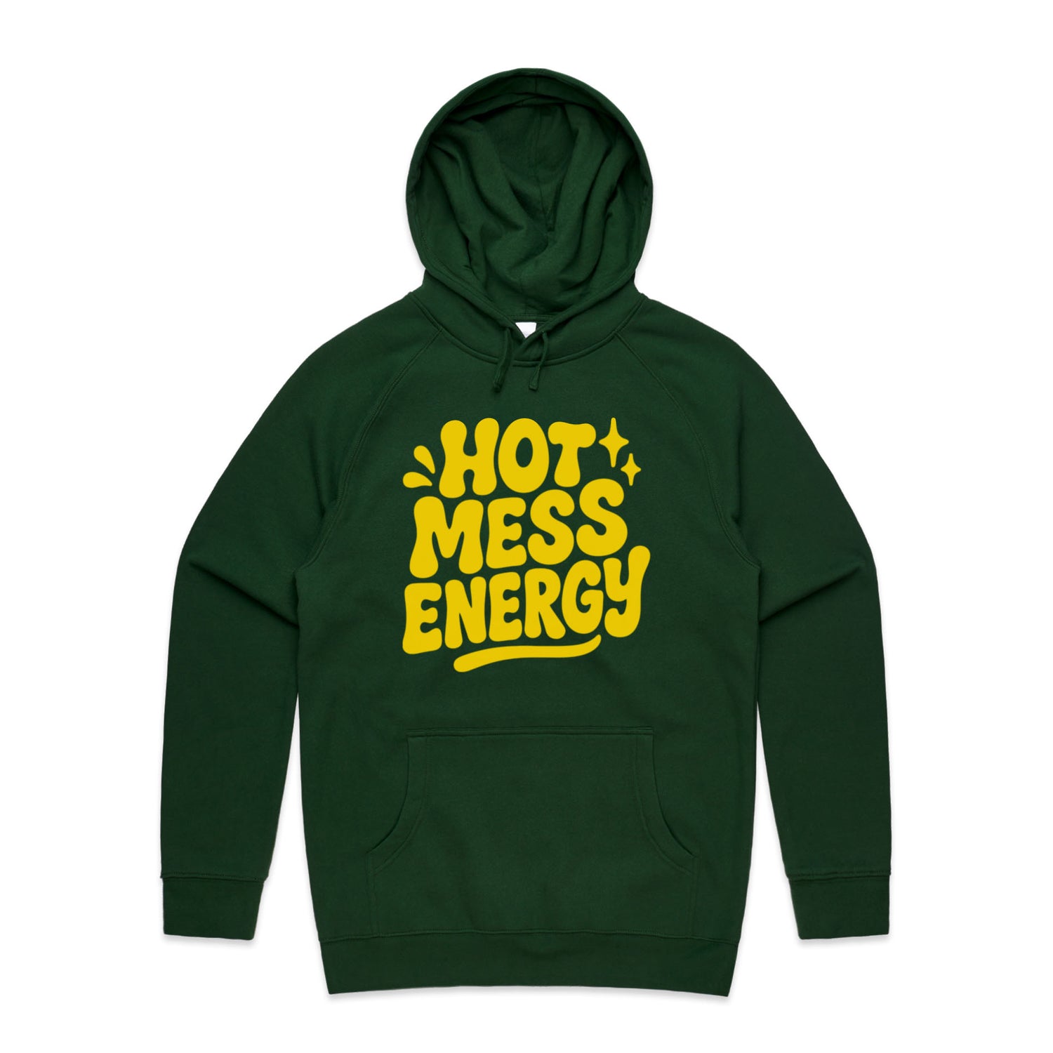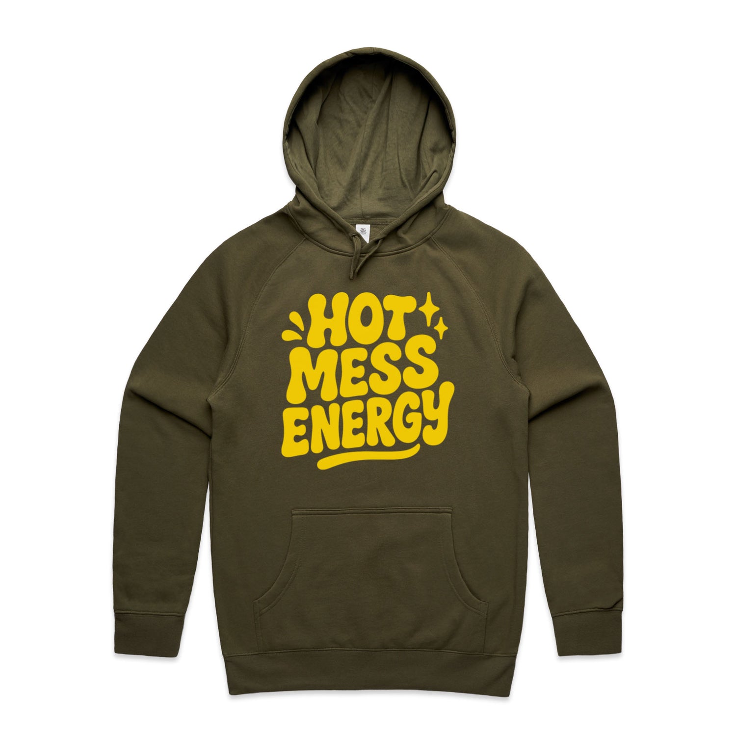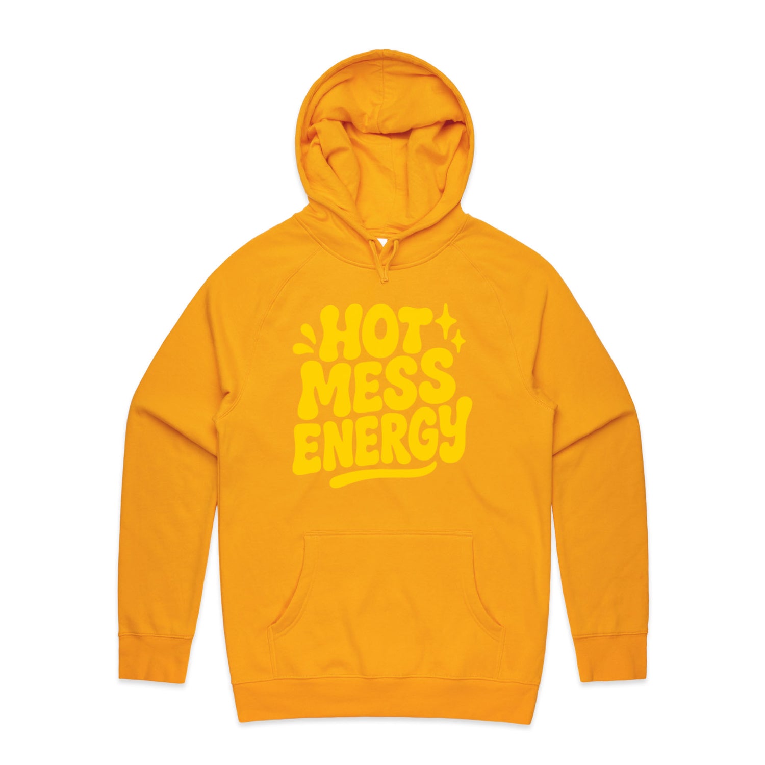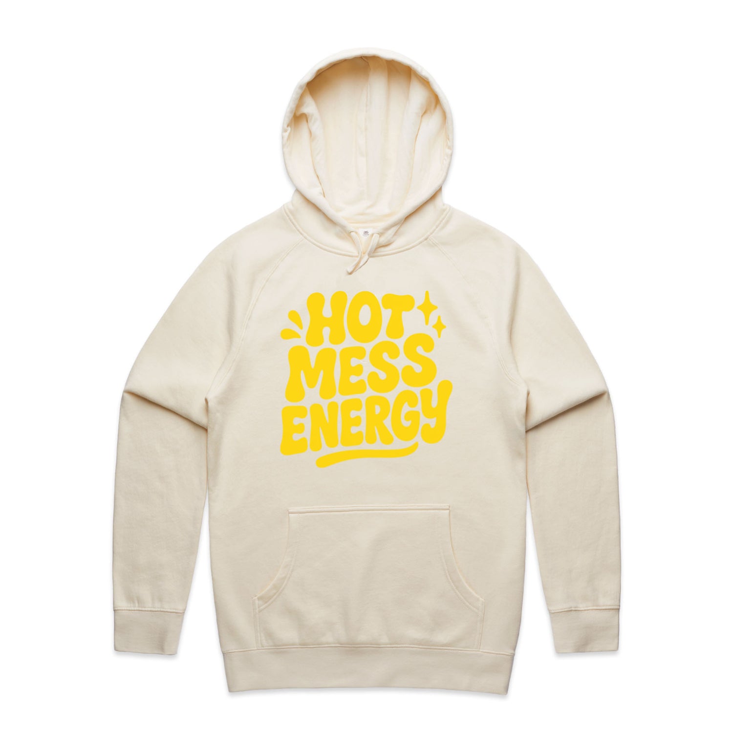 The Hoodies Hot Mess Energy – Men's Hooded Sweatshirt is a high-quality men's hooded sweatshirt, printed with yellow ink on the trusted AS Colour Supply Hood 5101. With a regular fit and mid-weight feel, it's crafted from a premium blend of 80% cotton and 20% polyester anti-pill fleece, making it a durable and comfortable staple for any wardrobe. The pullover design features raglan sleeves, a lined hood with tonal drawcord, ribbed sleeve cuffs, and a roomy kangaroo pocket — all designed to keep you warm while looking effortlessly sharp.