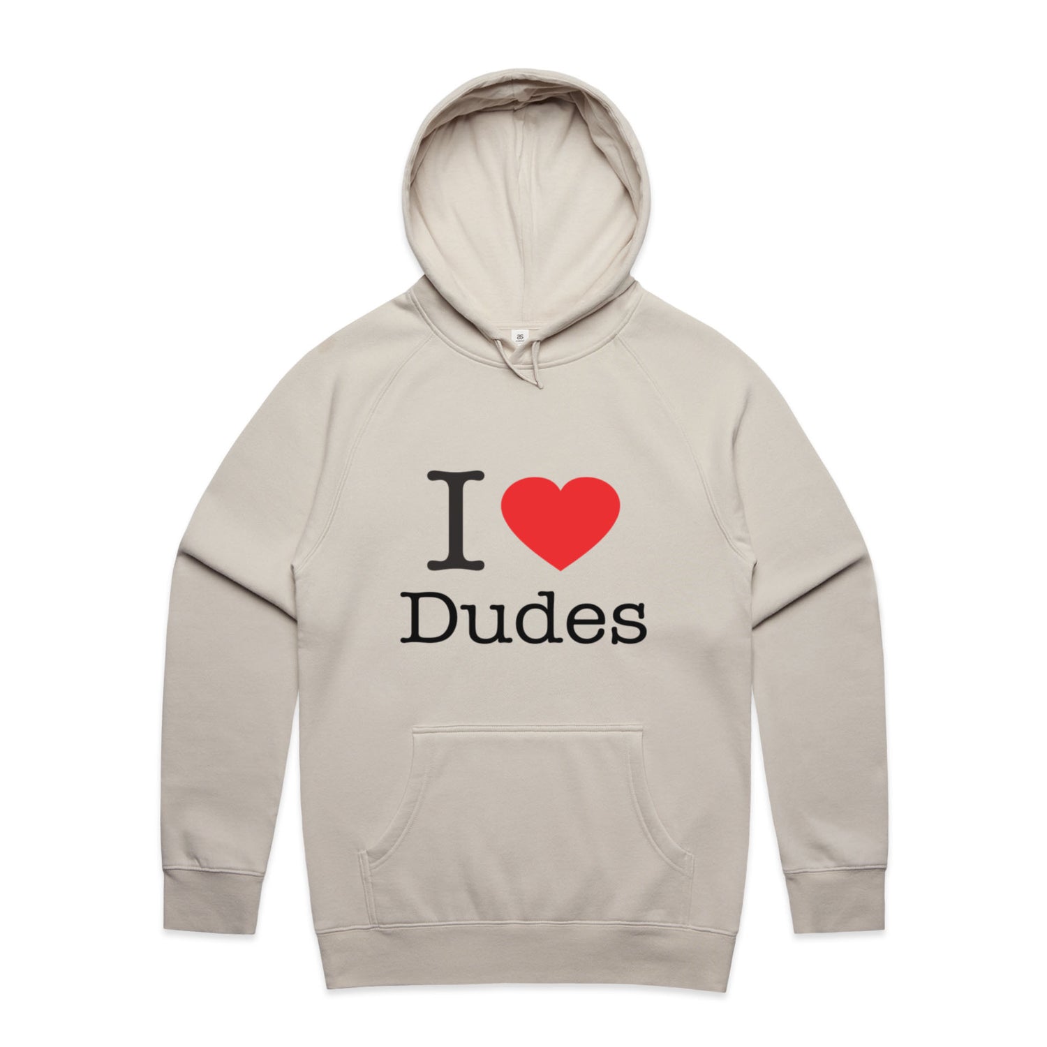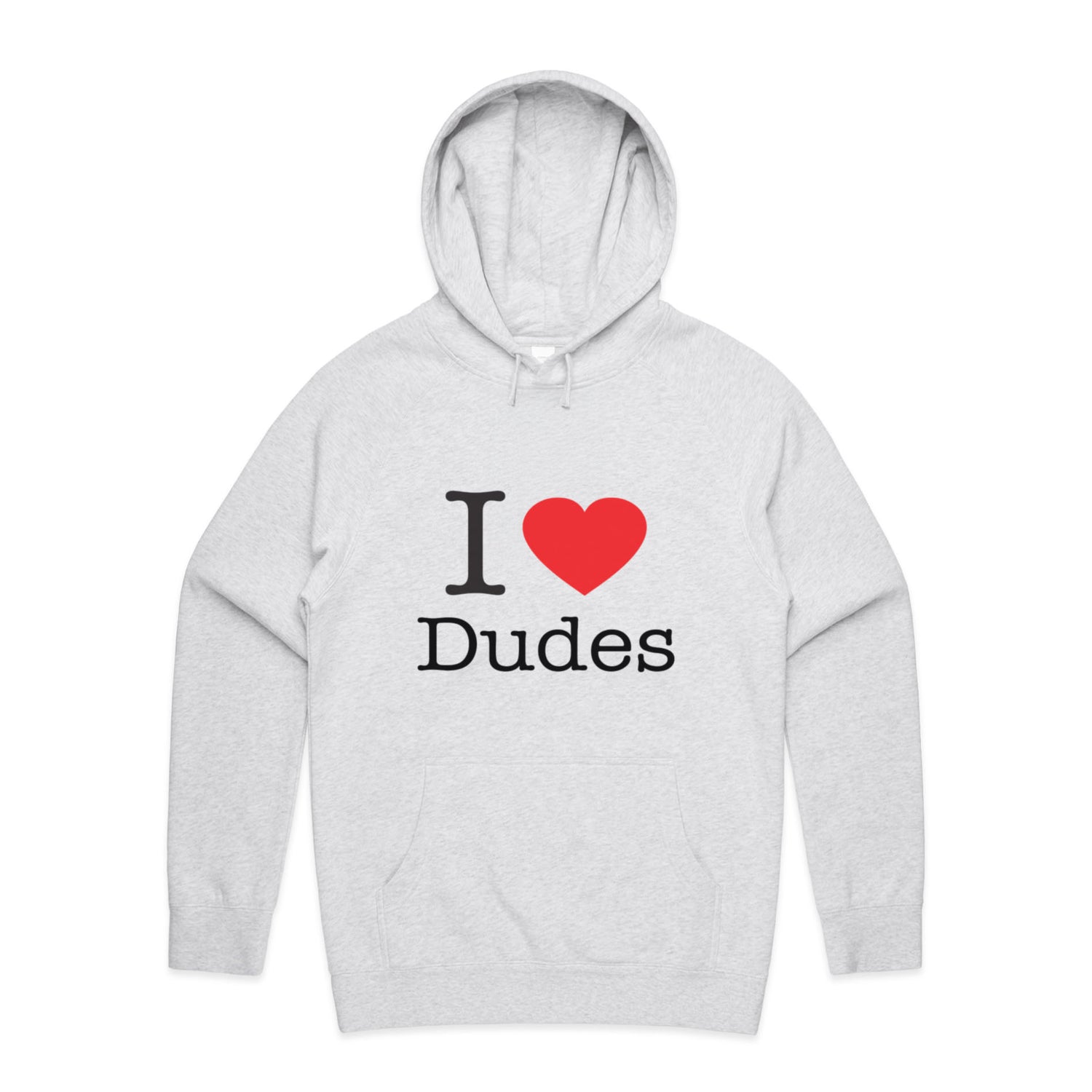 The Hoodies I Heart Dudes – Men's Hooded Sweatshirt is a high-quality men's hooded sweatshirt, printed with black ink on the trusted AS Colour Supply Hood 5101. With a regular fit and mid-weight feel, it's crafted from a premium blend of 80% cotton and 20% polyester anti-pill fleece, making it a durable and comfortable staple for any wardrobe. The pullover design features raglan sleeves, a lined hood with tonal drawcord, ribbed sleeve cuffs, and a roomy kangaroo pocket — all designed to keep you warm while looking effortlessly sharp.