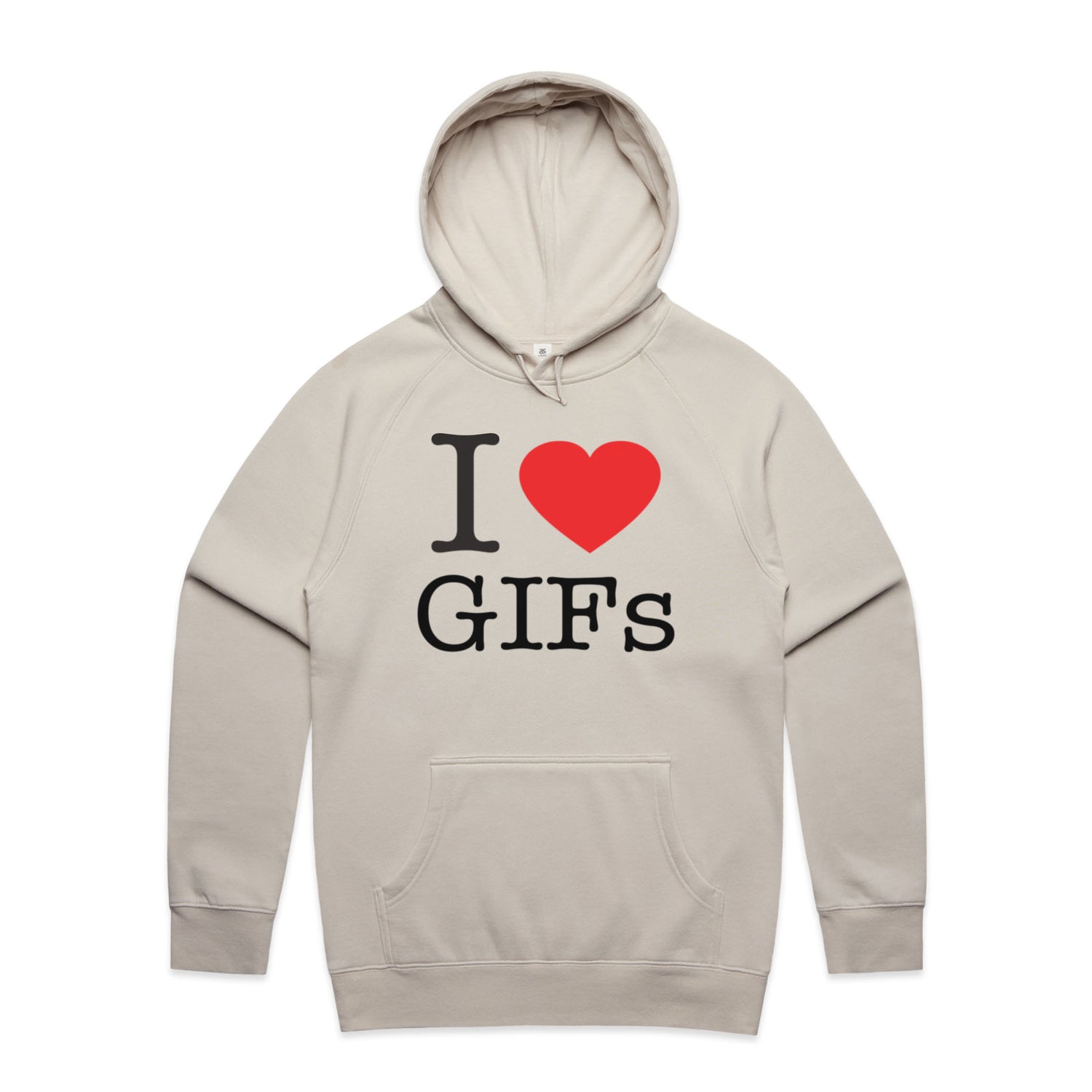 The Hoodies I Heart GIFs – Men's Hooded Sweatshirt is a high-quality men's hooded sweatshirt, printed with black ink on the trusted AS Colour Supply Hood 5101. With a regular fit and mid-weight feel, it's crafted from a premium blend of 80% cotton and 20% polyester anti-pill fleece, making it a durable and comfortable staple for any wardrobe. The pullover design features raglan sleeves, a lined hood with tonal drawcord, ribbed sleeve cuffs, and a roomy kangaroo pocket — all designed to keep you warm while looking effortlessly sharp.