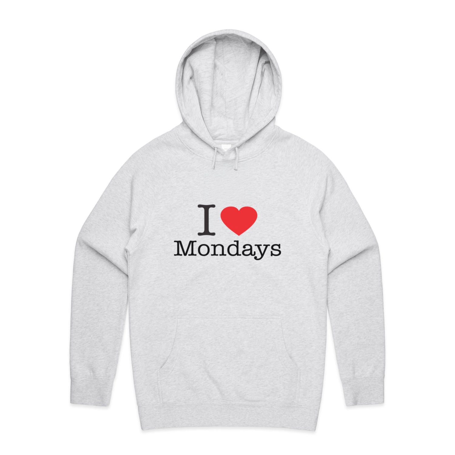 The Hoodies I Heart Mondays – Men's Hooded Sweatshirt is a high-quality men's hooded sweatshirt, printed with black ink on the trusted AS Colour Supply Hood 5101. With a regular fit and mid-weight feel, it's crafted from a premium blend of 80% cotton and 20% polyester anti-pill fleece, making it a durable and comfortable staple for any wardrobe. The pullover design features raglan sleeves, a lined hood with tonal drawcord, ribbed sleeve cuffs, and a roomy kangaroo pocket — all designed to keep you warm while looking effortlessly sharp.