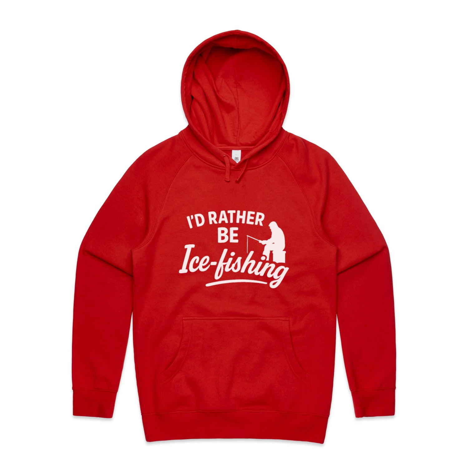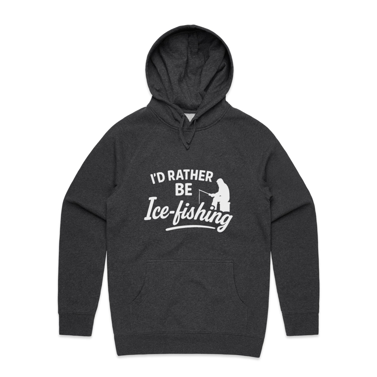 The Hoodies I'd Rather Be Ice-fishing – Men's Hooded Sweatshirt is a high-quality men's hooded sweatshirt, printed with white ink on the trusted AS Colour Supply Hood 5101. With a regular fit and mid-weight feel, it's crafted from a premium blend of 80% cotton and 20% polyester anti-pill fleece, making it a durable and comfortable staple for any wardrobe. The pullover design features raglan sleeves, a lined hood with tonal drawcord, ribbed sleeve cuffs, and a roomy kangaroo pocket — all designed to keep you warm while looking effortlessly sharp.