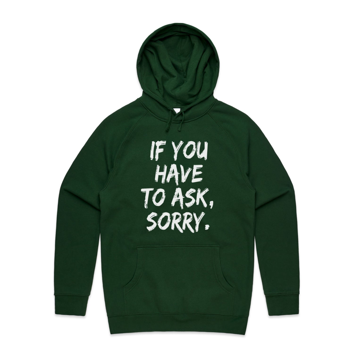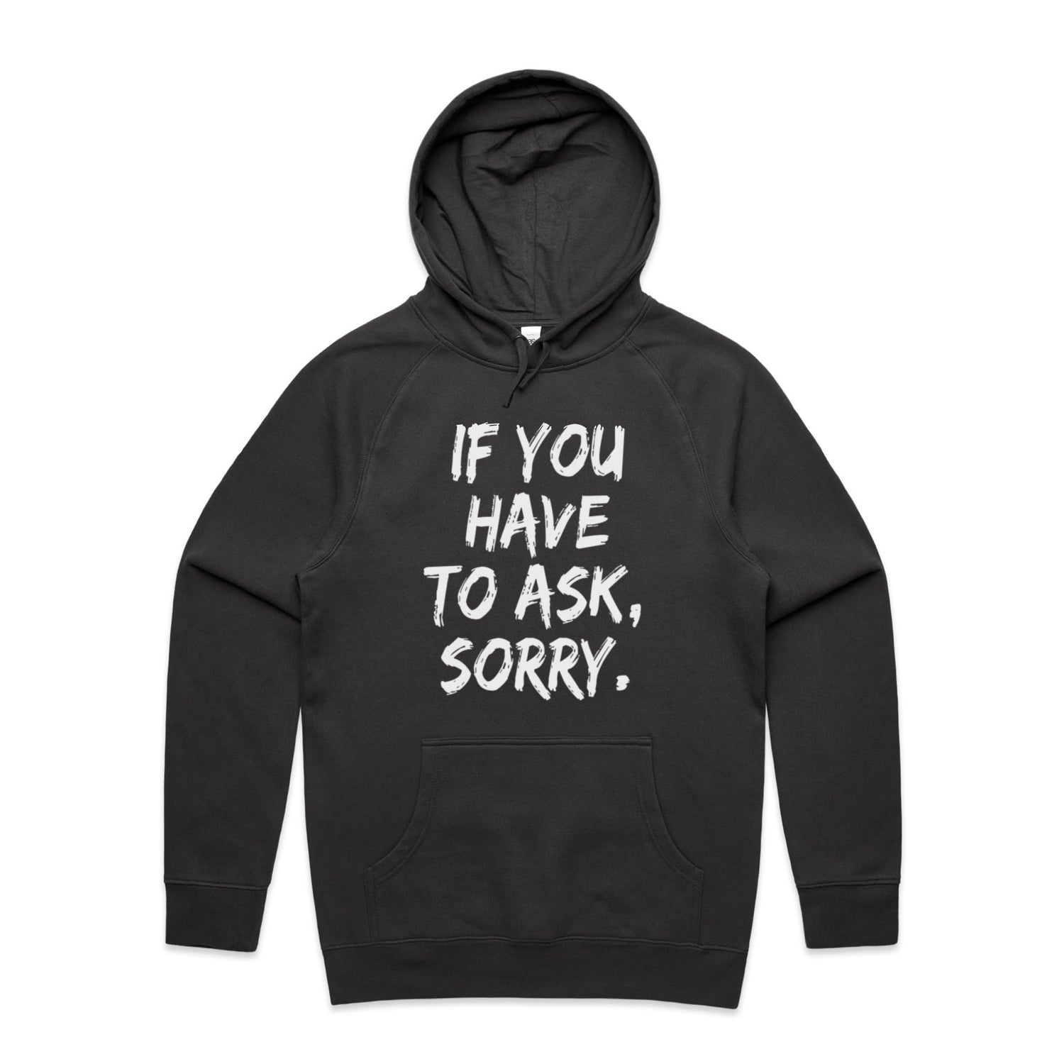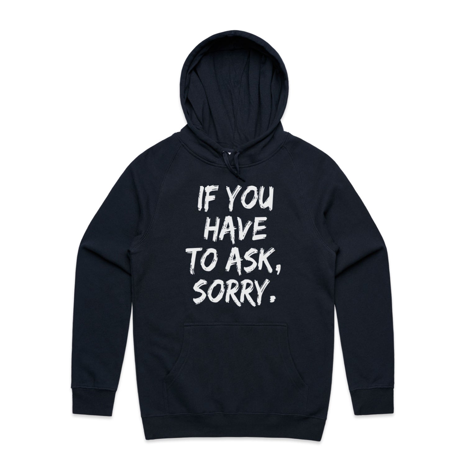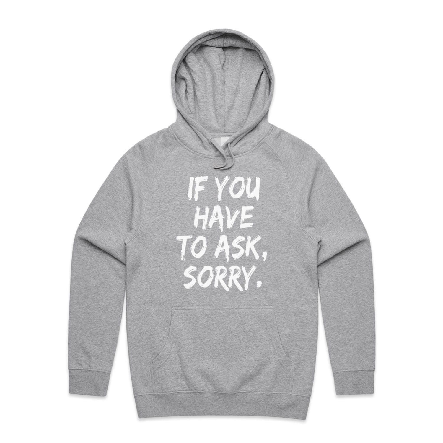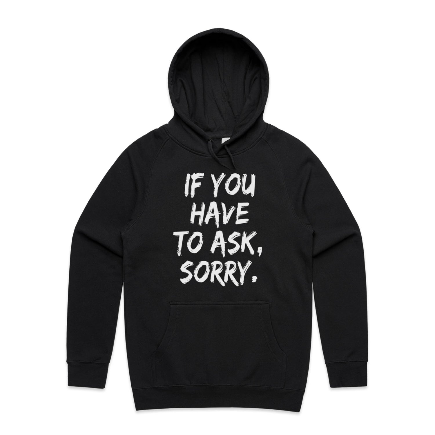 The Hoodies If You Have to Ask Sorry – Men's Hooded Sweatshirt is a high-quality men's hooded sweatshirt, printed with white ink on the trusted AS Colour Supply Hood 5101. With a regular fit and mid-weight feel, it's crafted from a premium blend of 80% cotton and 20% polyester anti-pill fleece, making it a durable and comfortable staple for any wardrobe. The pullover design features raglan sleeves, a lined hood with tonal drawcord, ribbed sleeve cuffs, and a roomy kangaroo pocket — all designed to keep you warm while looking effortlessly sharp.